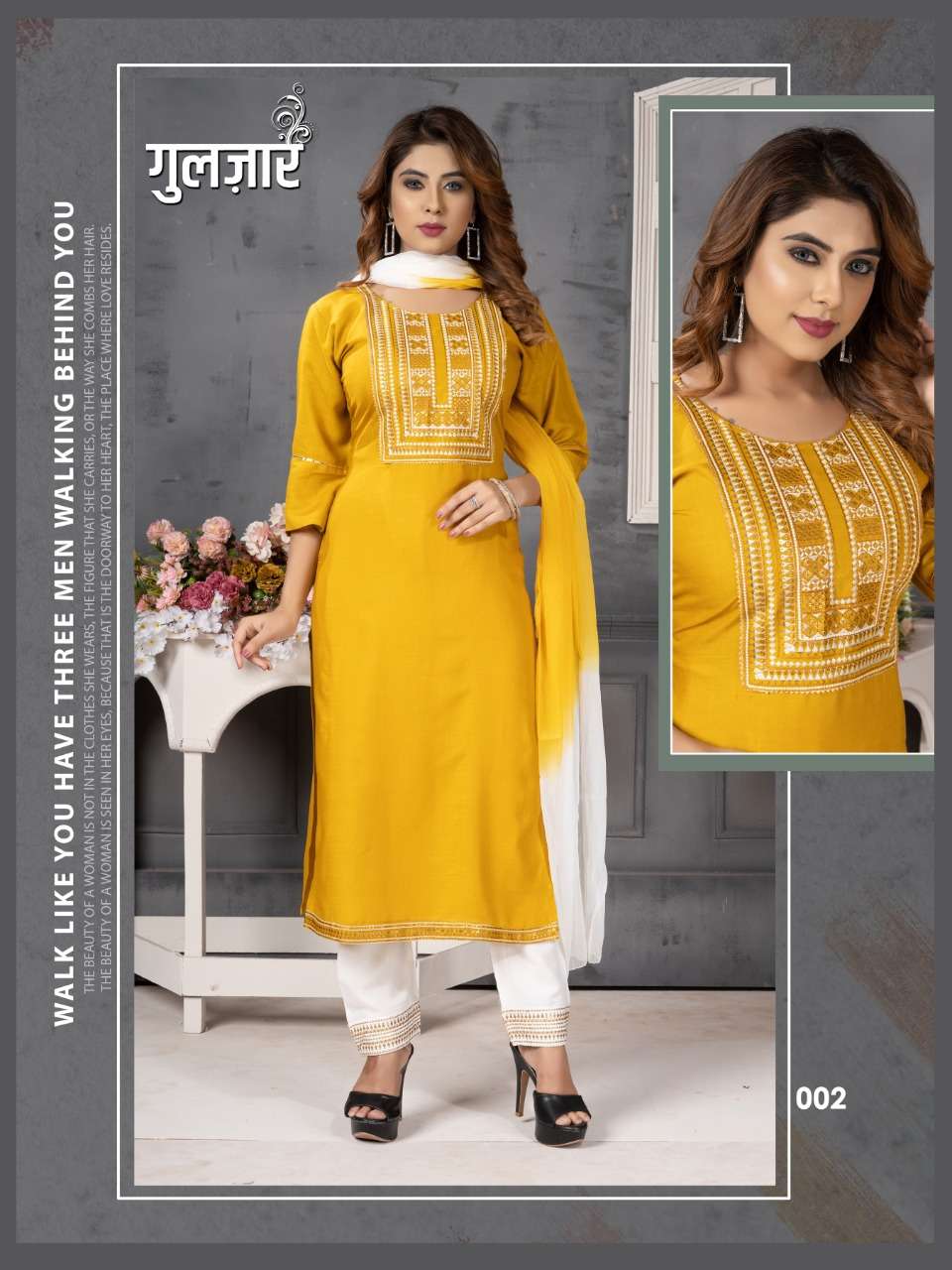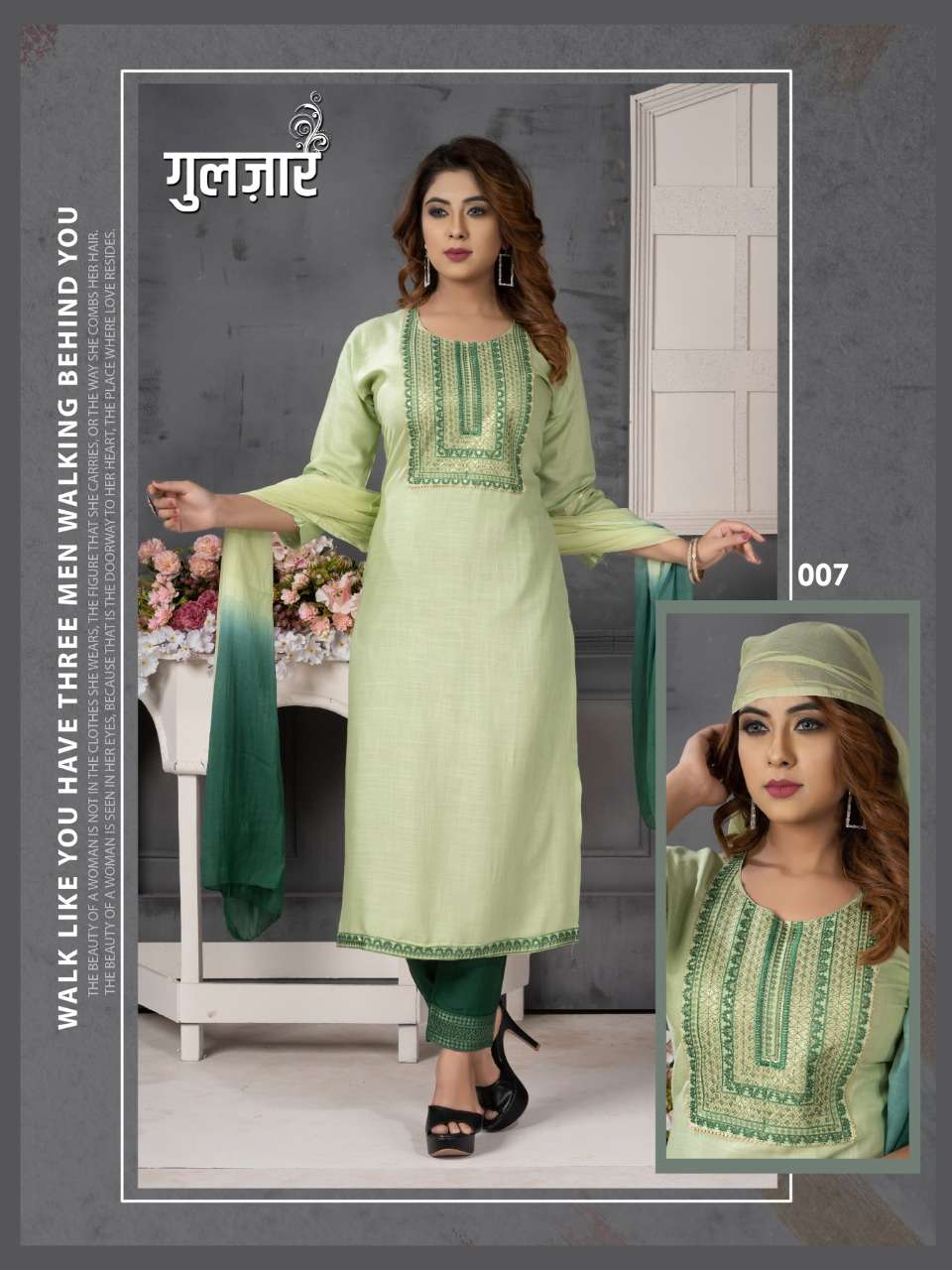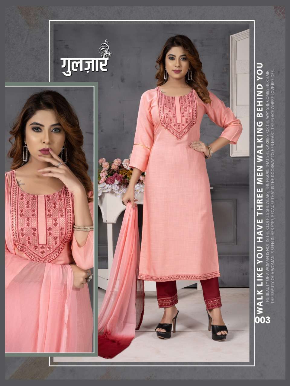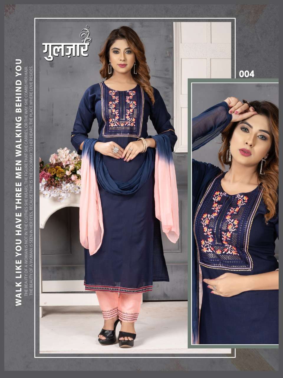 📒NAME: BEAUTY QUEEN GULZAR 👗 Fabric: Heavy Rayon Slub Concept: Heavy Sequence Work Kurti With Pant & Double Dying Dupatta Length : 44” ⚜️DESIGNS: 8 SIZES: L, XL, XXL Rate: 560/- |