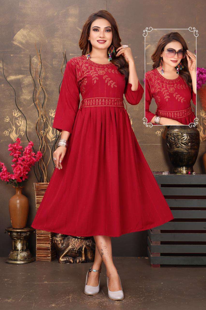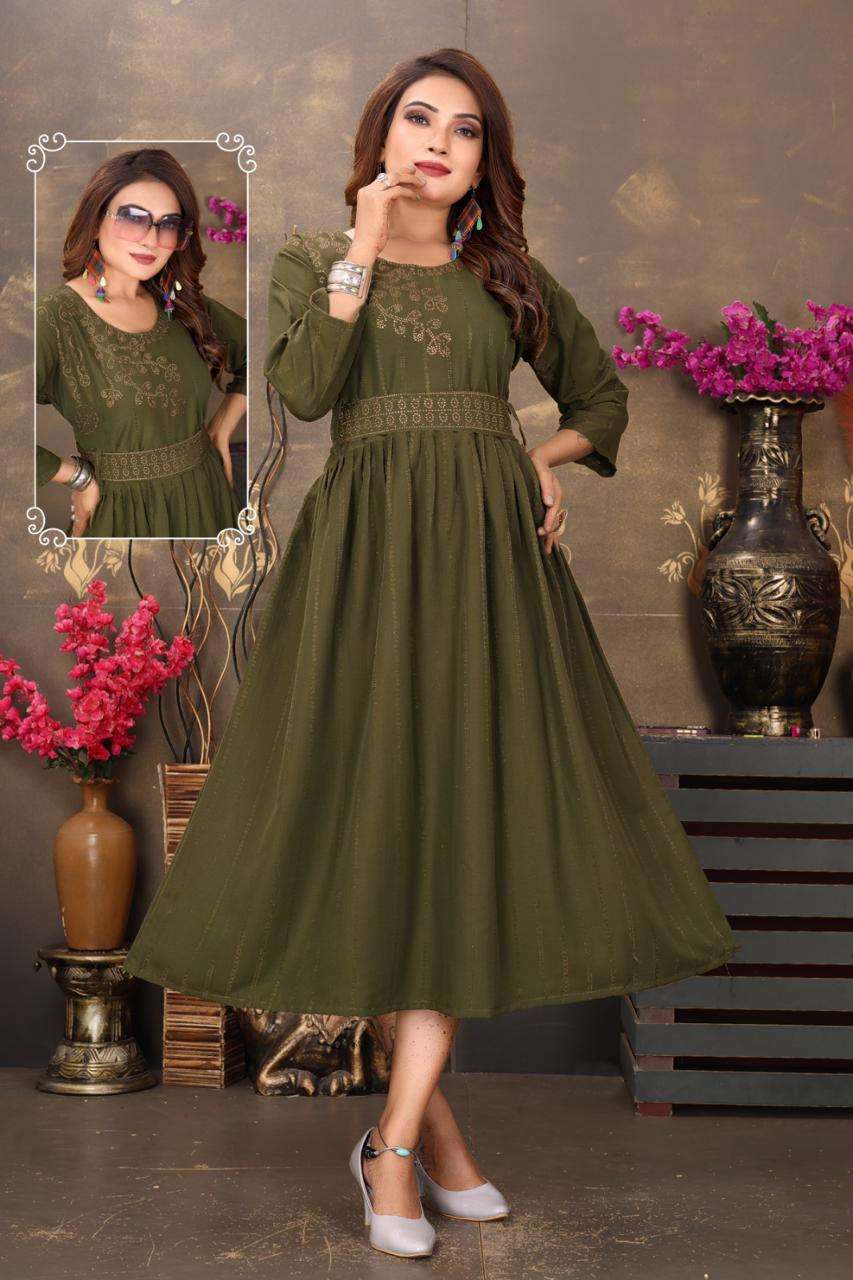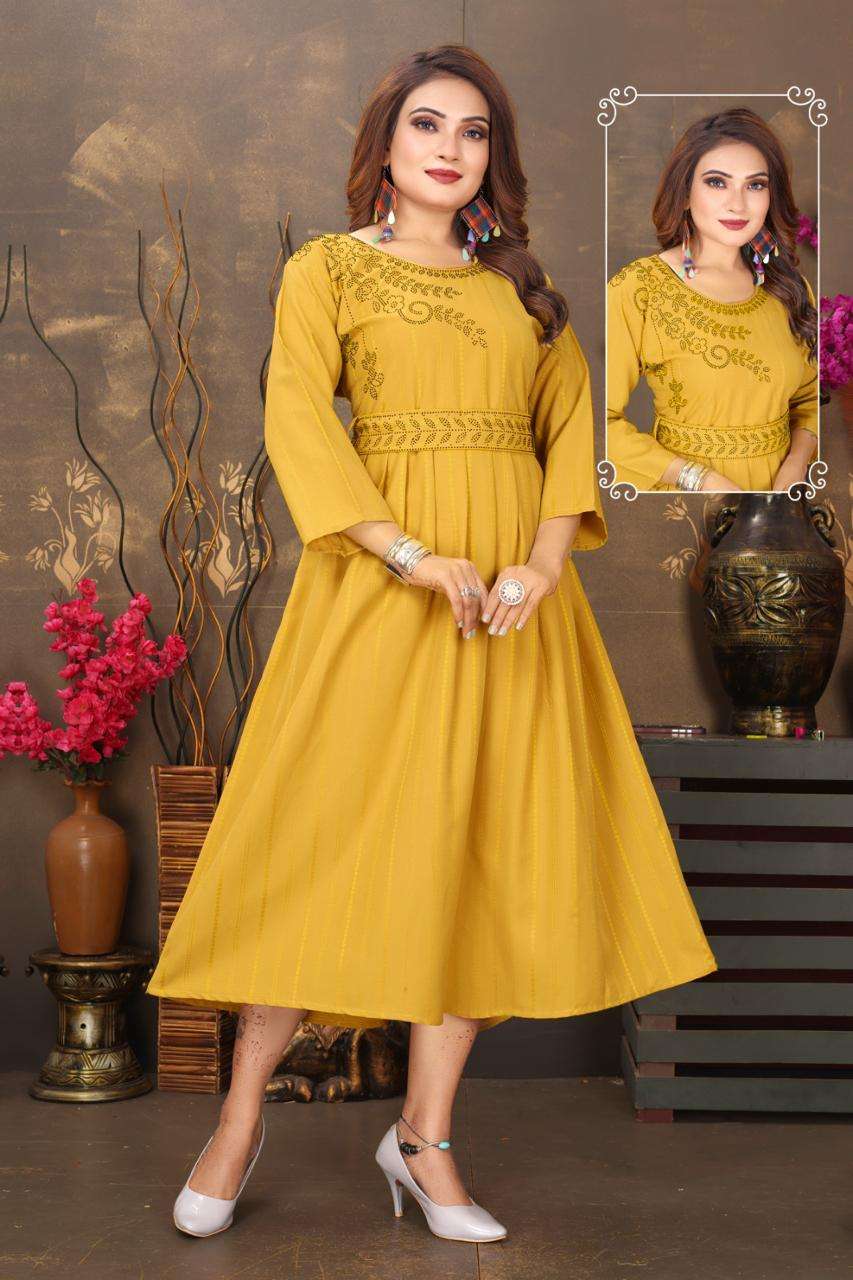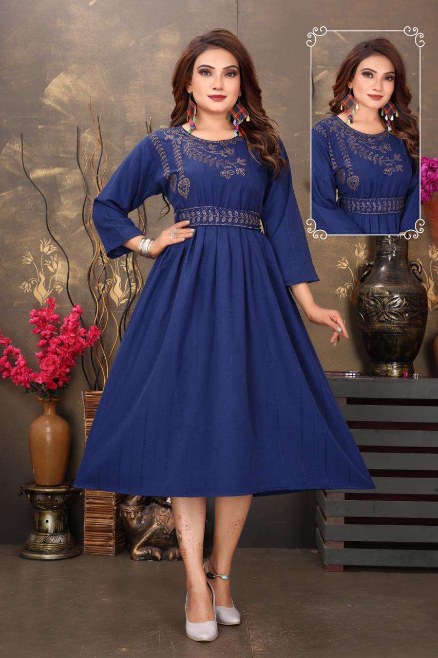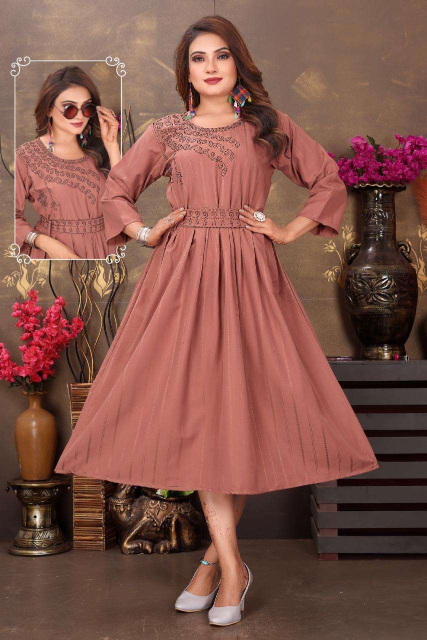 BEAUTY QUEEN presents its latest layer kurti catalog 📒NAME: KAANCHI VOL.1 👗 Fabric: Self-Woven Fancy Material Laining Plain Concept: Siroski Work Ghera Festive wear Kurtis with Belt ✨ DESIGNS: 8 ✨ SIZES: L, XL, XXL 👉 Rate: 450/- |