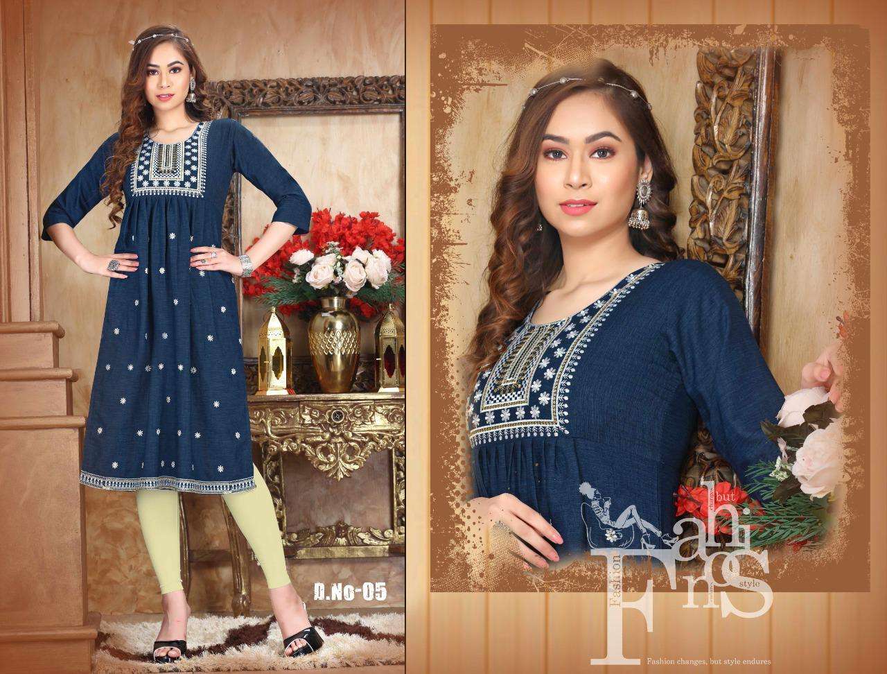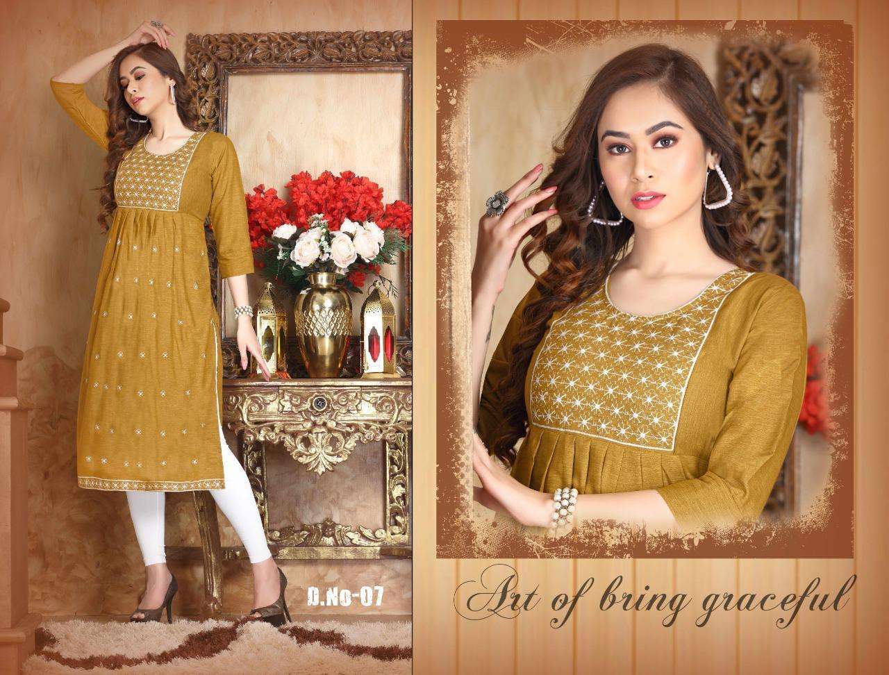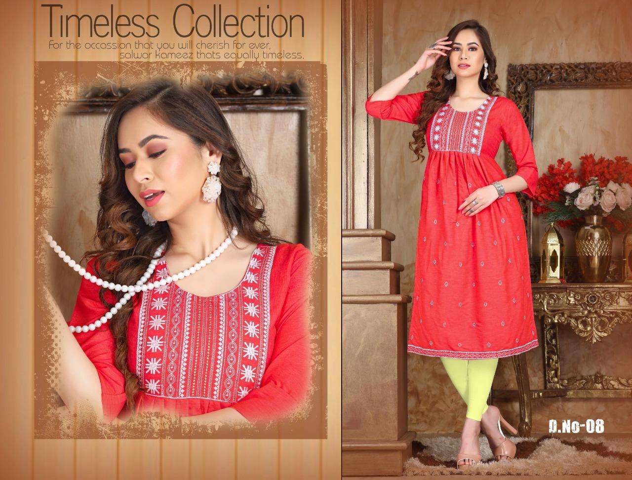 Name:- BEAUTY QUEEN KATI PATANG 🪁 Design:- 08 Fabric:- Heavy Liquid Size:- L. XL. 2XL. Length :- 46 inch Pattern :- Embroidered Style:- A- Line Naira Cut Rate :- 367/- |