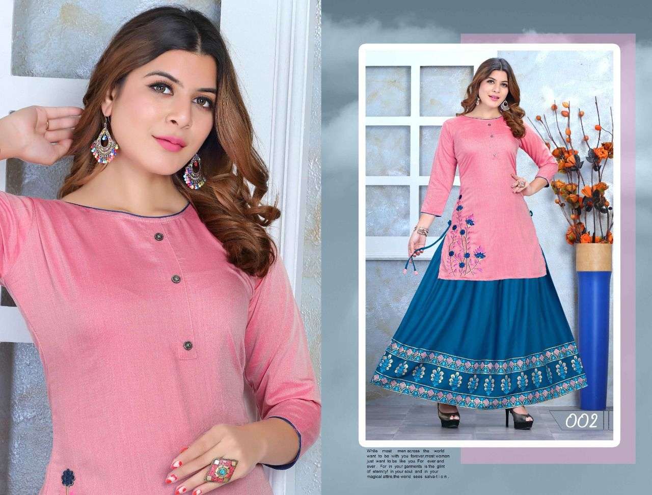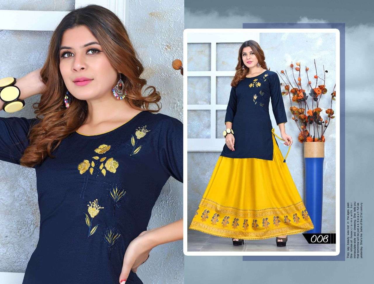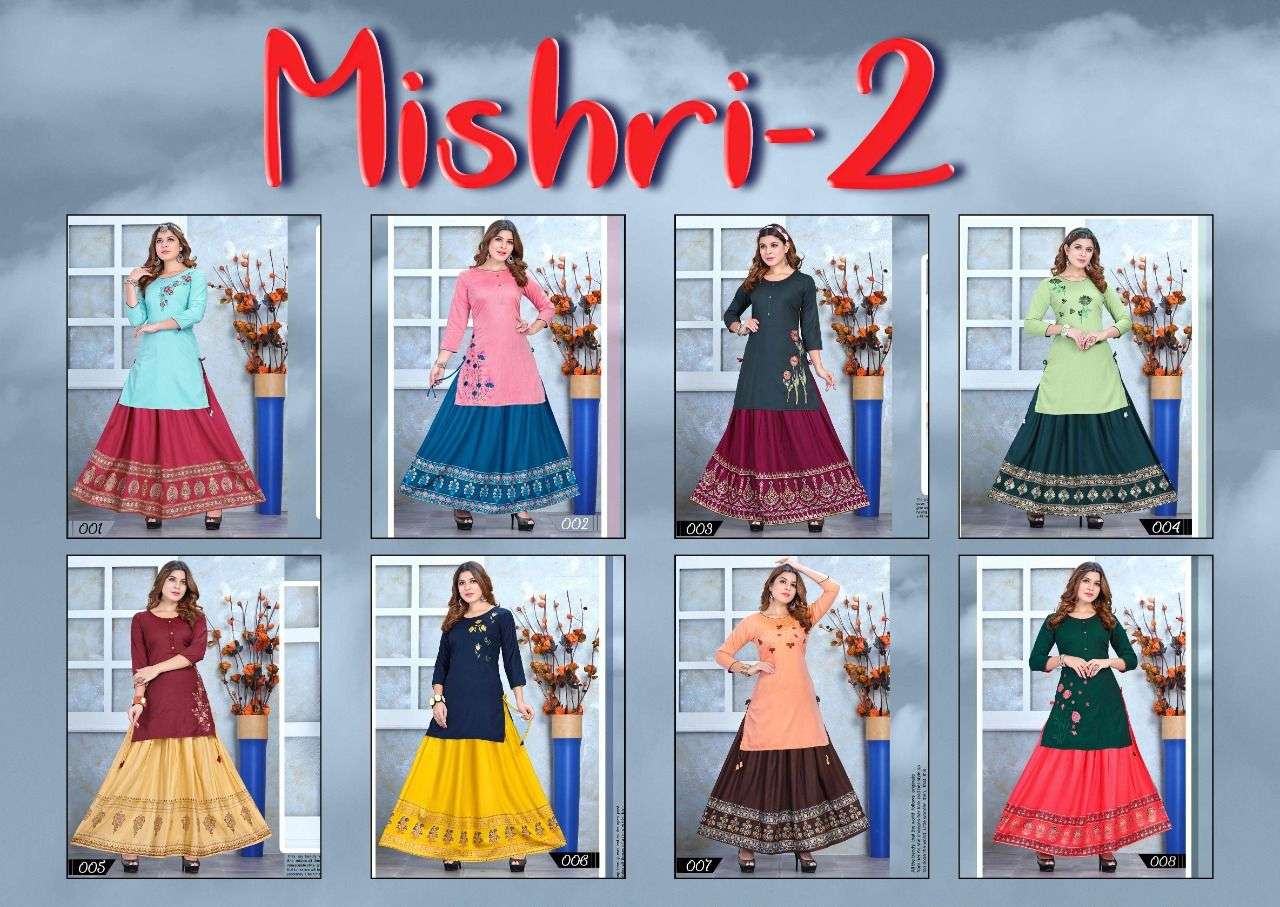 BEAUTY QUEEN MISHRI-2 TOP - 17 kg Dobby Rayon AND BOTTOM - 17 kg Rayon KURTI WITH SKIRT CATALOG WHOLESALER BEST RATE
