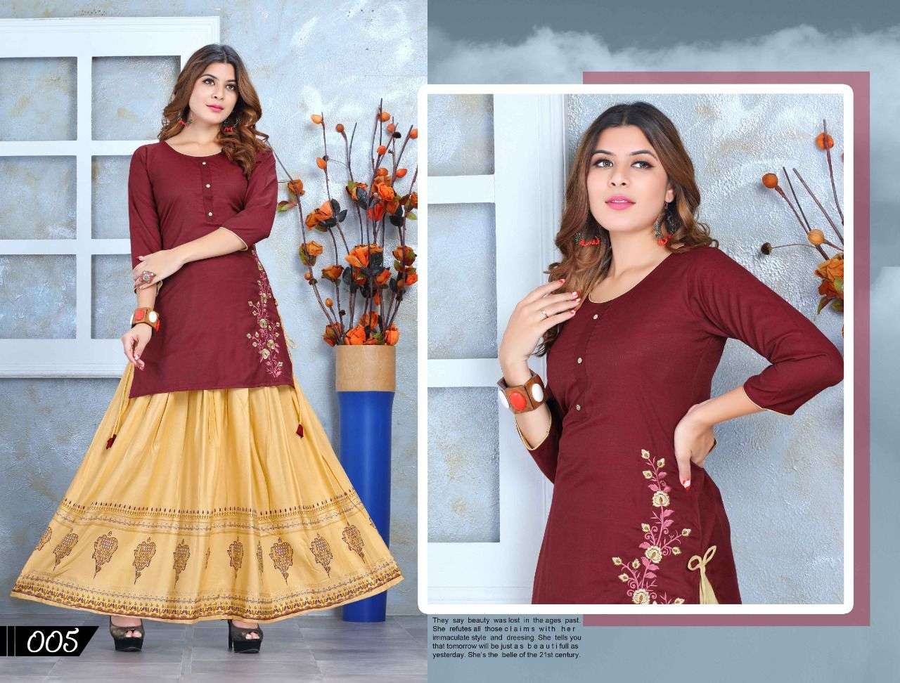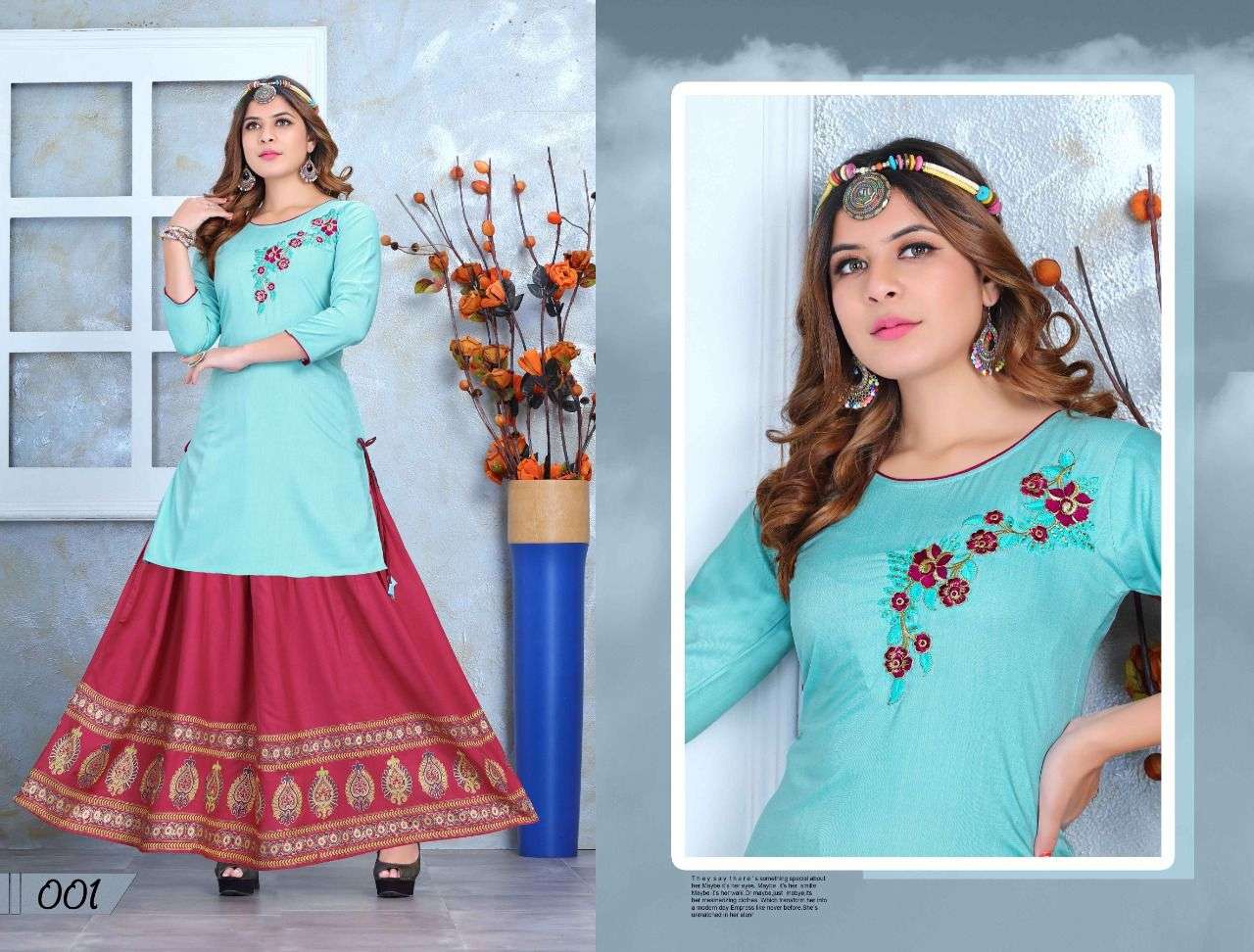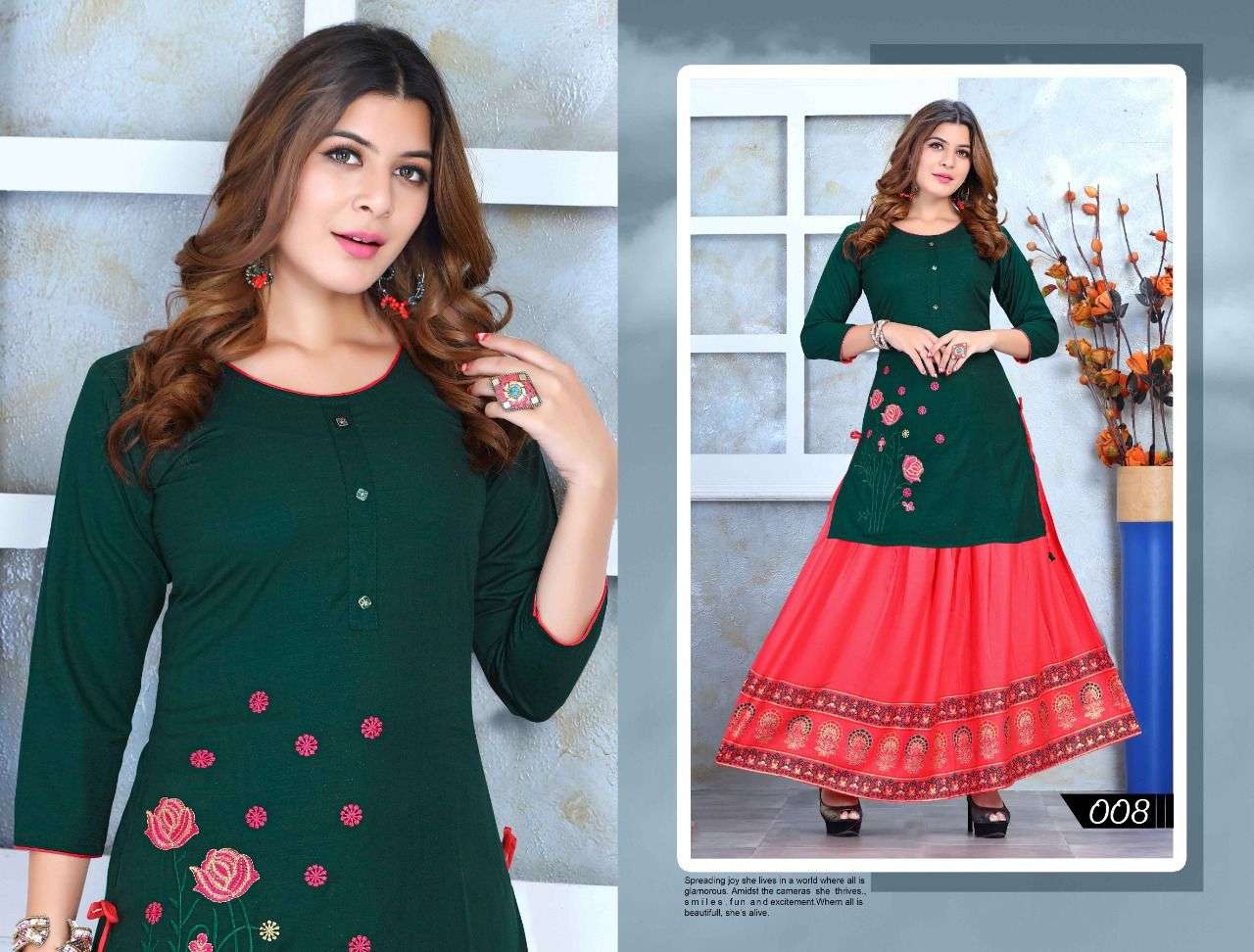 BEAUTY QUEEN MISHRI-2 TOP - 17 kg Dobby Rayon AND BOTTOM - 17 kg Rayon KURTI WITH SKIRT CATALOG WHOLESALER BEST RATE