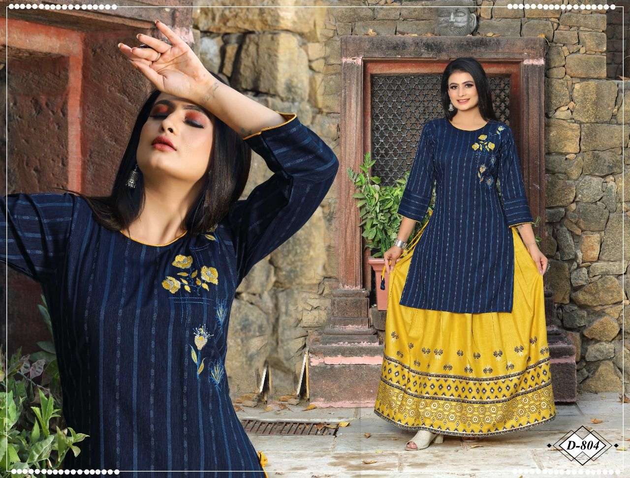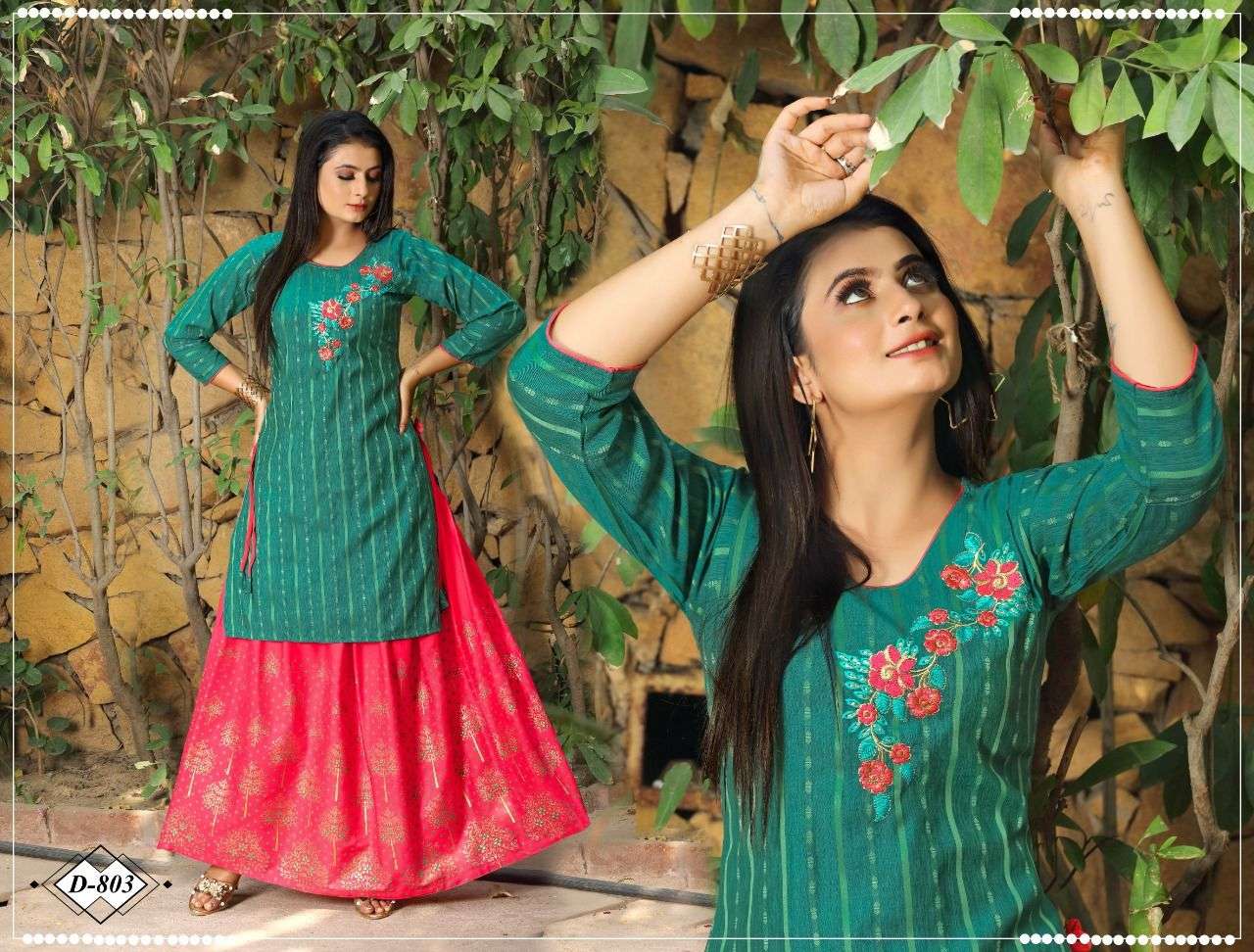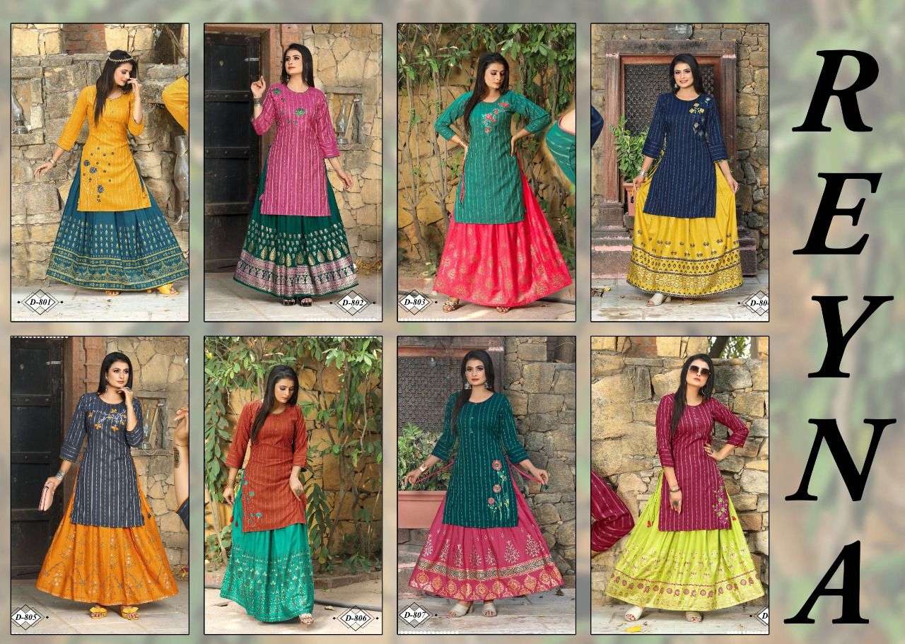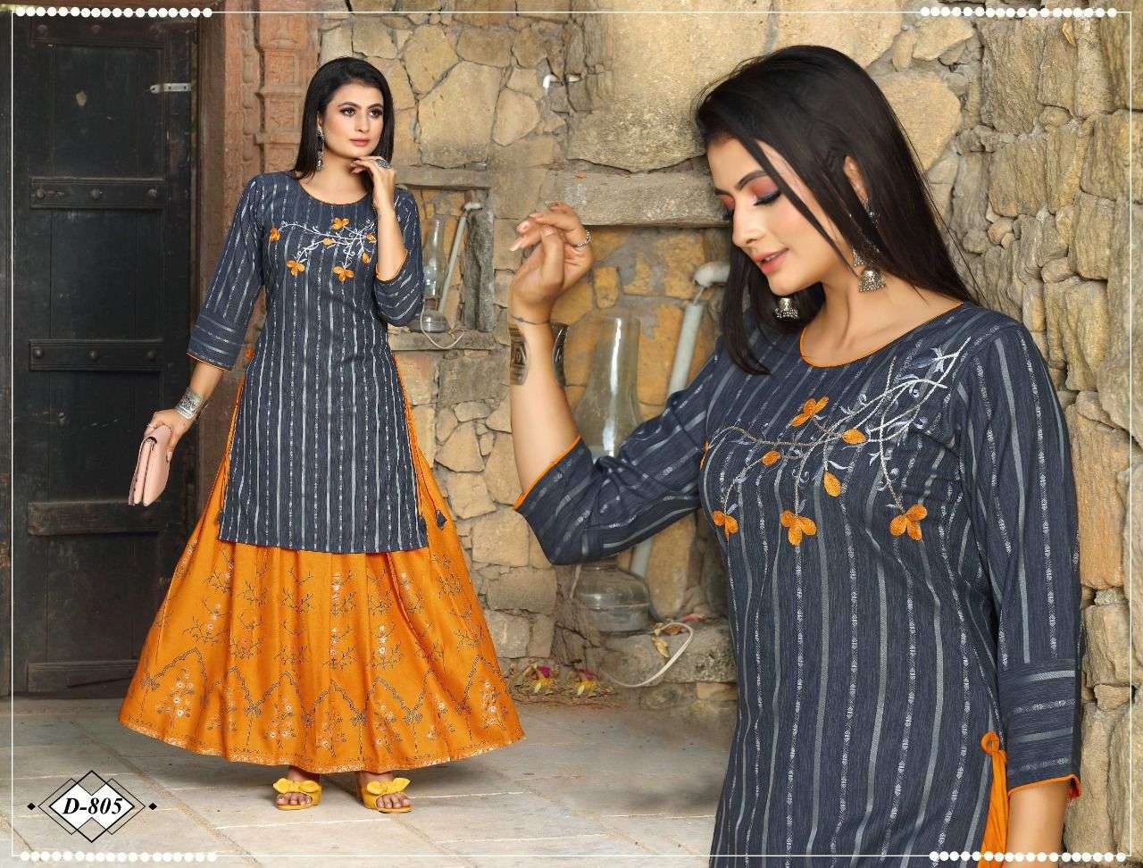 Catalog Name: Beauty queen Reyna Type: Kurtis Skirt Set Fabric Detail: Skirt :- Skirt Rayon 17Kg Pattarn - Top Embroidered , Skirt Foil Print , Size : M. L. Xl. 2Xl. 3Xl Price: 560/- Rs. + GST No of pcs: 8 |