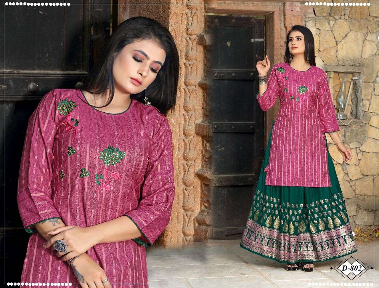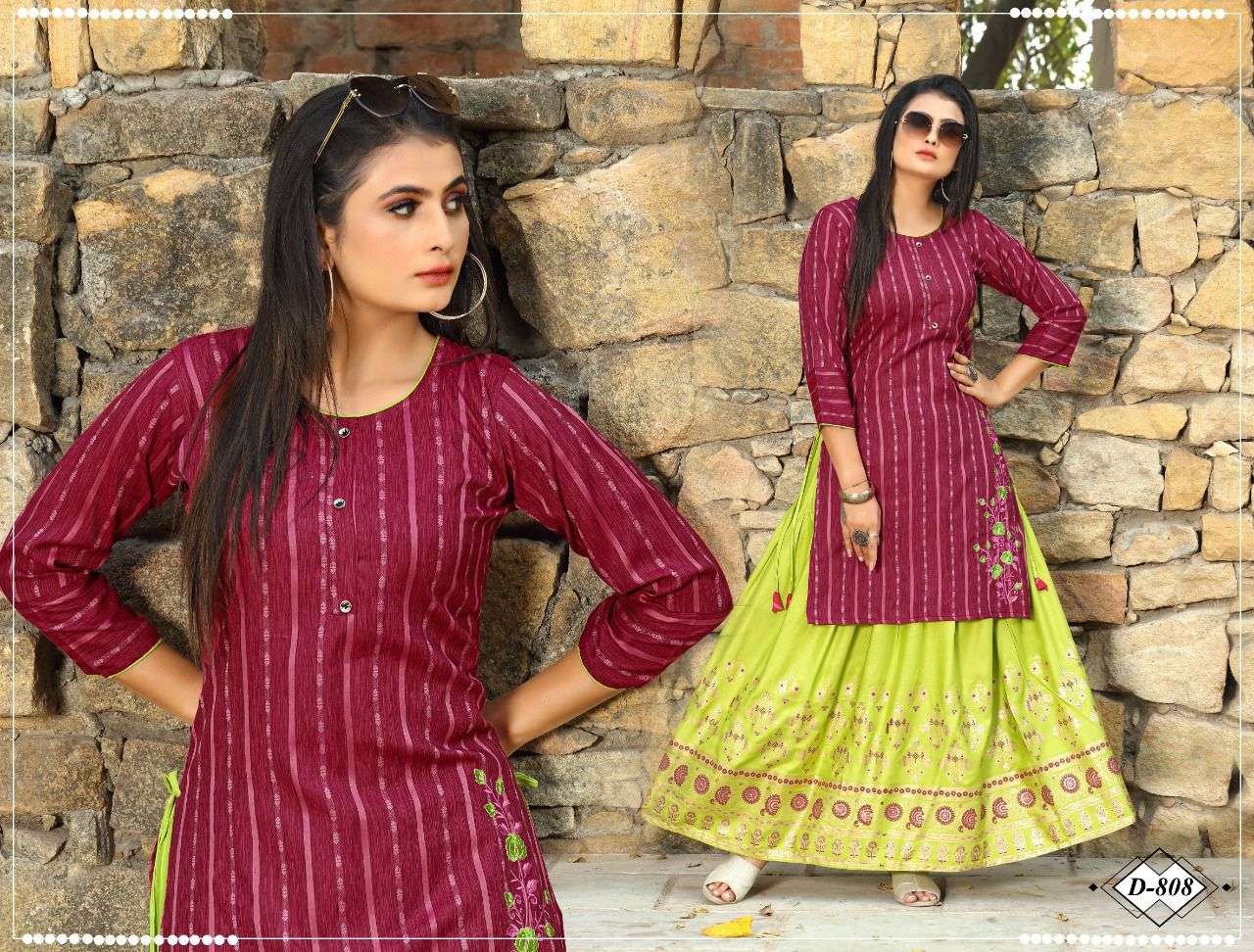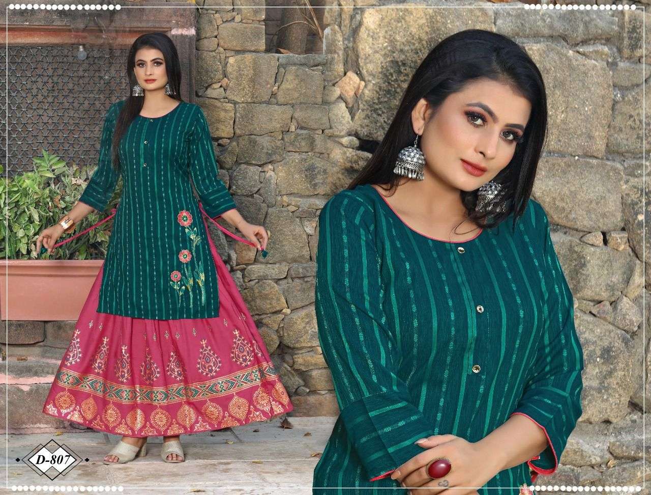 Catalog Name: Beauty queen Reyna Type: Kurtis Skirt Set Fabric Detail: Skirt :- Skirt Rayon 17Kg Pattarn - Top Embroidered , Skirt Foil Print , Size : M. L. Xl. 2Xl. 3Xl Price: 560/- Rs. + GST No of pcs: 8 |
