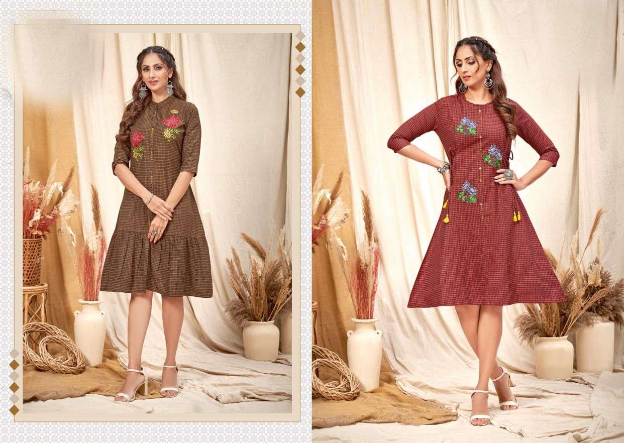 BEAUTY QUEEN SAIRA Heavy rayon chax fabrics with embrodary work & ghera concept style kurti catlog WHOLESALER BEST RATE