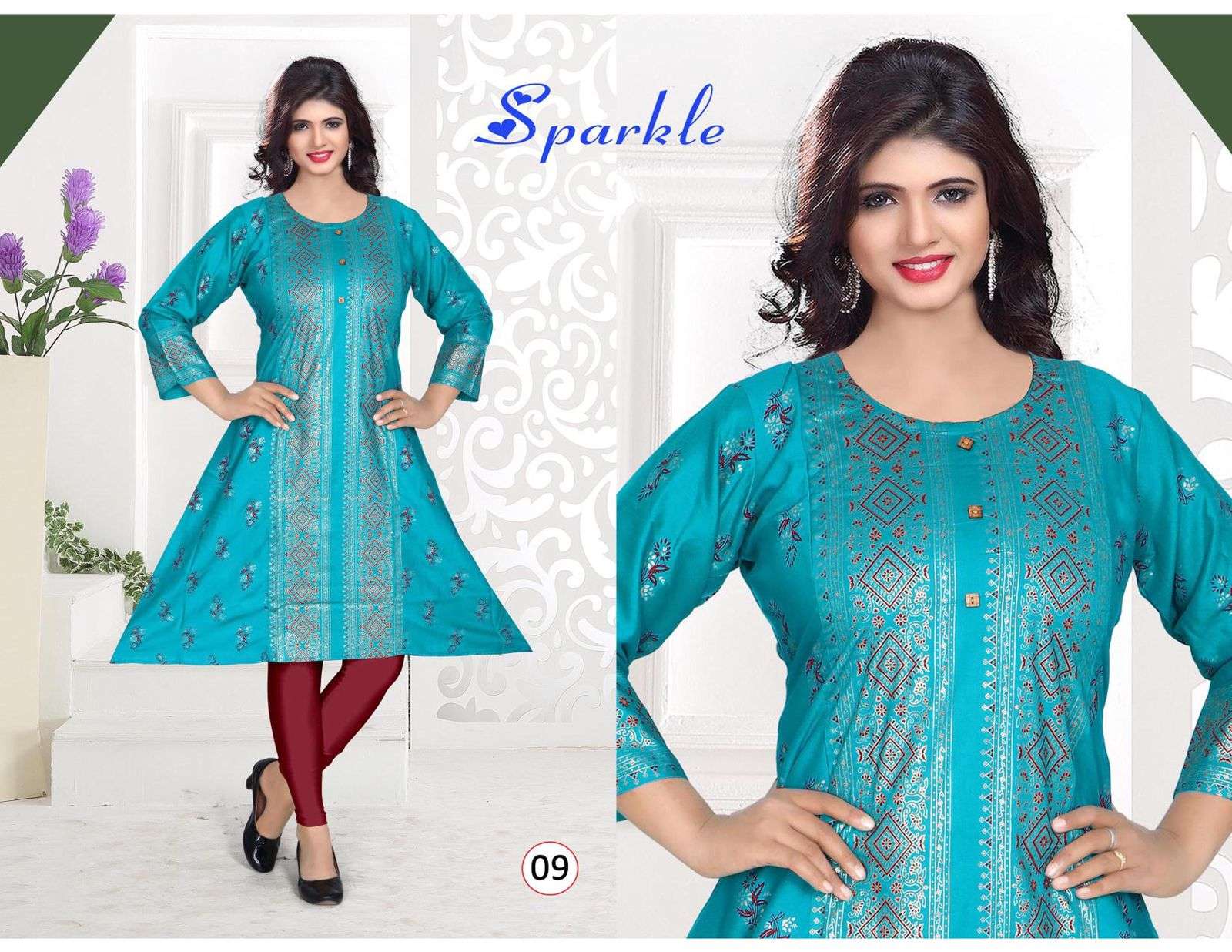 BEAUTY QUEEN SPARKLE HEAVY RAYON KURTI CATALOG WHOLESALER BEST RATE