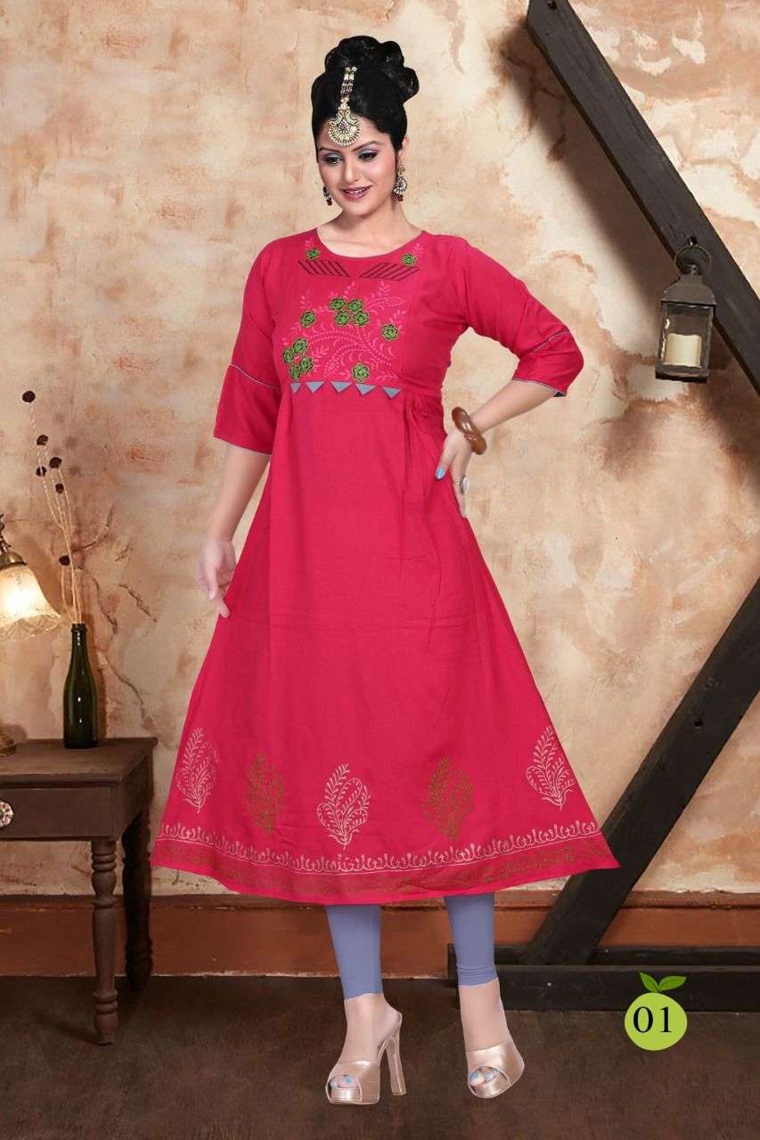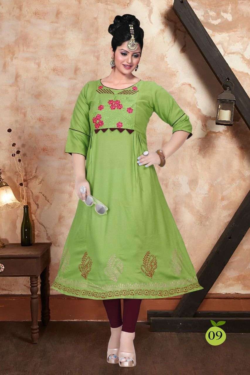 BEAUTY UP2 DATE RAYON PRINT EMBROIDERED KURTI CATALOG WHOLESALER BEST RATE