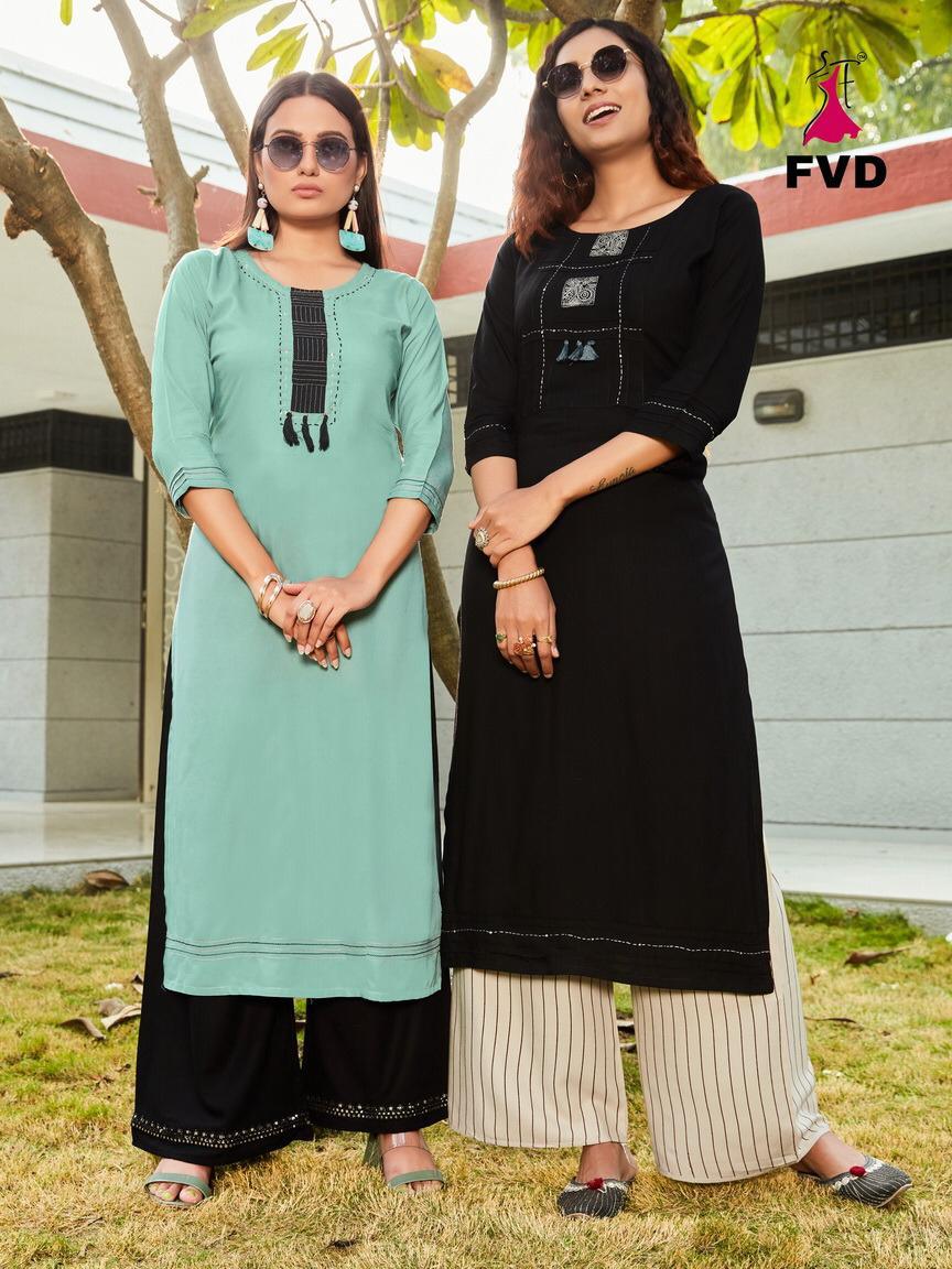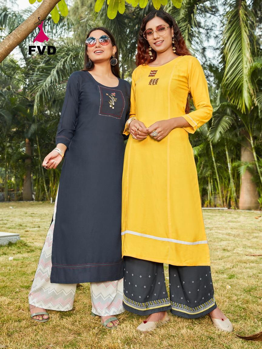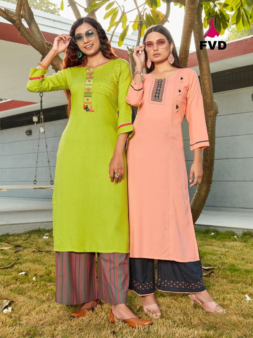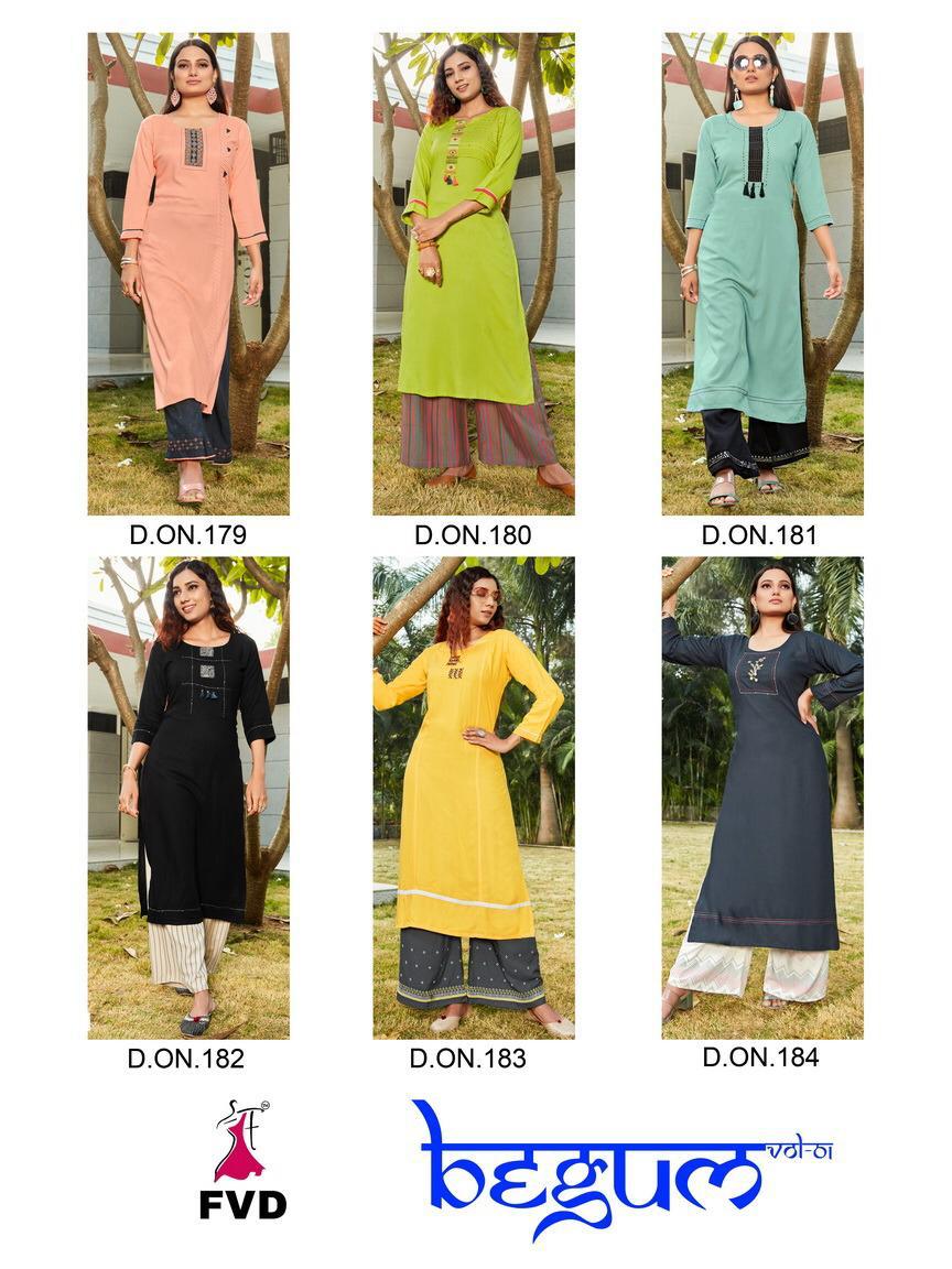 Begum Vol 1 By Fvd Rayon With Embroidery Work Kurti With Plazzo Set