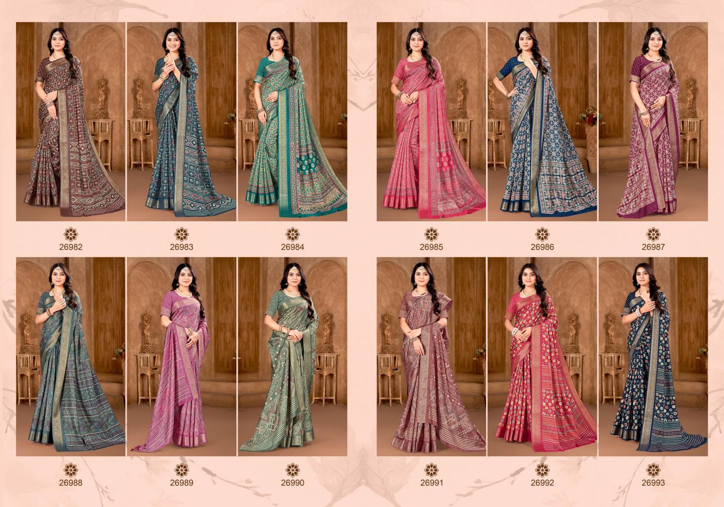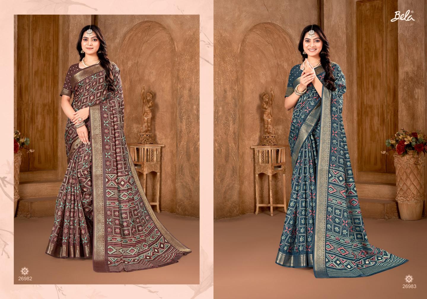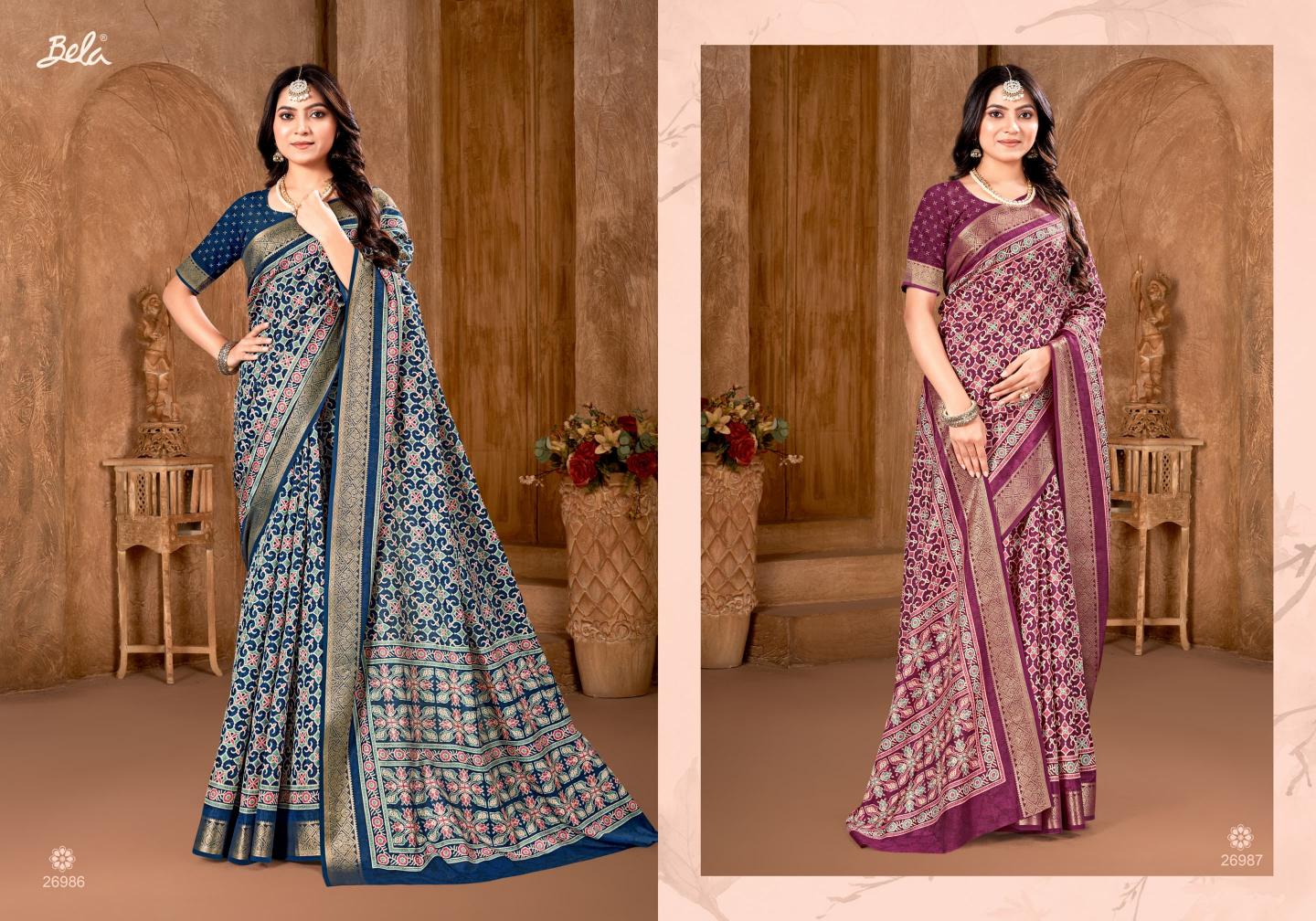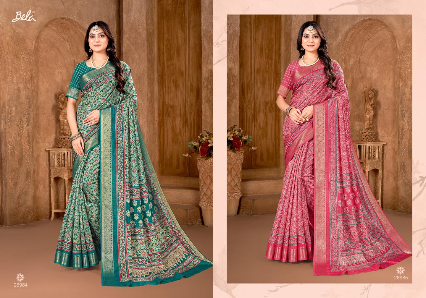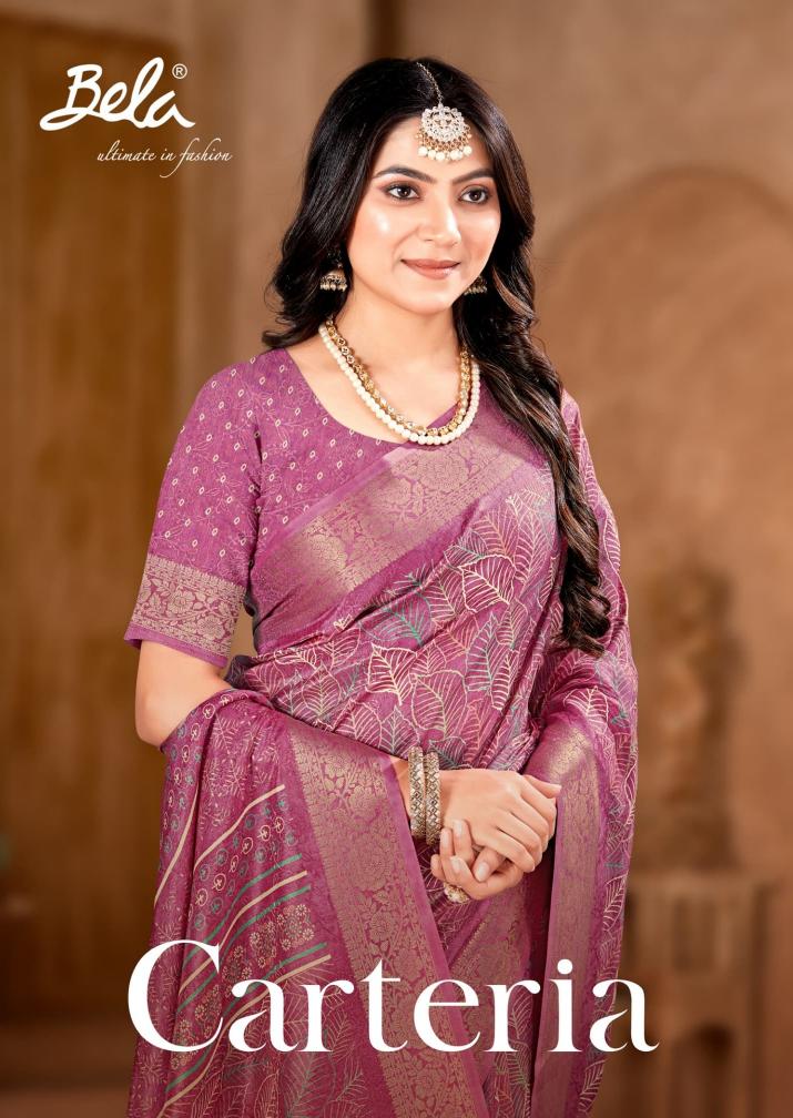 BELA SAREES NEW LAUNCHING CATALOG NAME - CARTERIA FABRIC NAME - COTTON SILK FABRICS WITH SELF JACQUARD AND WEAVING BORDER PRINTED SAREE RATE :- 699/- PCS :- 12 SET TO SET ONLY |