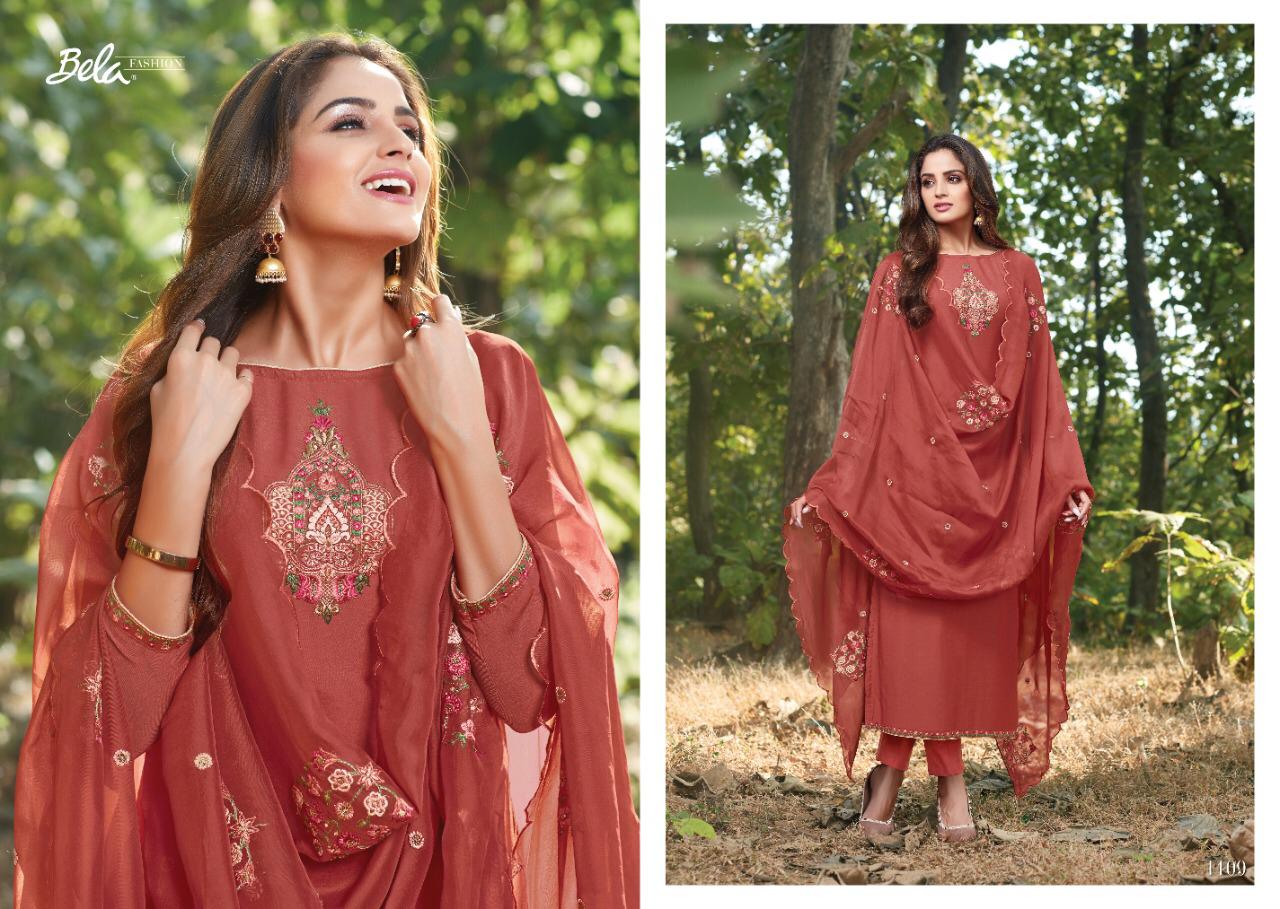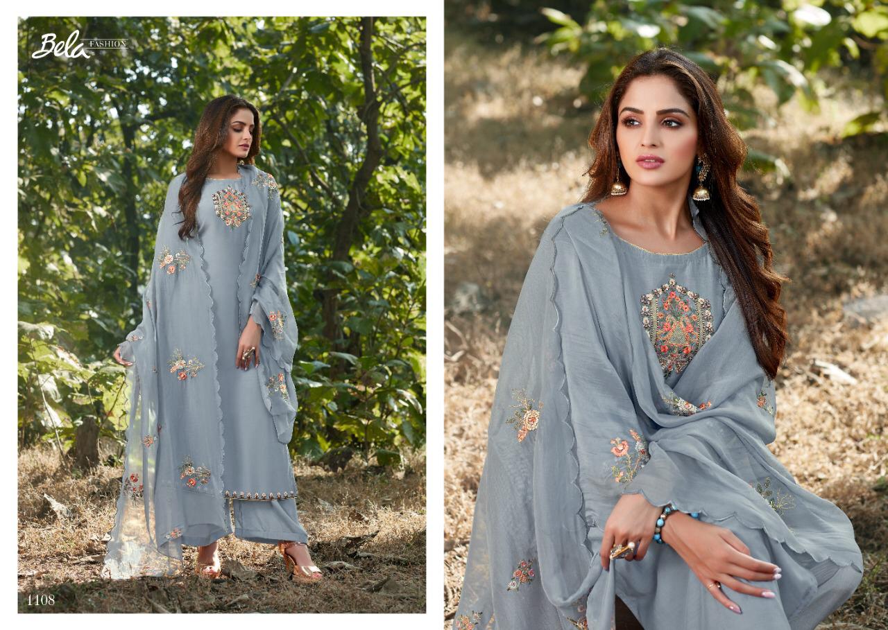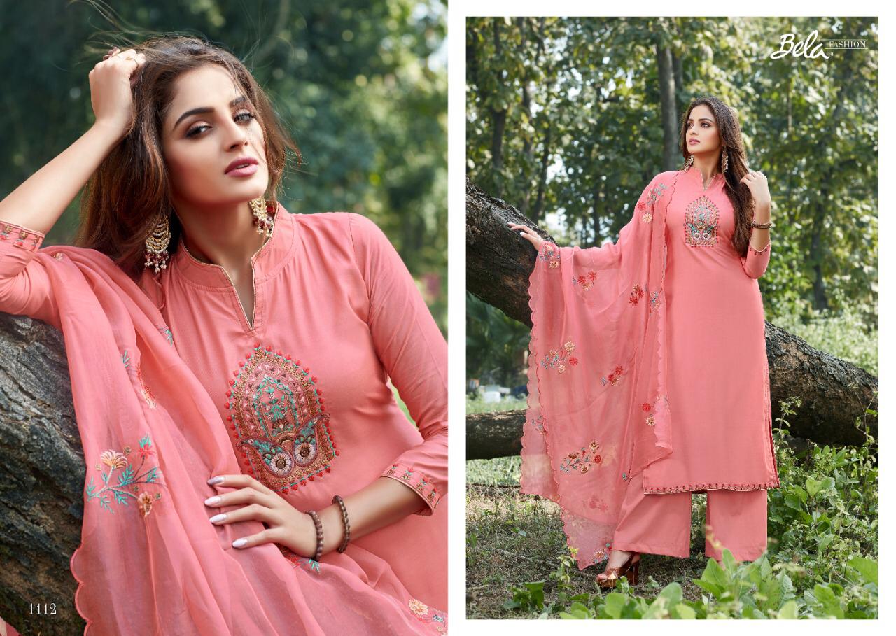 Brand - BELA . Type - suit . Catlog name - MANZIL . Series - 1107 to 1113. GST 5 Percent Extra Delivery 2 days |