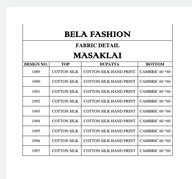 Bela fashion MASAKALI @ 1395/- Fabric detail in photo |