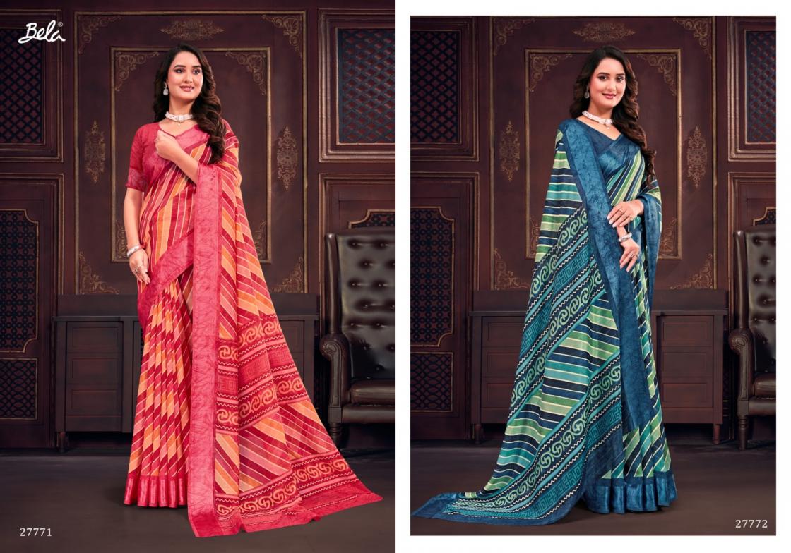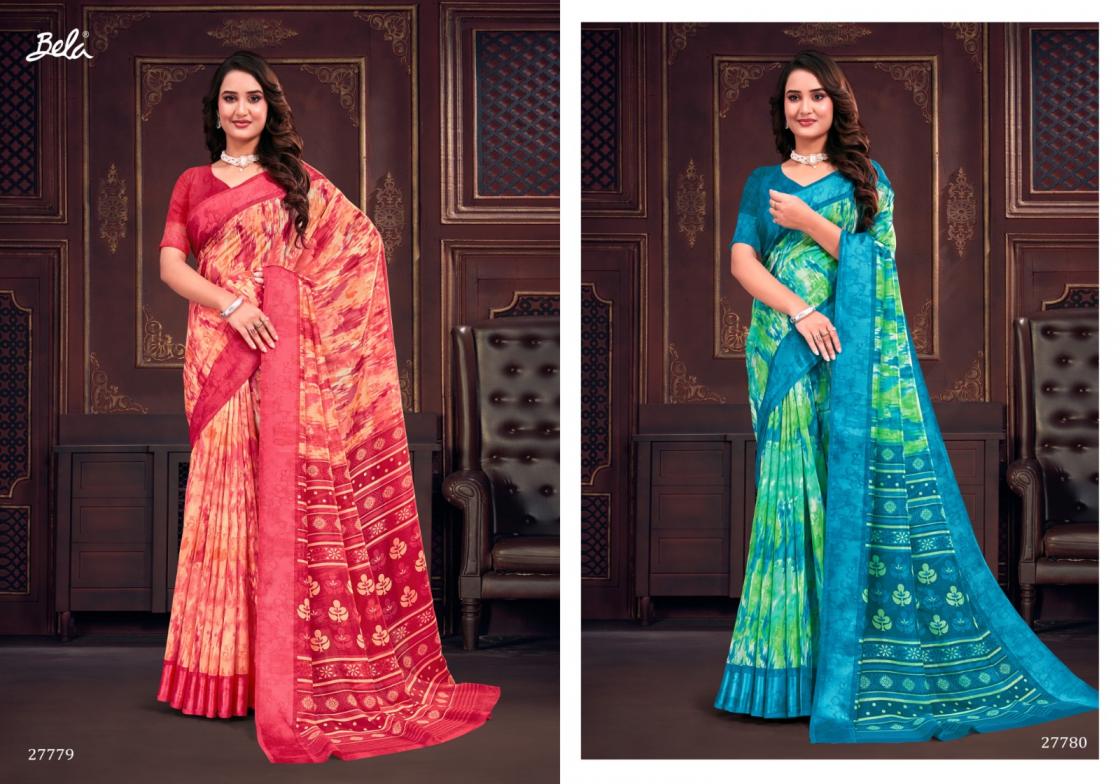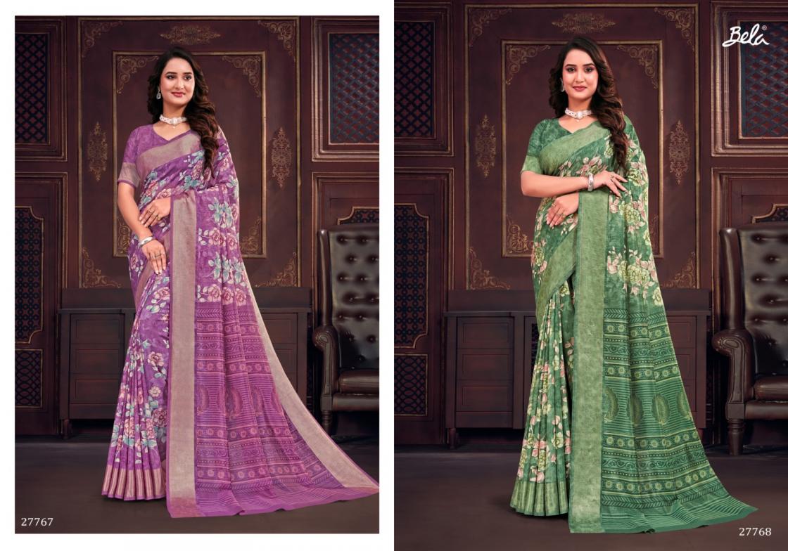 BELA SAREES NEW LAUNCHING CATALOG NAME- SREYA FABRIC NAME - BRIGHT SILK BORDER PRINTED SAREES RATE 665/- |