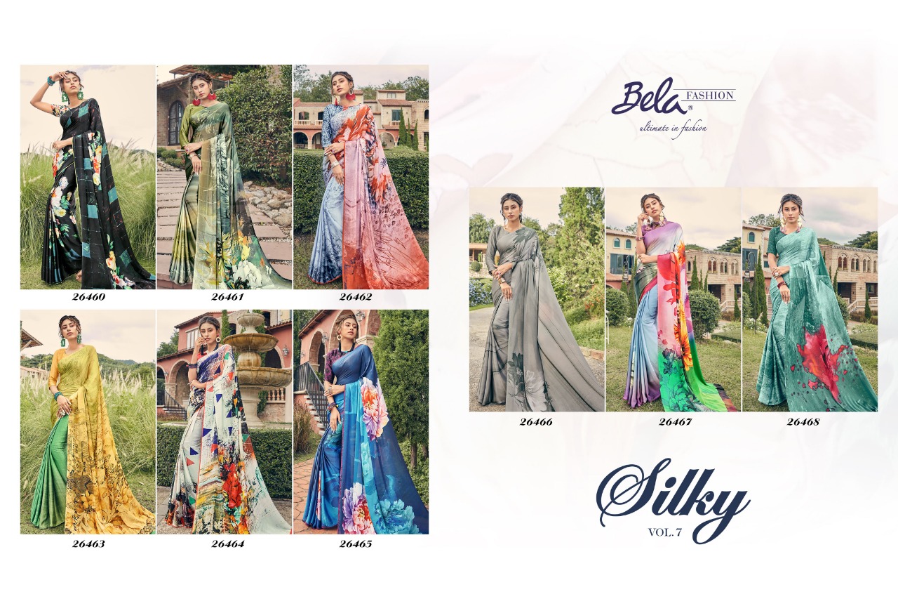 Bela Launching Silky Vol 7 Satin Georgette Ethnic Wear Printed Saree Seller