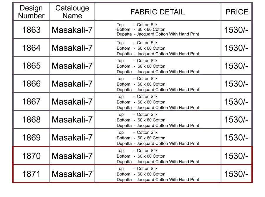 Brand - Bela . Catlog name - Masakali -7. Series - 1863 to 1871. GST 5 Percent Extra. Delivery 2 days |
