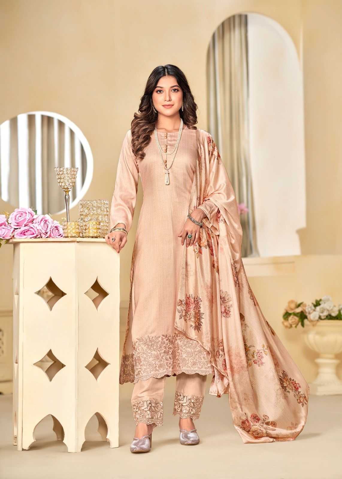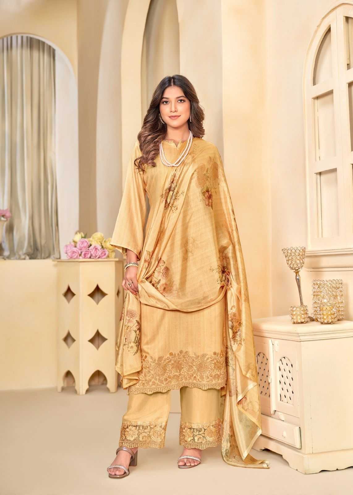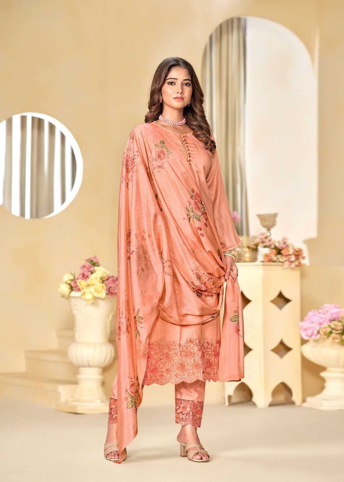 bela nyra silk print designer salwar kameez material