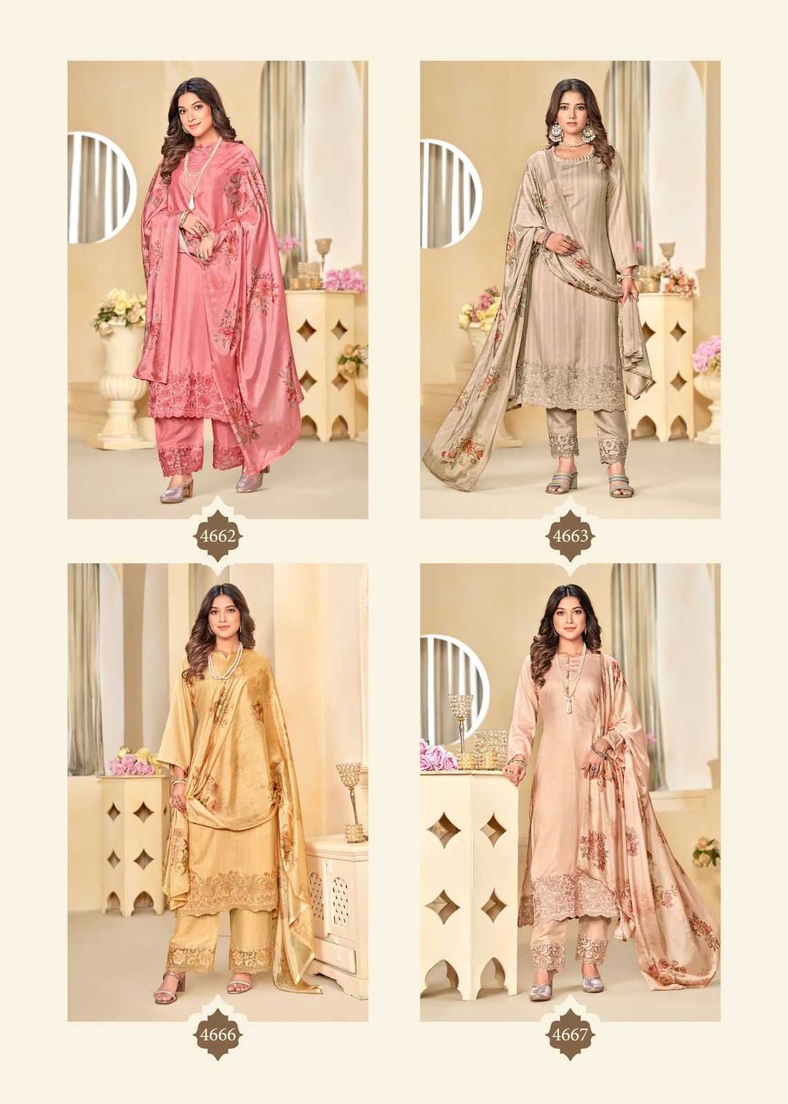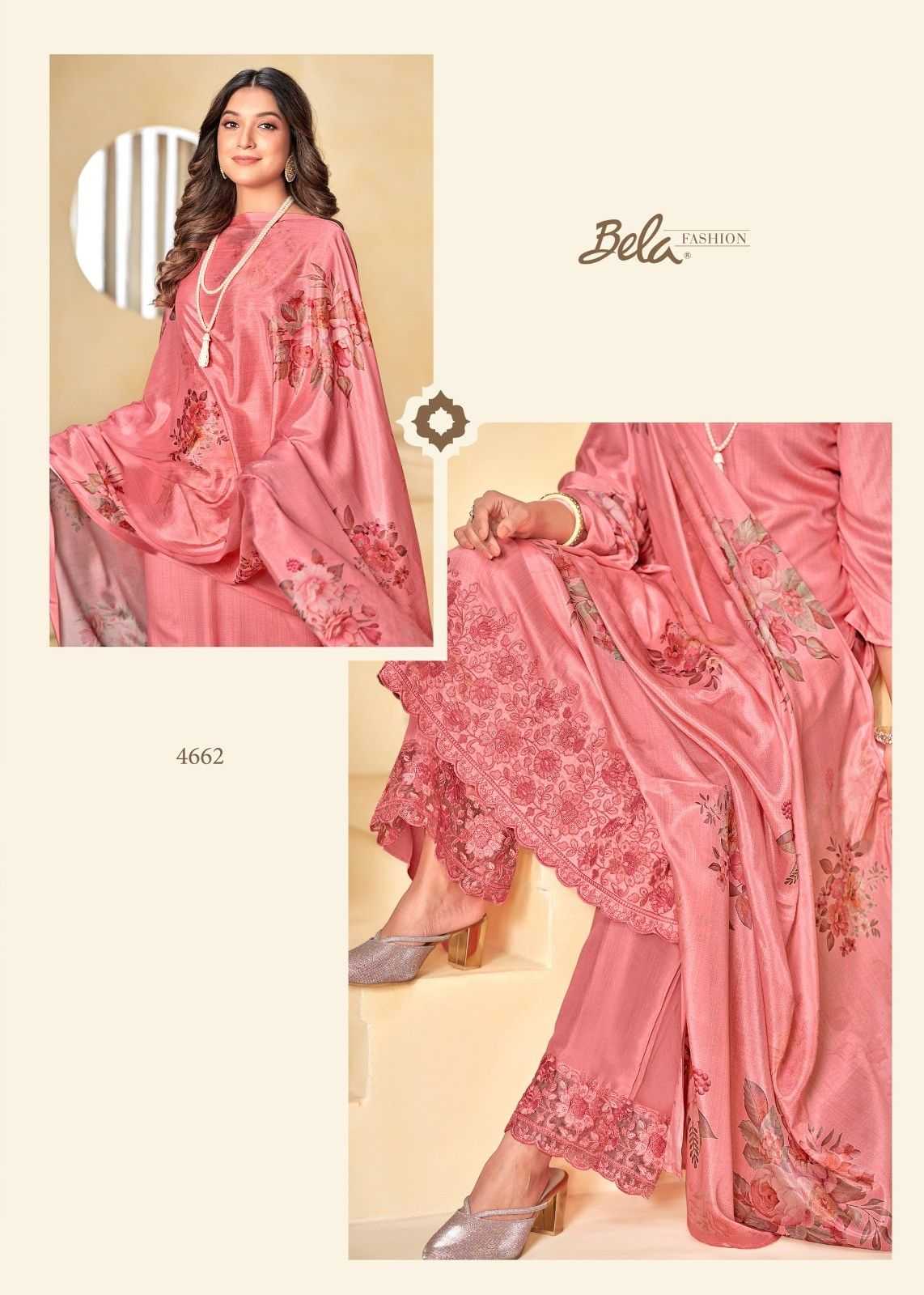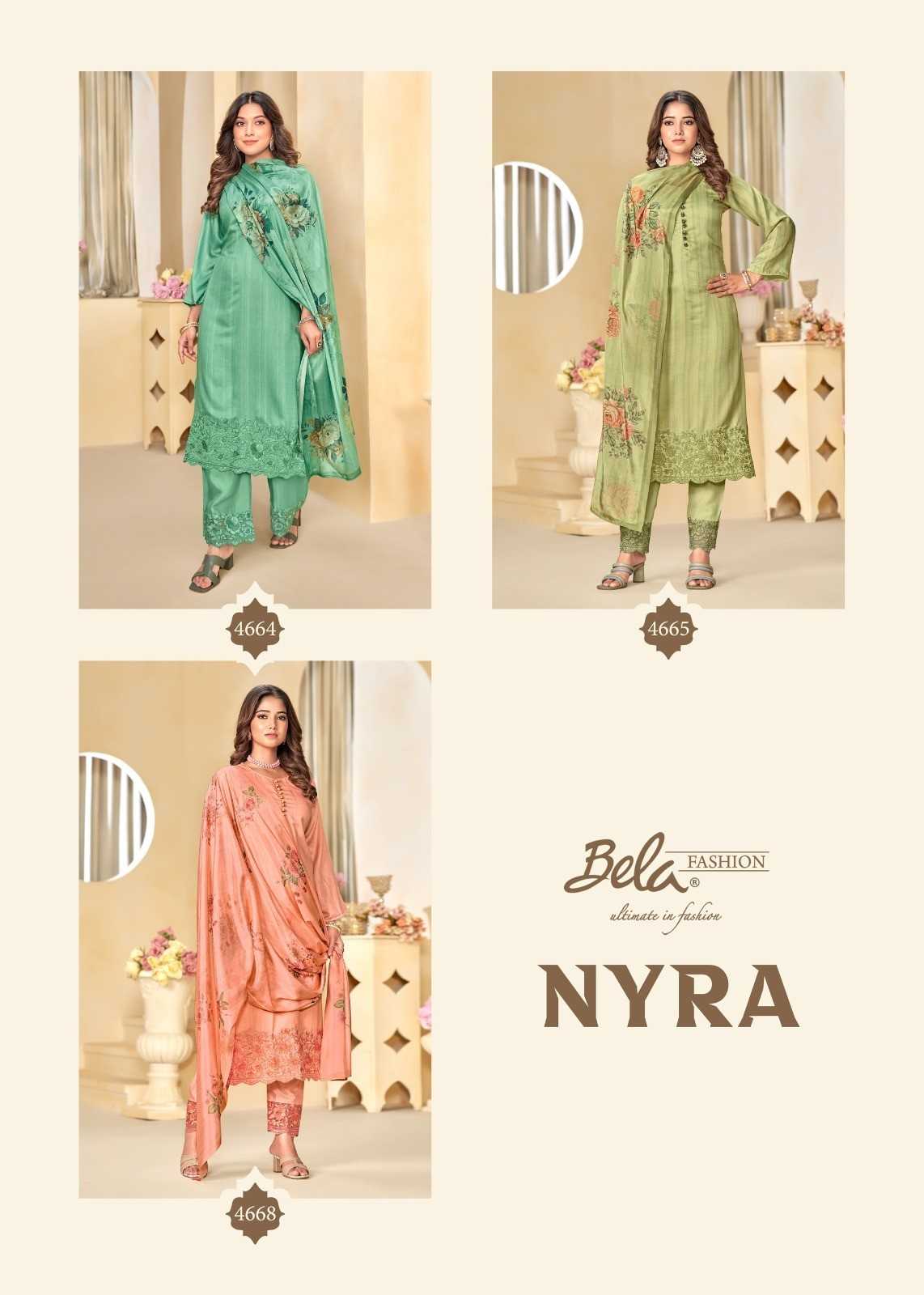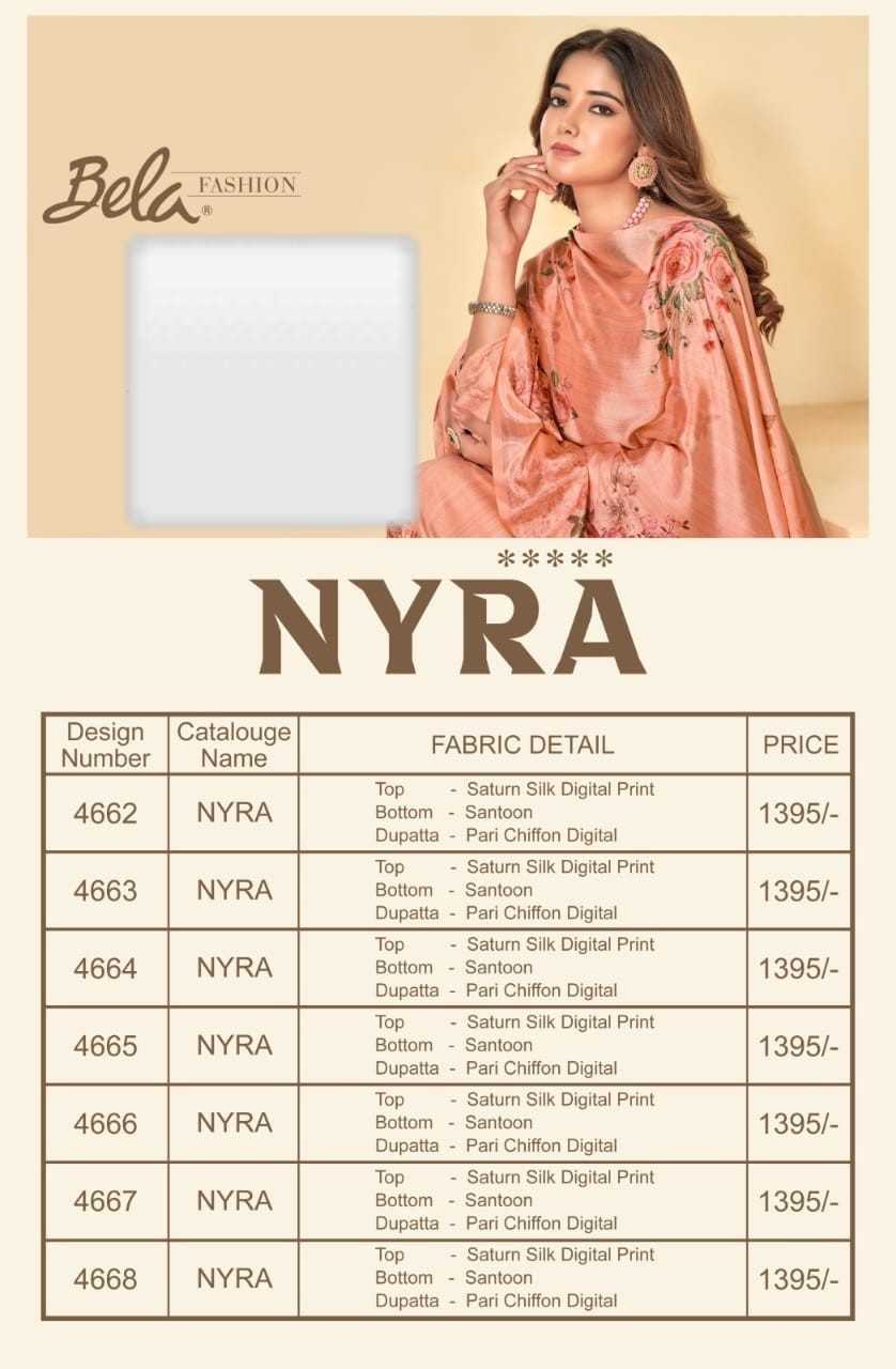 Bela Nyra 4662 To 4668 Fabrics & price list attached GST EXTRA Set to set |