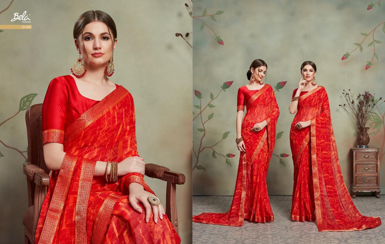 Brand - Bela . Type - Saree. Catlog Name - MOKSHA . Fabric- Major Zorgett. Rate -720 per pcs . 11 pc catalog Set To Set. GST 5 Percent Extra. Delivery from today |