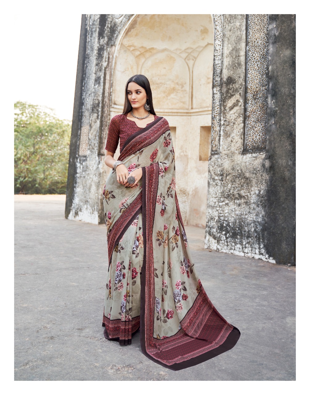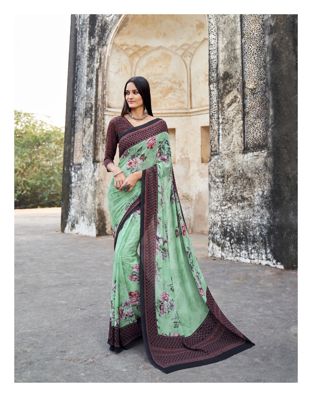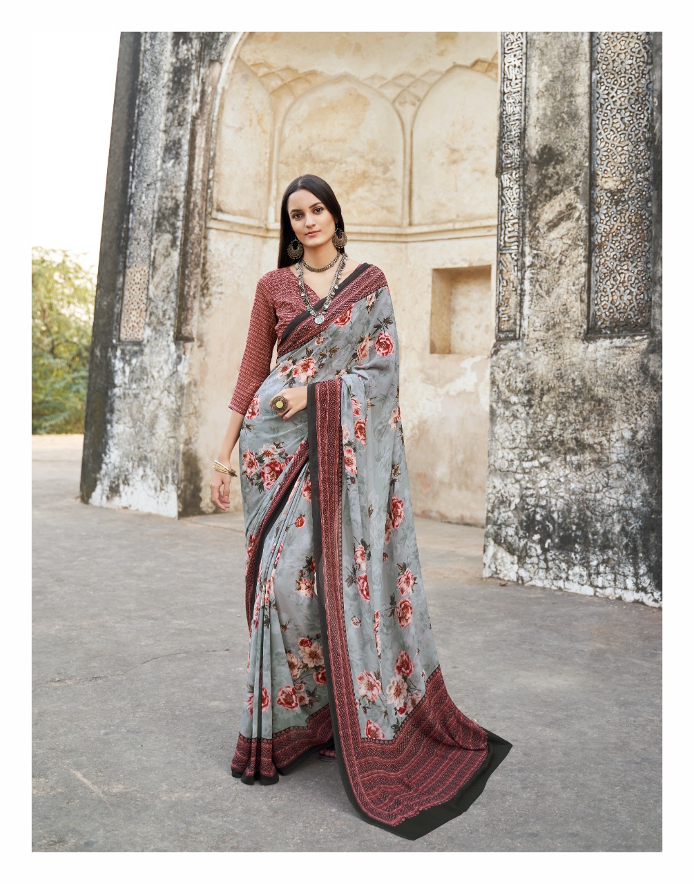 Bela Present Shapphire Georgette Crape Printed Saree Wholesaler