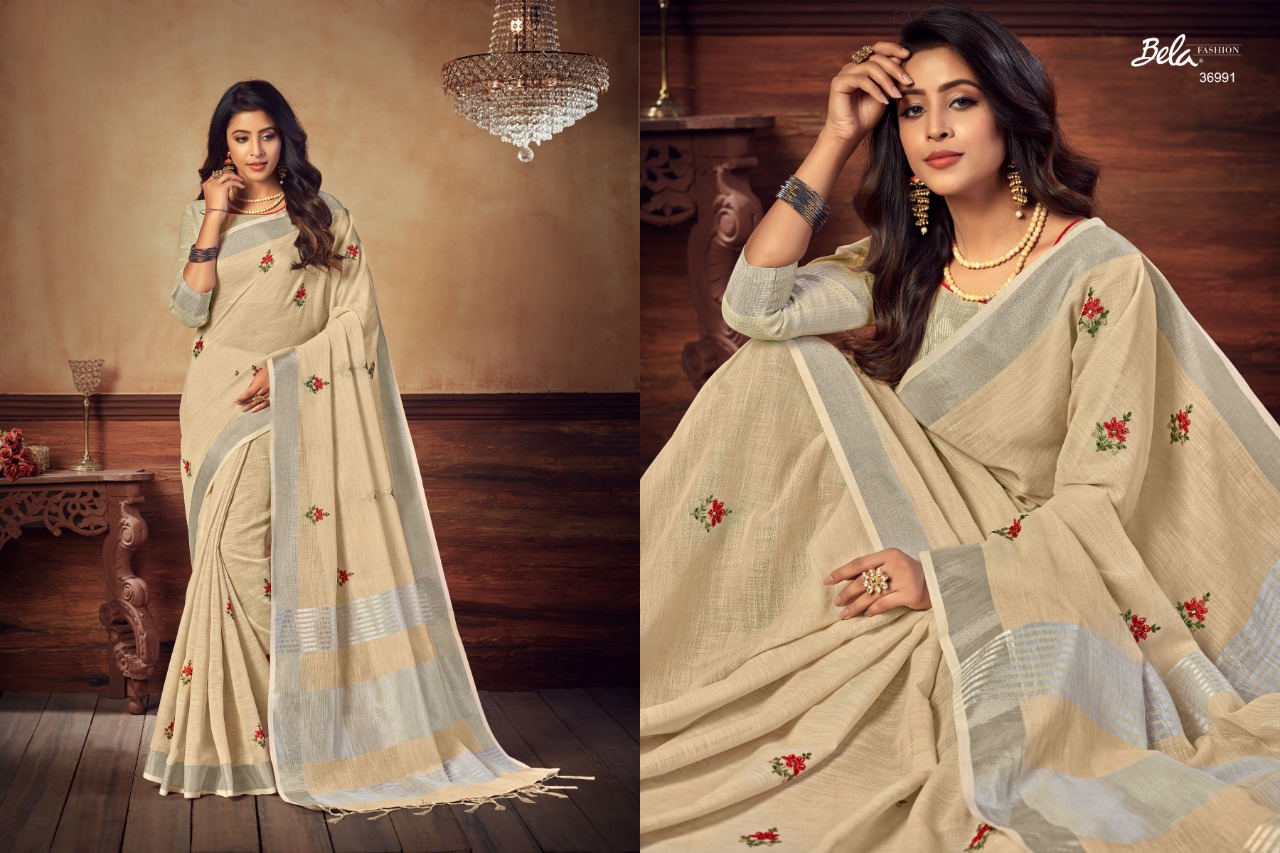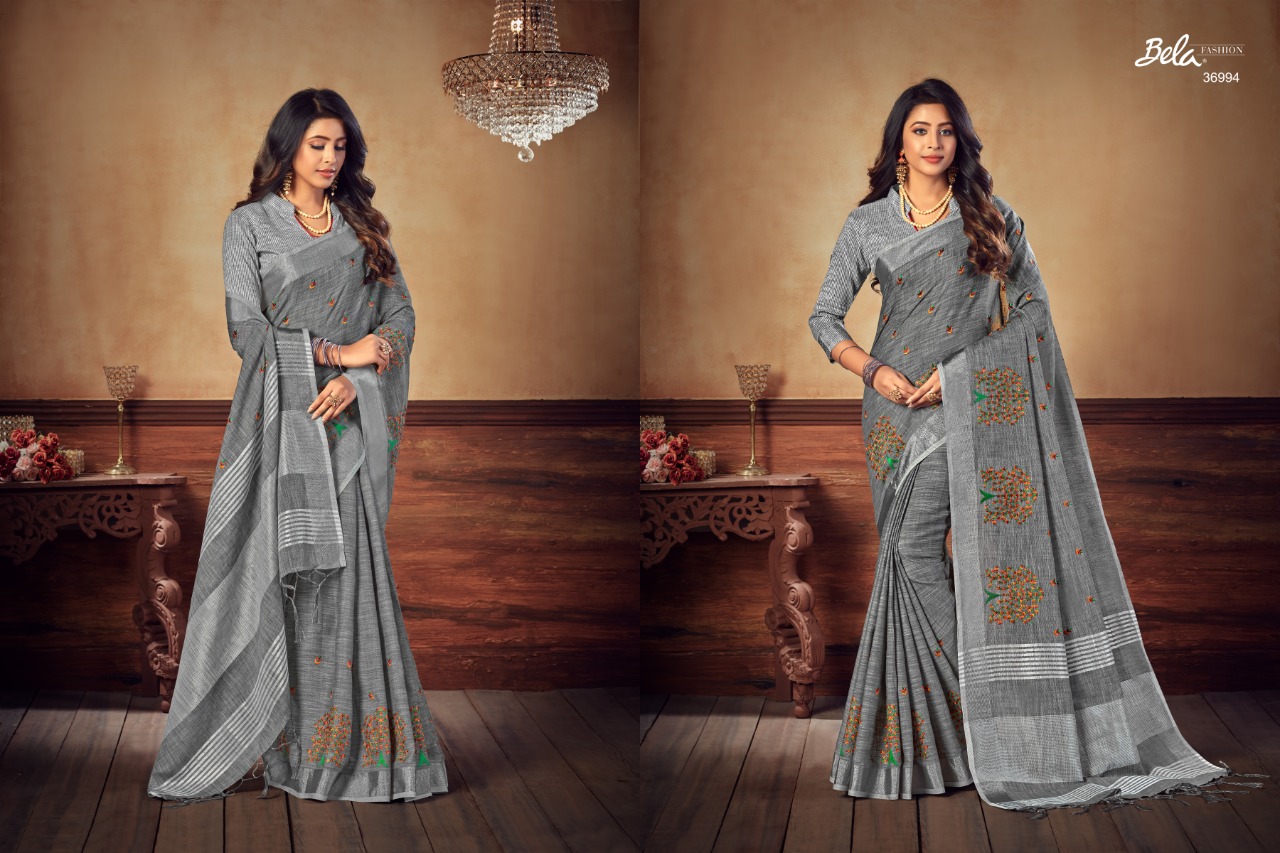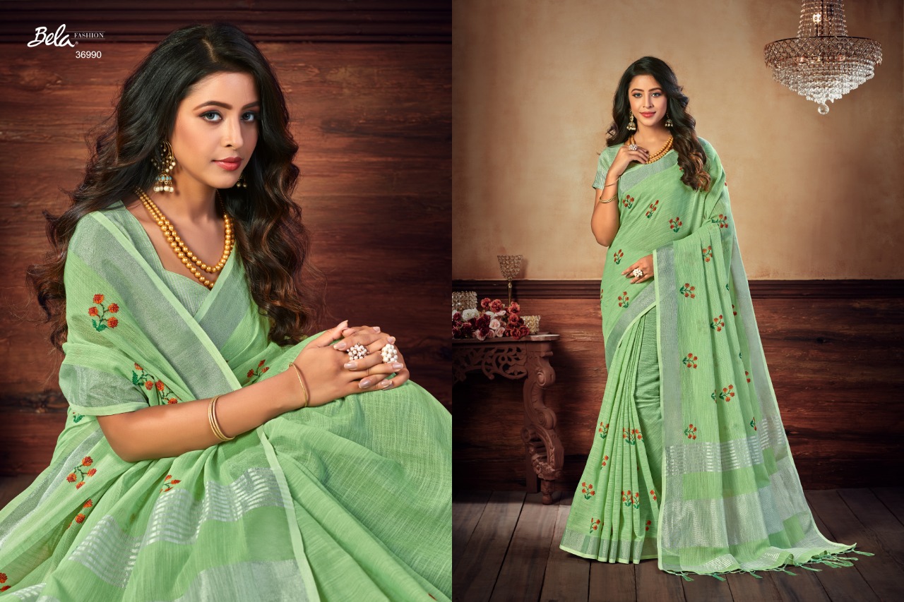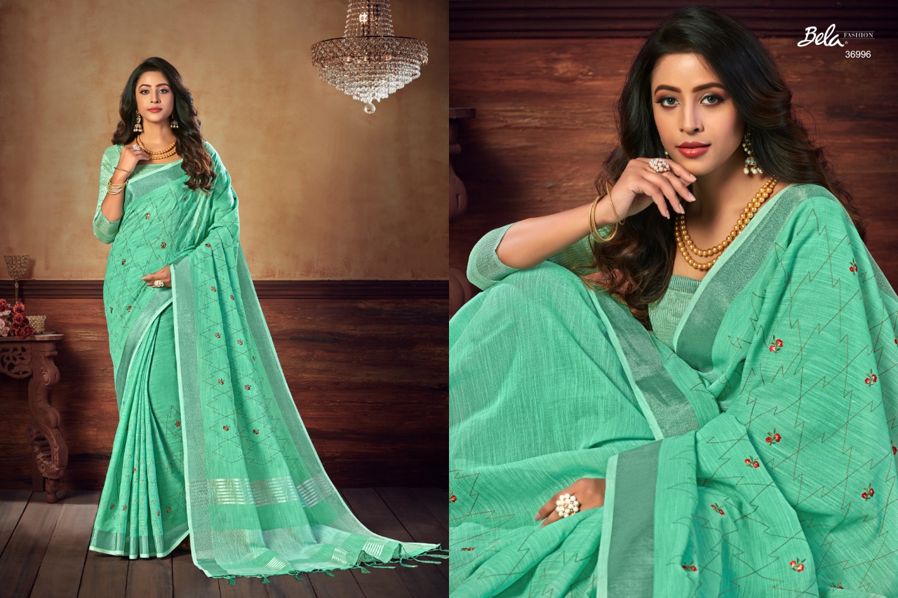 Bela Presenting Jade Vol 3 Linen Embroidery New Design Stylish Saree Online Exporter