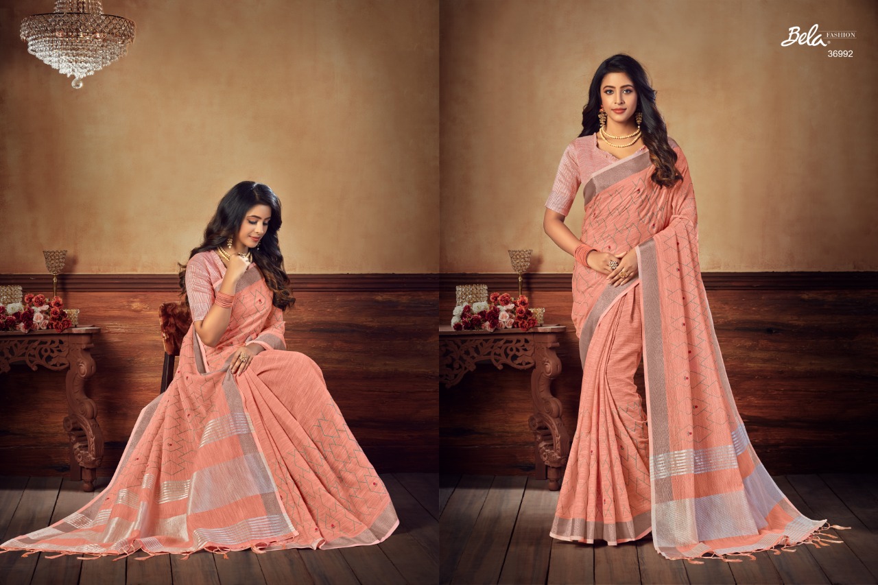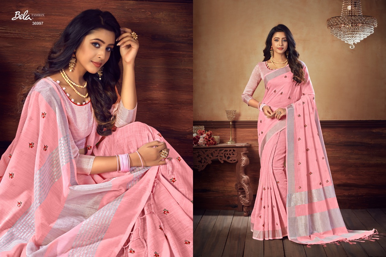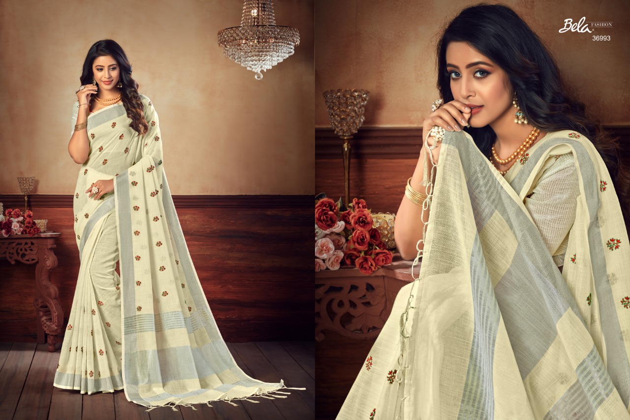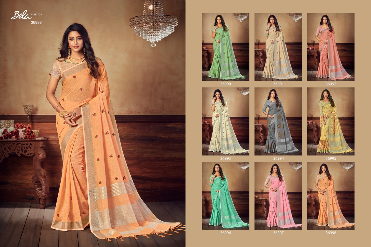 Bela Presenting Jade Vol 3 Linen Embroidery New Design Stylish Saree Online Exporter