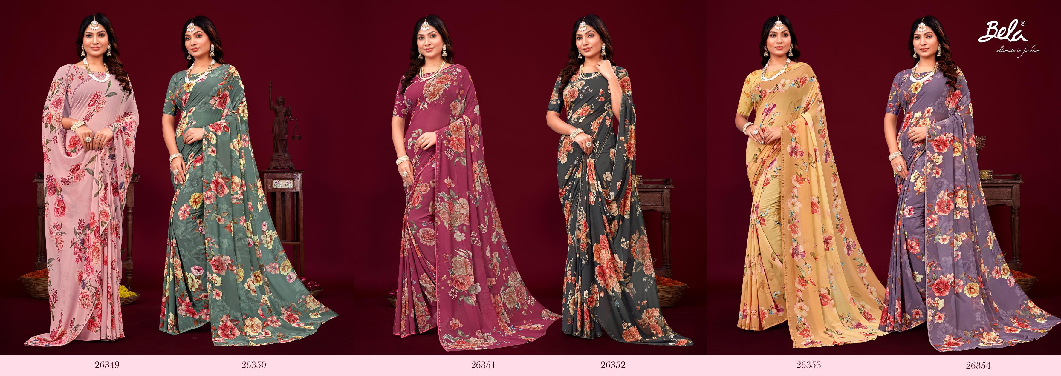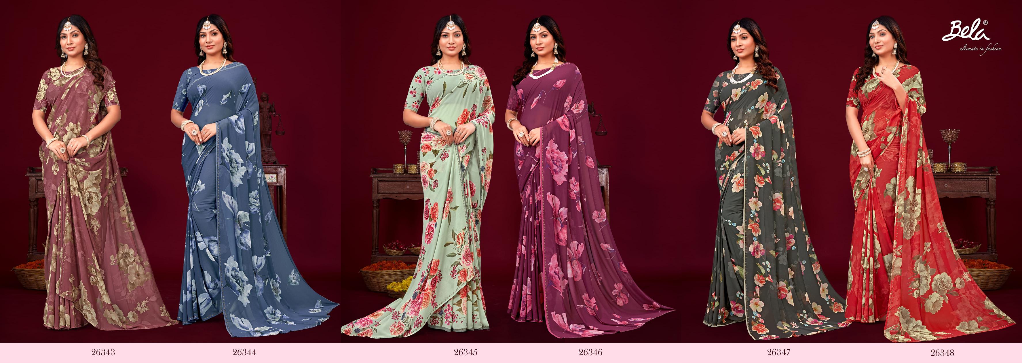 bela saree skylee printed saree with border and stone work