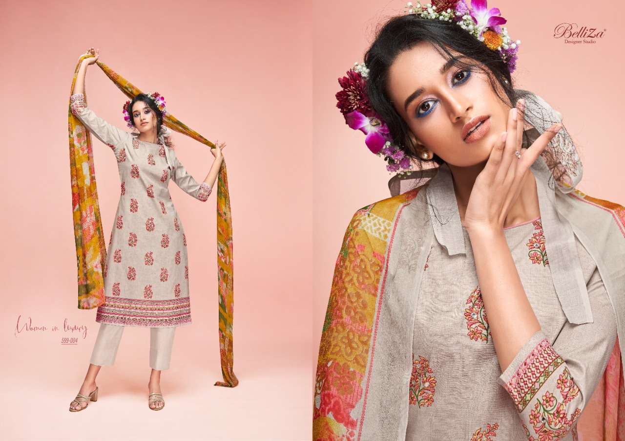 Belliza Designer Studio Presents Latest Collection Launched on 22-04-2022. Presenting Beautiful collection of 10 PCS with Unstitched .
