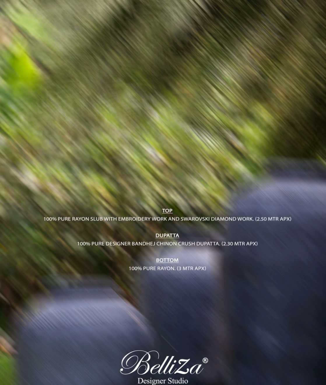 # LOVINA BY BELLIZA ......BelliZa DesigNer StuDio...... presents ”LOVINA" 🔺Dupatta: 100% Pure Chinon Bandhej Crush Digital Print (2.30 mtrs apx) 🔺Bottom: 100% Pure Viscose Rayon (3 mtrs apx) 🔺Pcs: 08 🔺 Rate: 591/- |