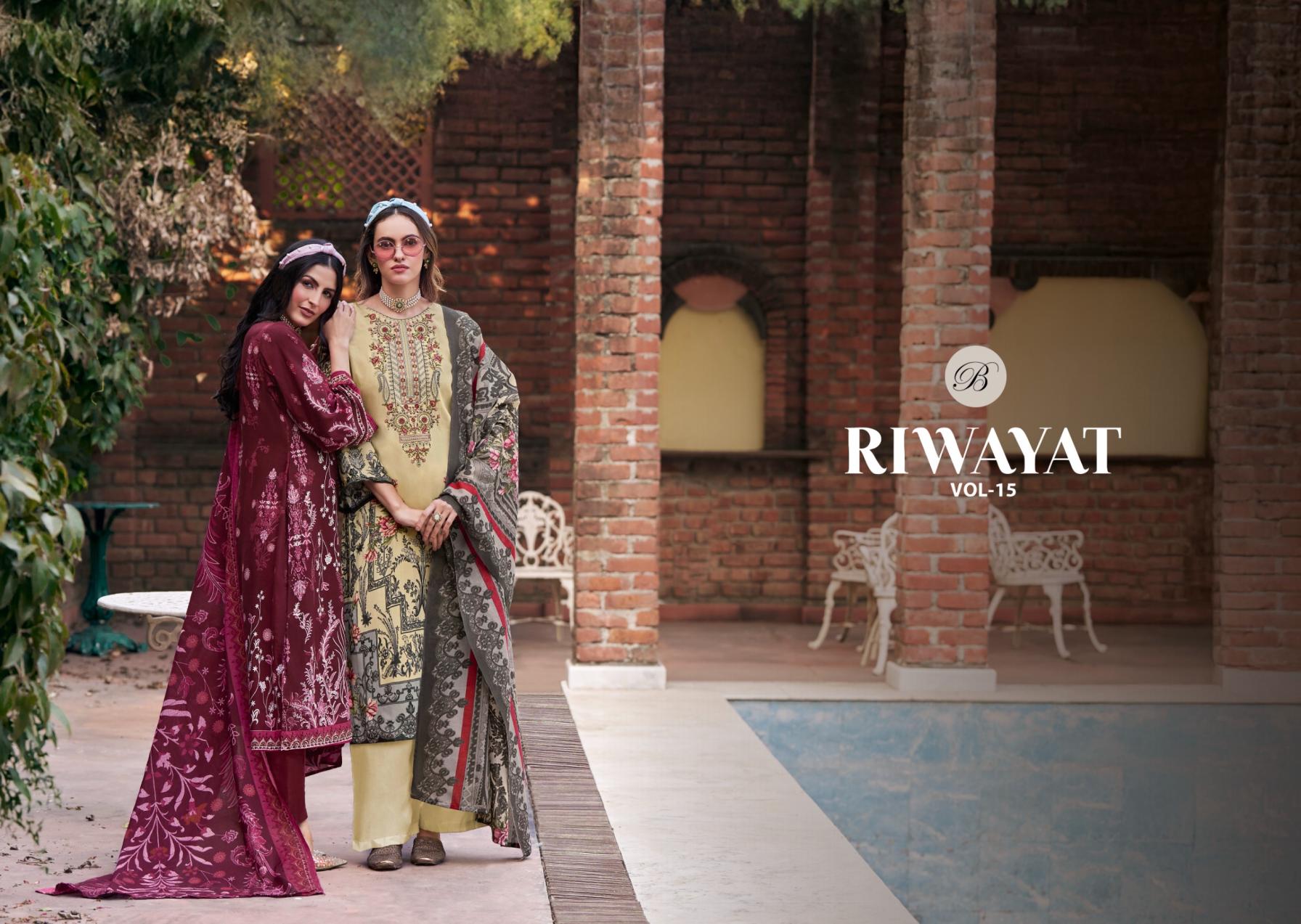 belliza designer riwayat vol 15 viscose rayon fully stitch plus size 3pcs pakistani suits
