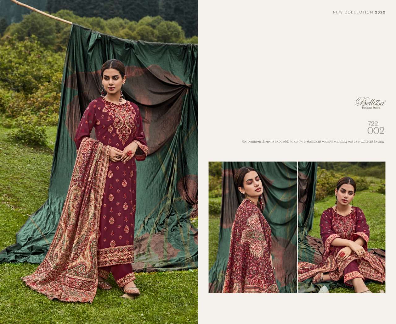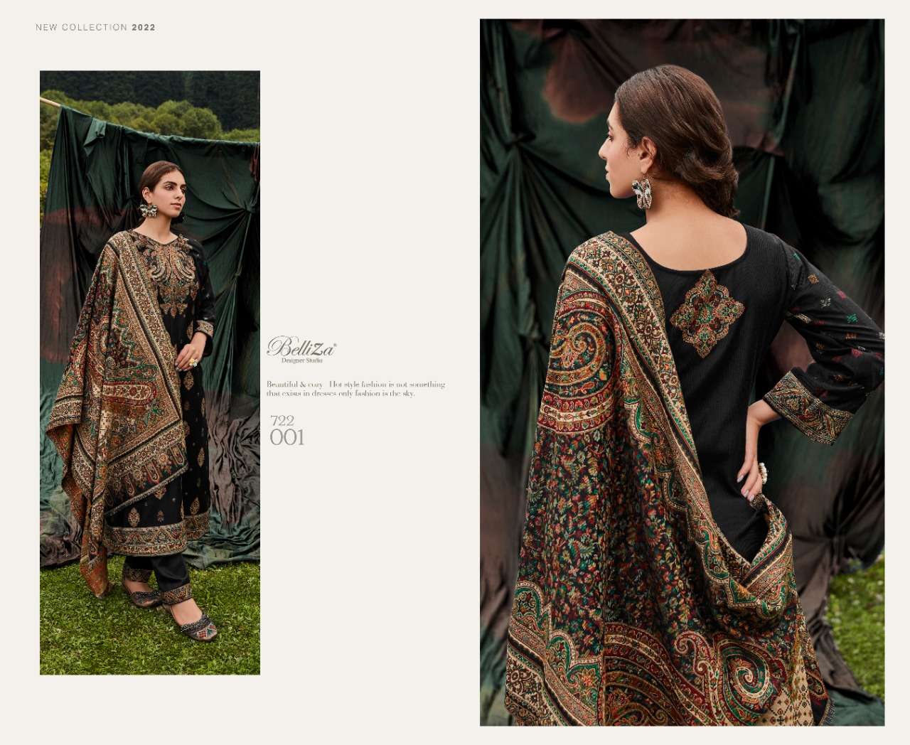 belliza designer rumi wool pashmina kaani winter dresses with 3mtr bottom