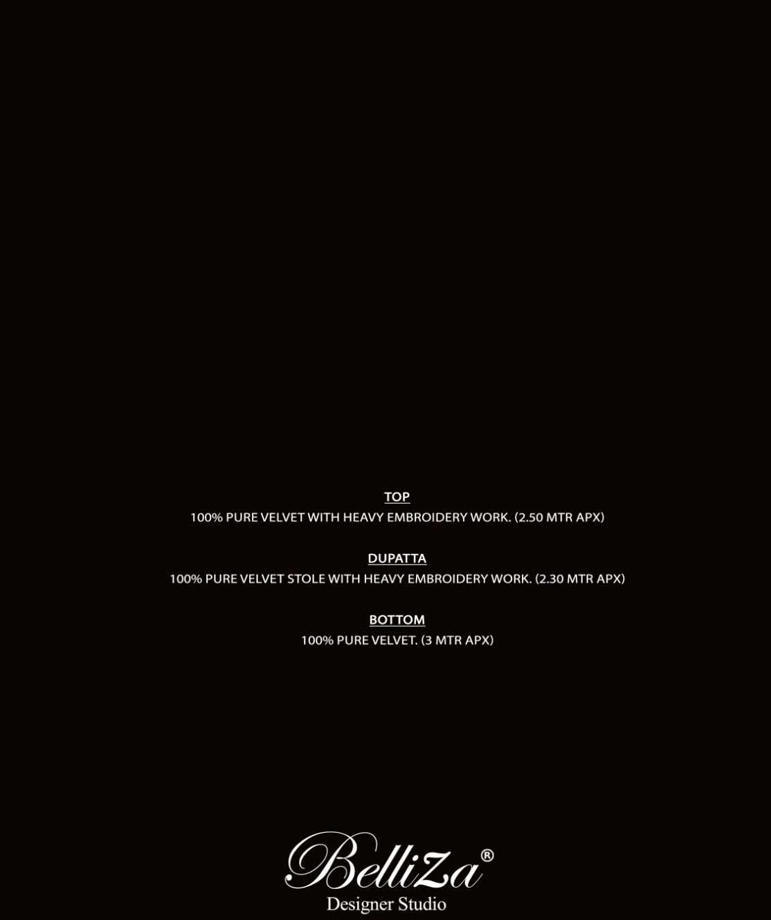 # PURE VELVET BOTTOM ......BelliZa DesigNer StuDio...... presents "SHAHI ANDAAZ" 🔺Dupatta: 100% PURE VELVET with HEAVY EMBROIDERY WORK (2.30 mtrs apx) 🔺Bottom: 100% PURE VELVET (3 mtrs apx) 🔺Pcs: 06 🔺 Rate: 1495/- |