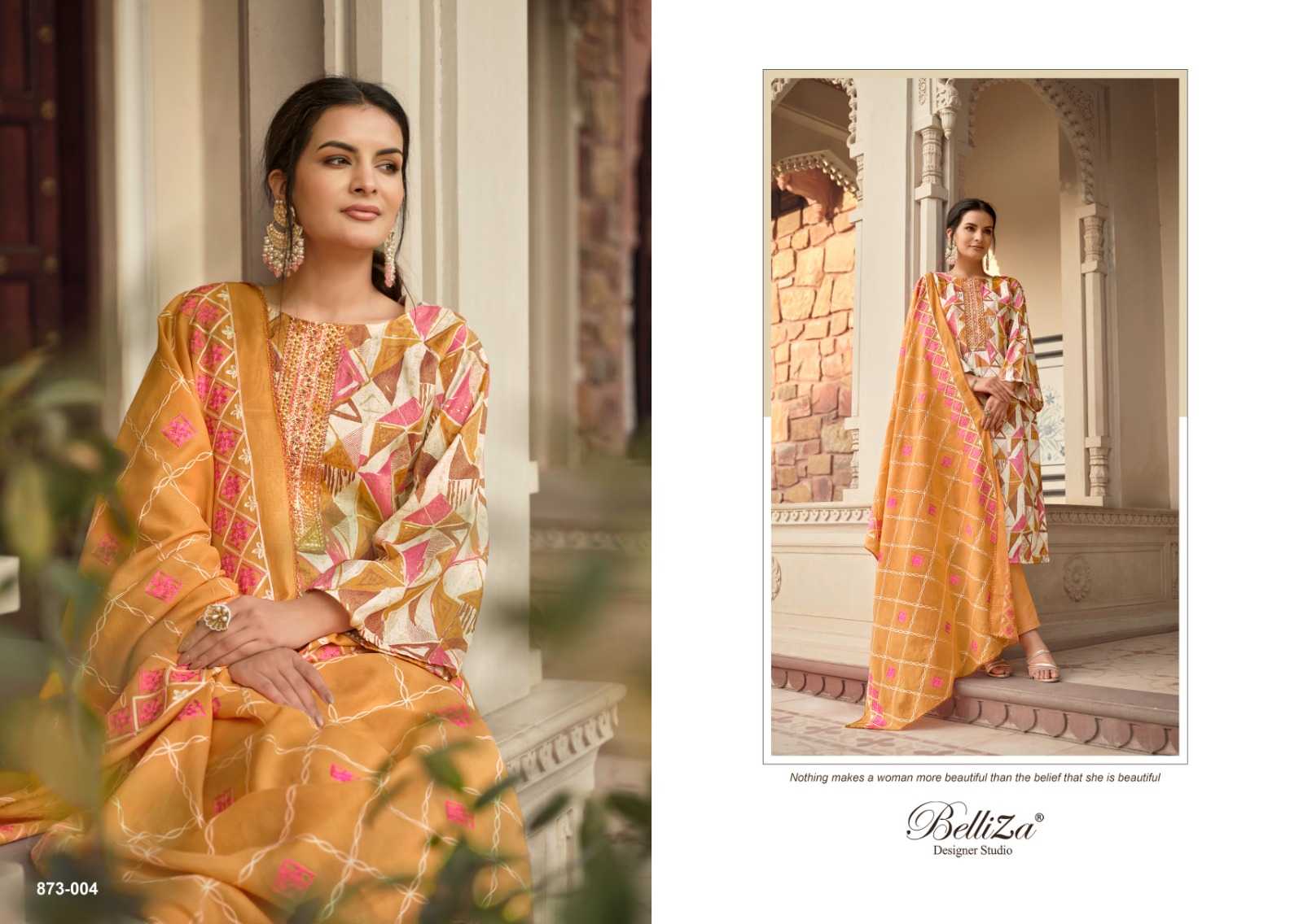 Belliza Designer Studio Presents Latest Collection Launched on 24-01-2024. Presenting Beautiful collection of 8 PCS with Unstitched .