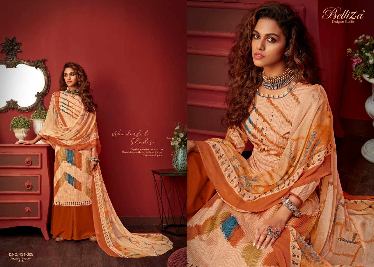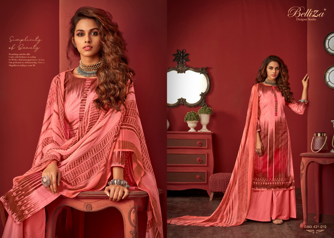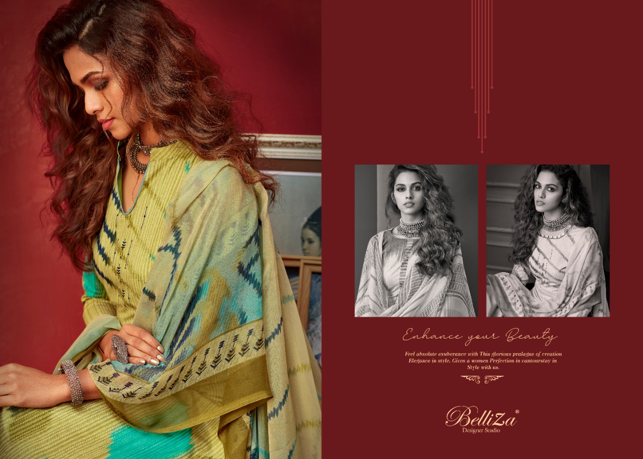 Belliza Designer Studio Presents Latest Collection Launched on 06-07-2020. Presenting Beautiful collection of 10 PCS with Unstitched .