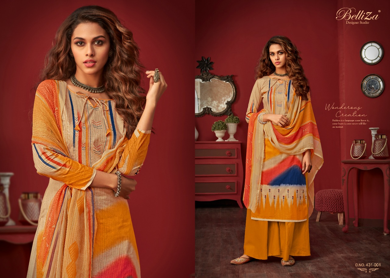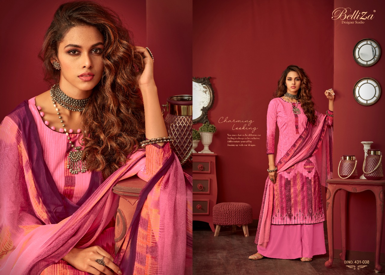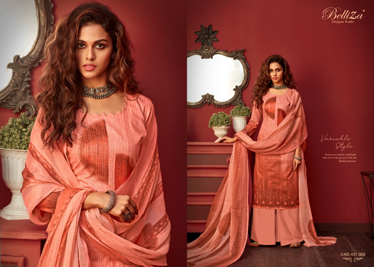 Belliza Designer Studio Presents Latest Collection Launched on 06-07-2020. Presenting Beautiful collection of 10 PCS with Unstitched .