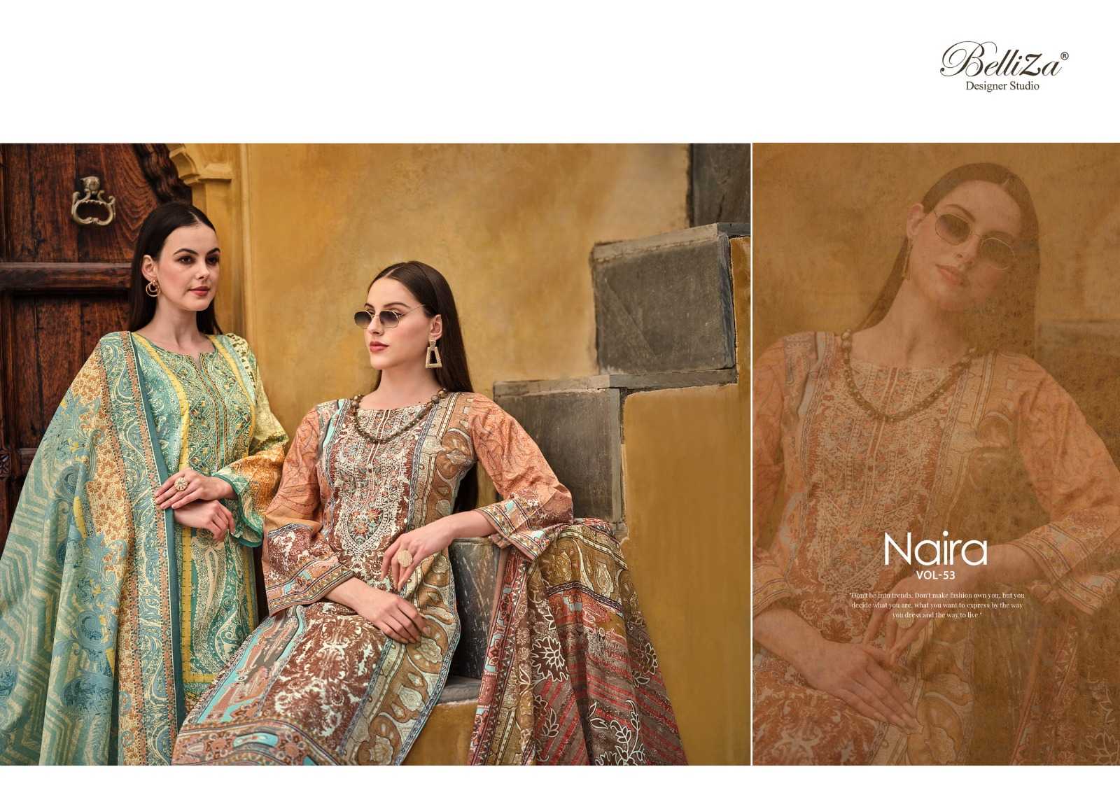 NAIRA VOL 53 BY BELLIZA ......BelliZa DesigNer StuDio...... presents ”NAIRA VOL-53" 🔺Dupatta: 100% Pure MAL MAL Cotton Dupatta Digital Print (2.30 mtrs apx) 🔺Bottom: 100% Pure Cotton (3 mtrs apx) 🔺Pcs: 08 🔺 Rate: 575/- |