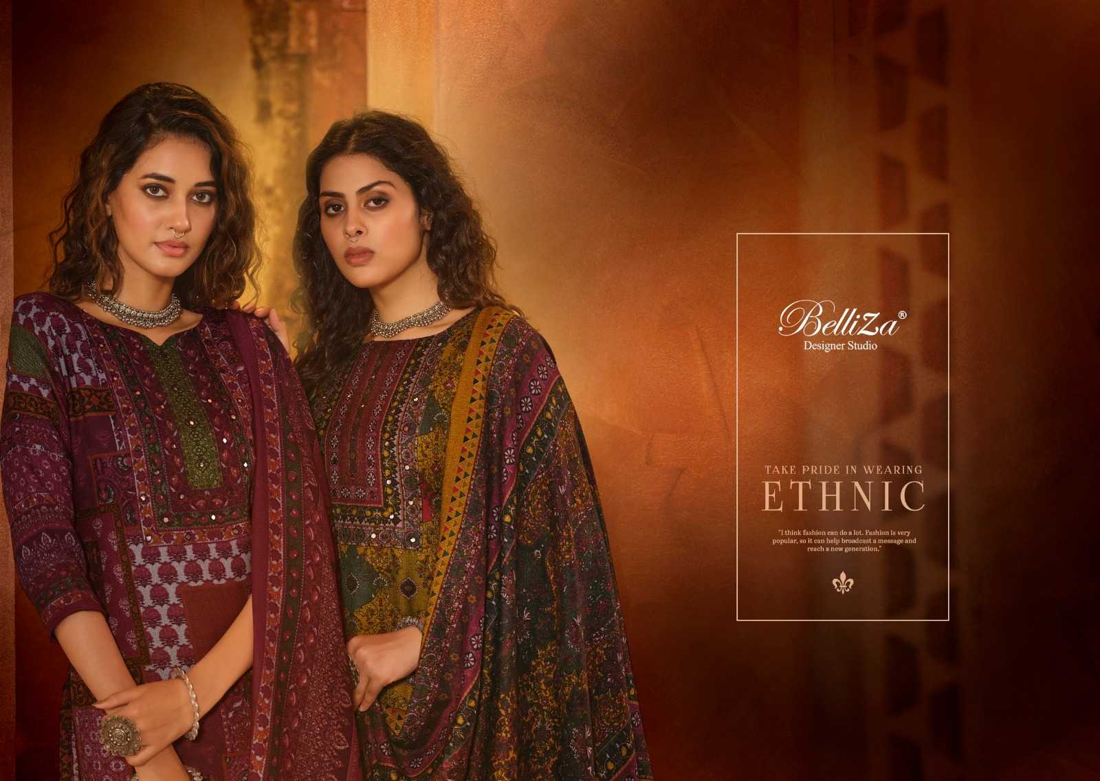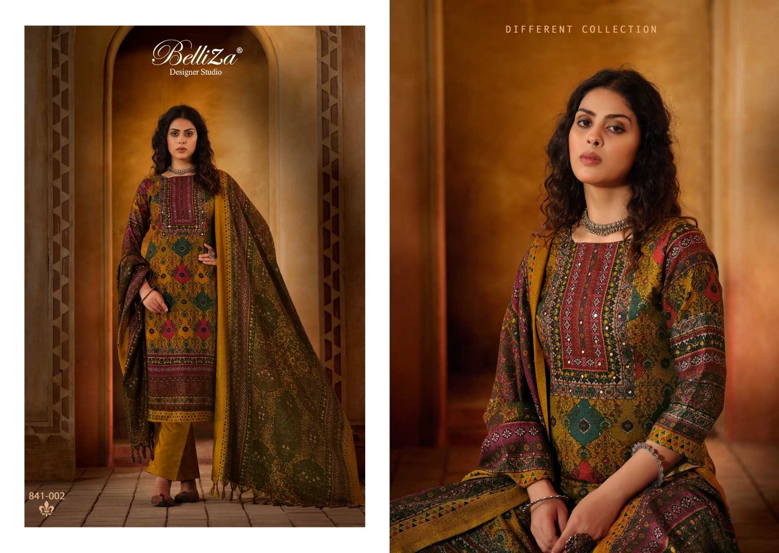 belliza designer taranika alpine wool winter wear embroidery work dress material