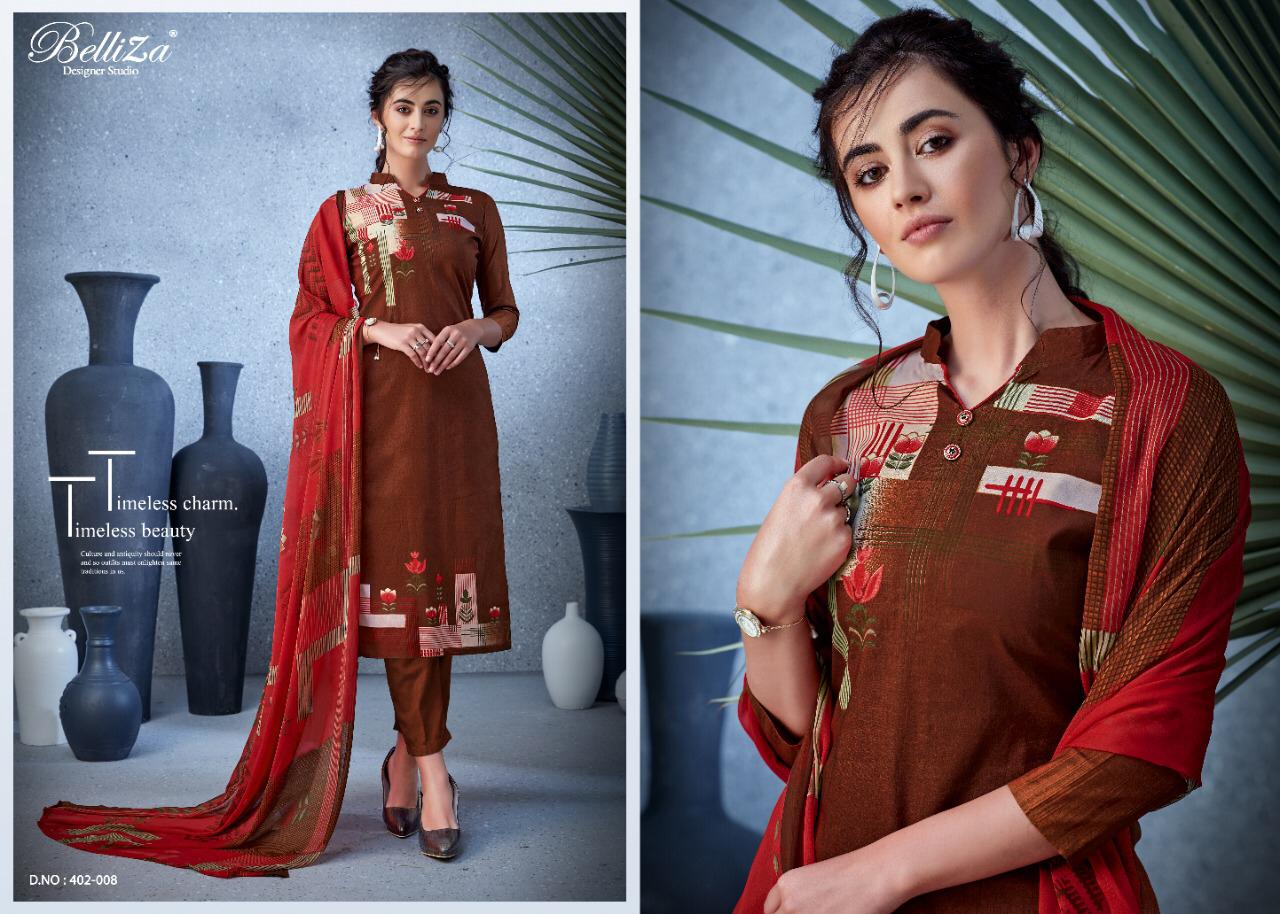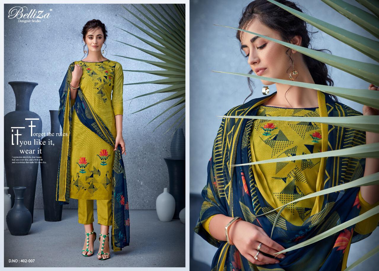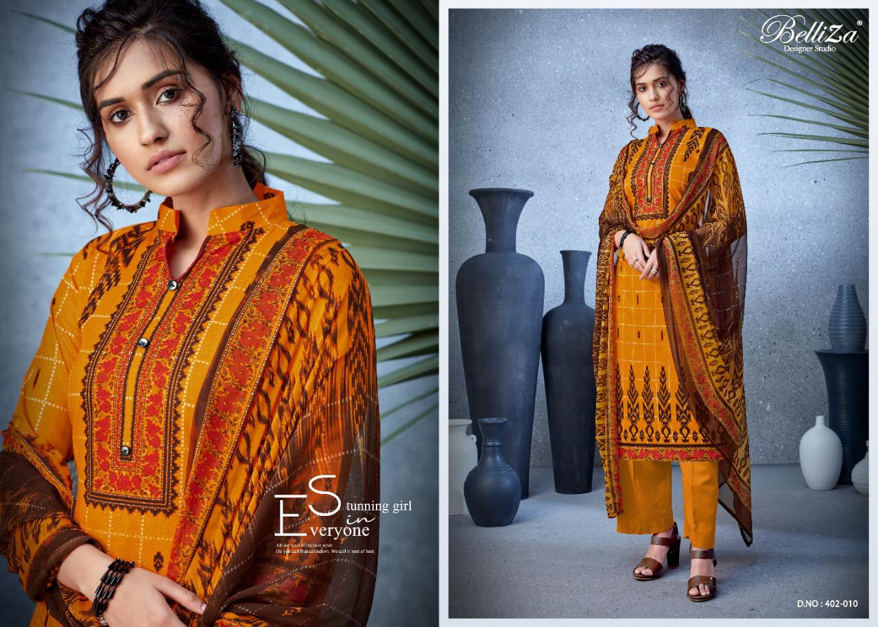 Belliza Designer Studio Presents Latest Collection Launched on 07-02-2020. Presenting Beautiful collection of 10 PCS with Unstitched .