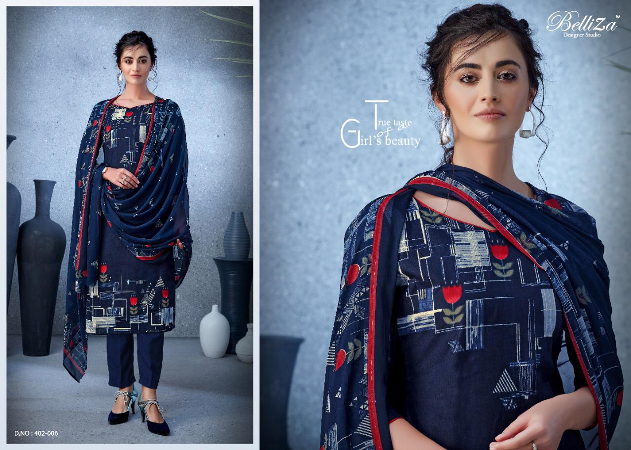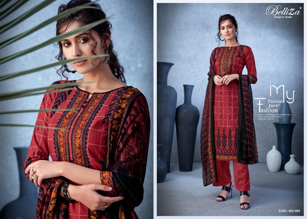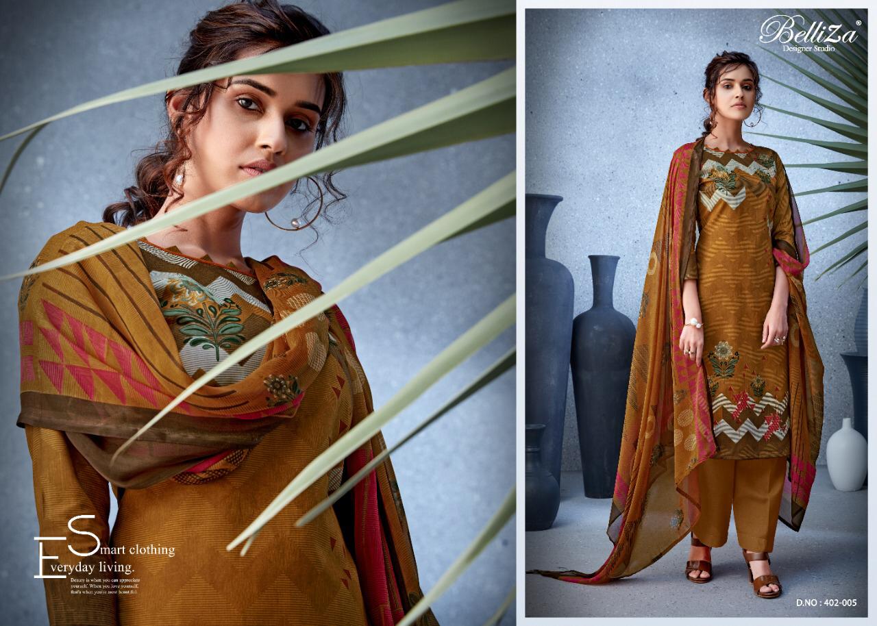 Belliza Designer Studio Presents Latest Collection Launched on 07-02-2020. Presenting Beautiful collection of 10 PCS with Unstitched .