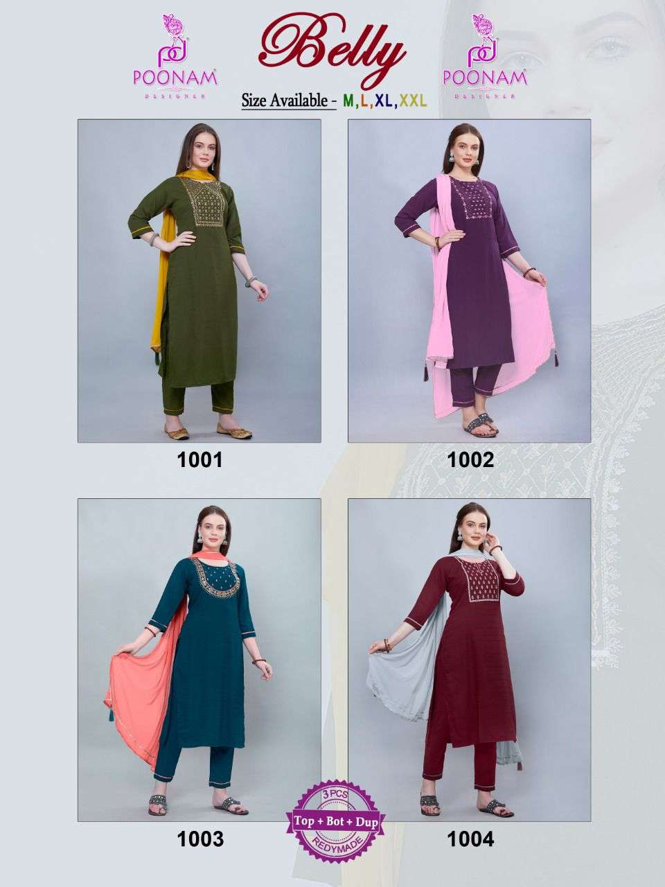 belly by poonam readymade 3 piece fancy suits