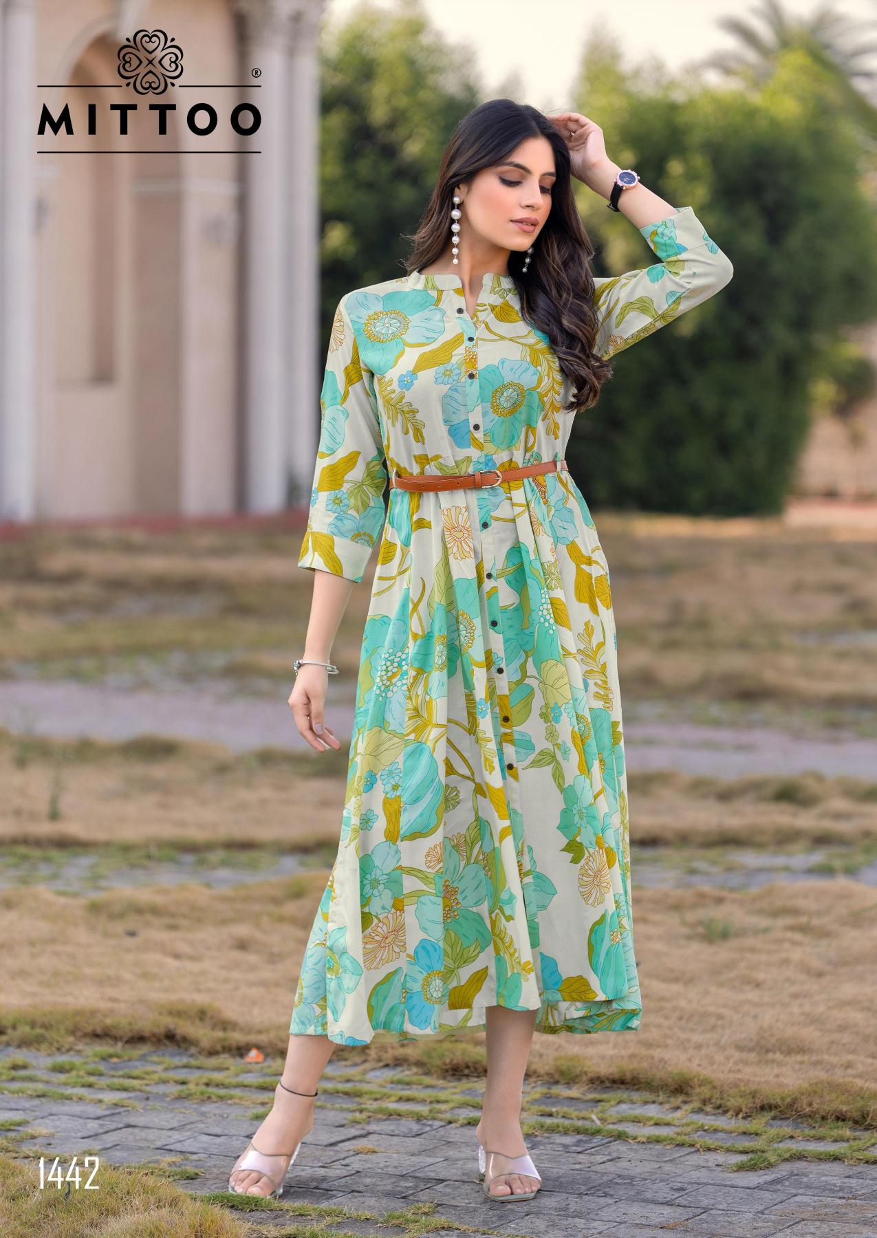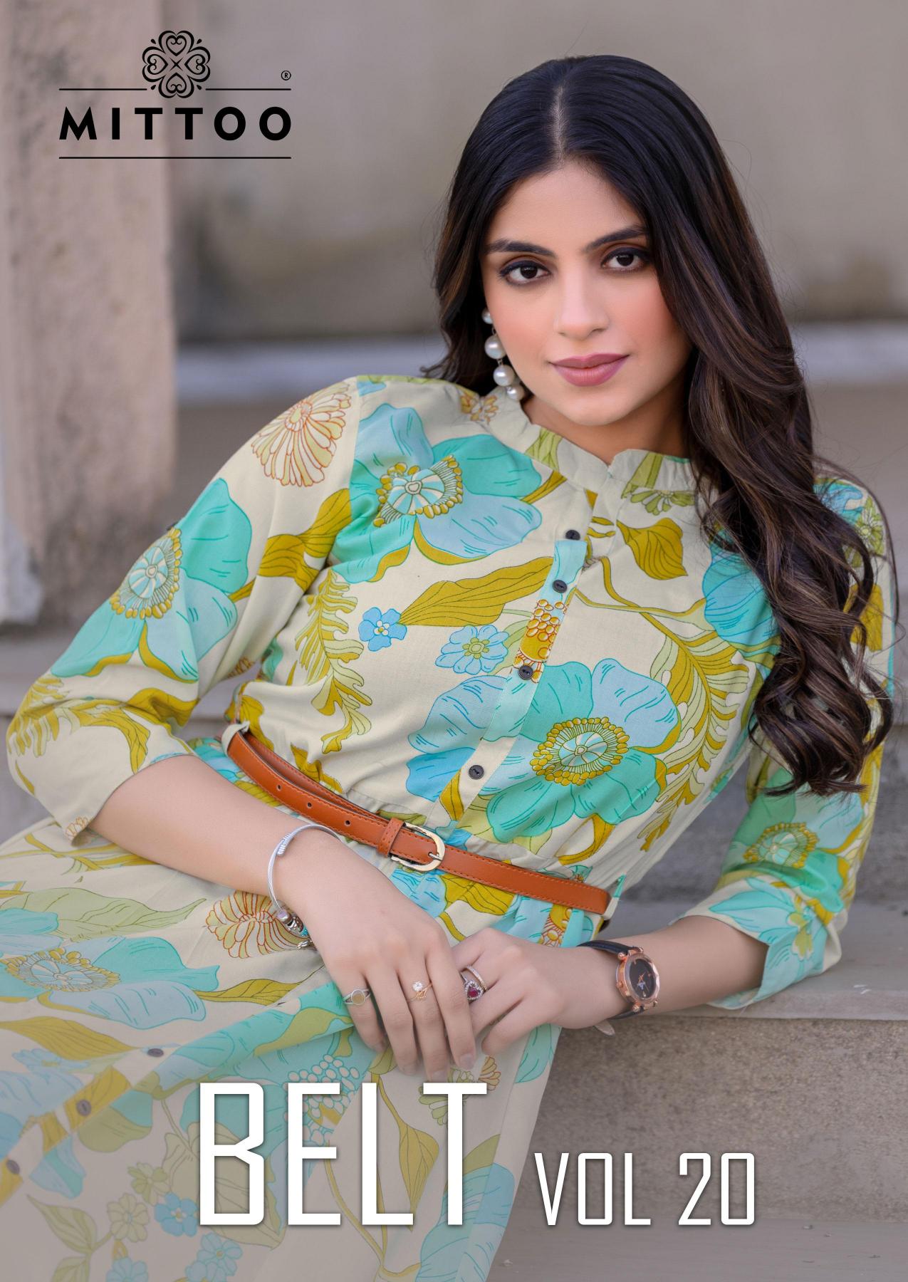 belt vol 20 by mittoo readymade rayon print western kurtis online