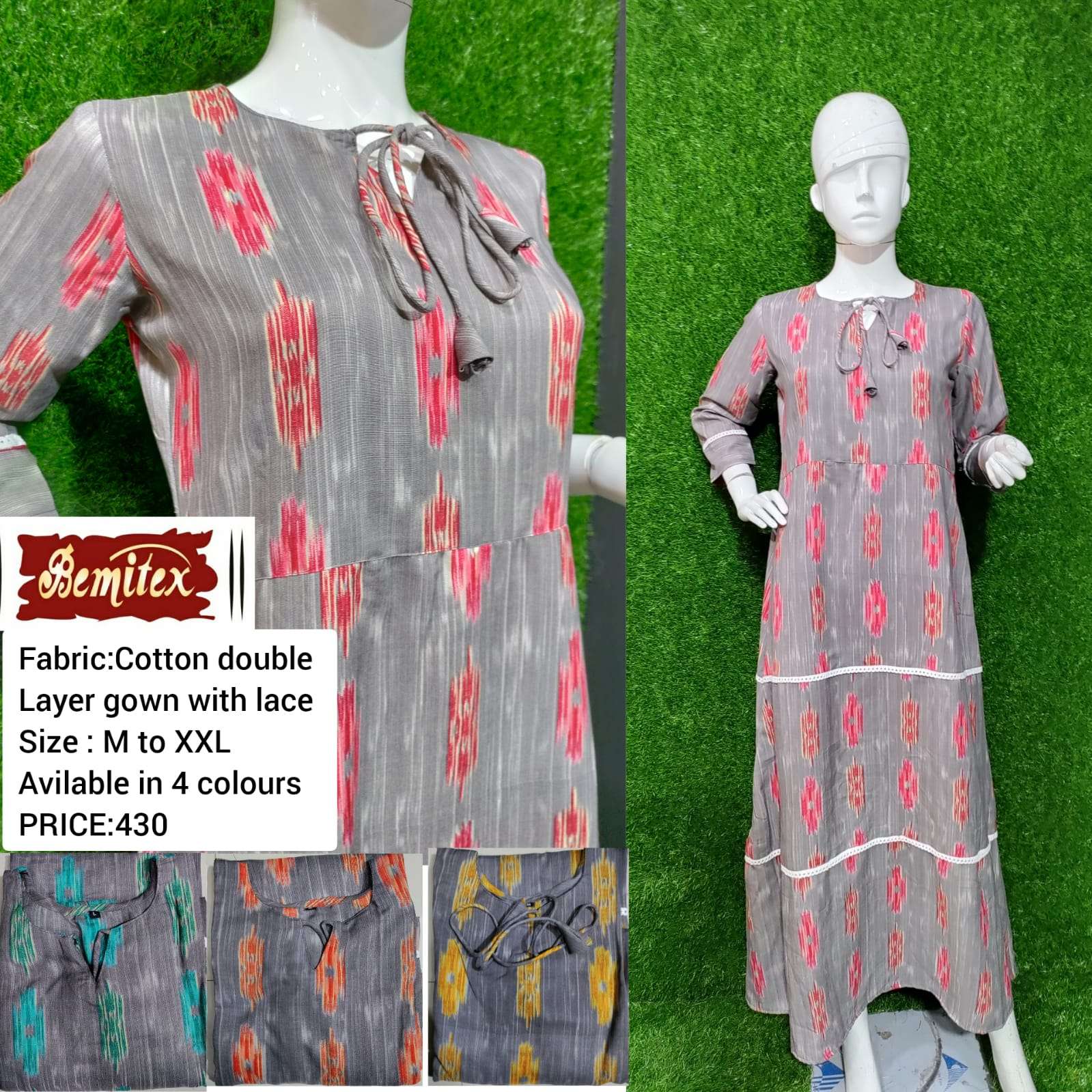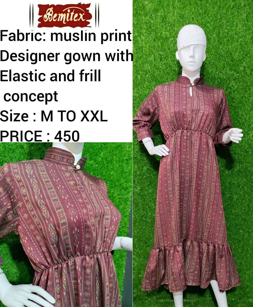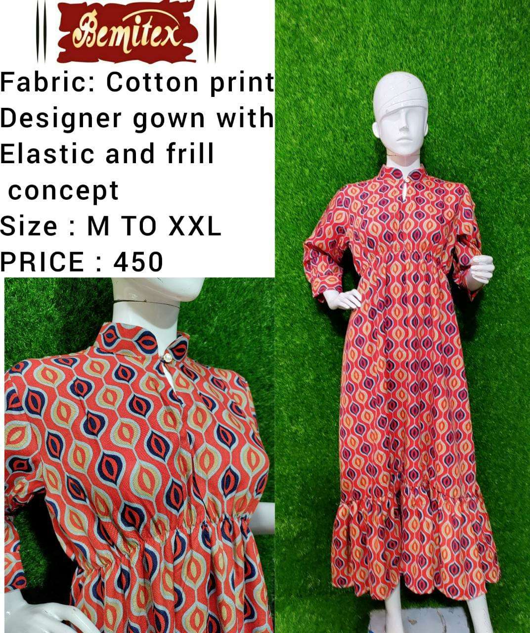 bemitex pr cotton print gown kurti with elastic and frill combo set