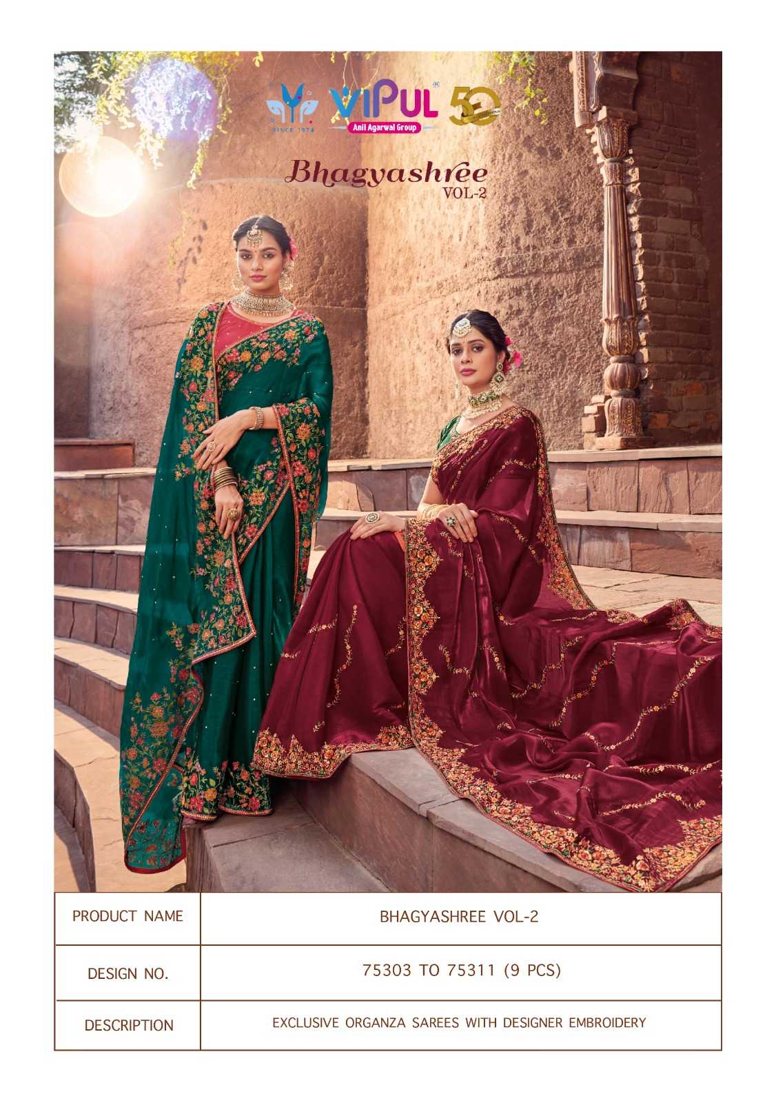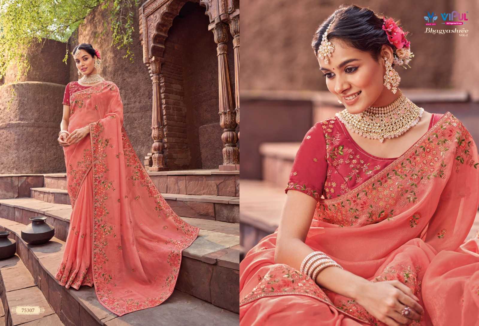 bhagyashree vol 2 by vipul fashion exclusive organza sarees with designer embroidery