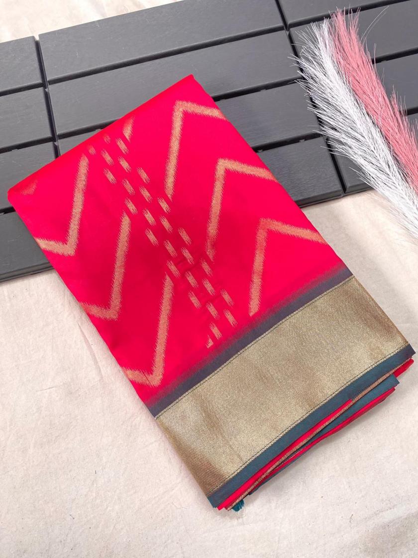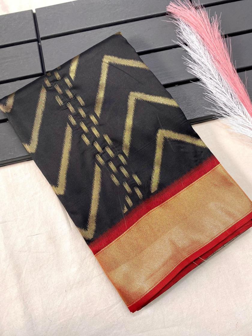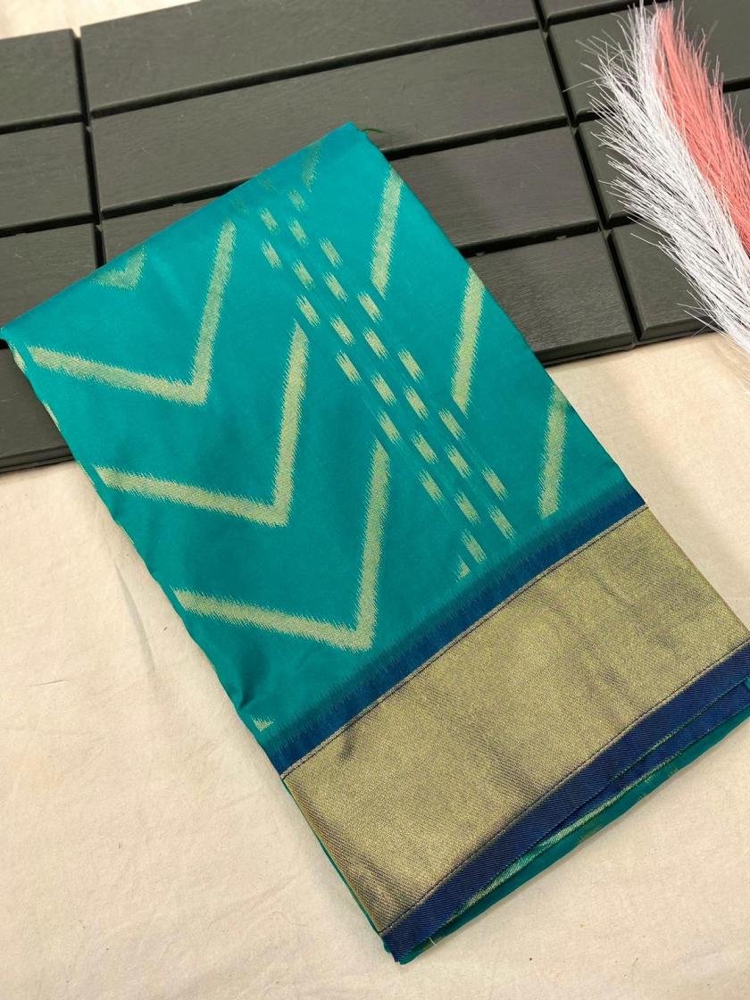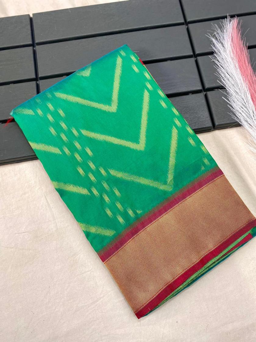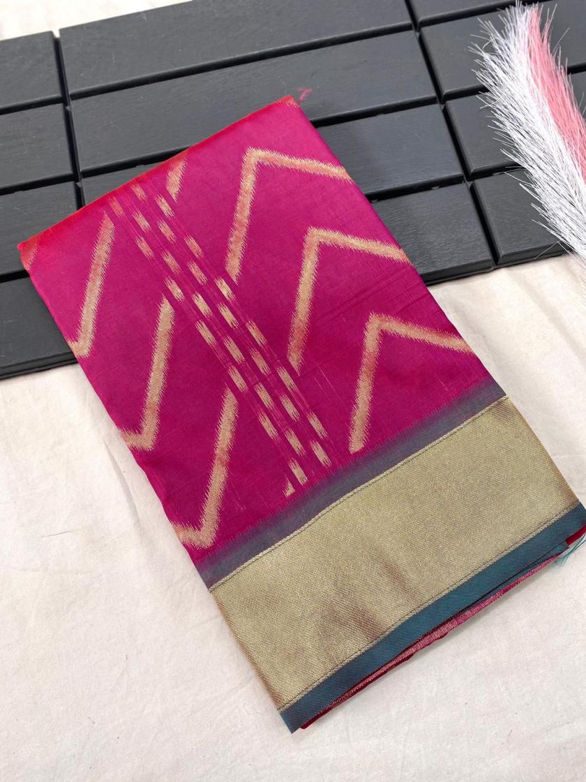 FRESH ARRIVAL❤️ Catalog : Bhanumati Pure soft silk saree with beautiful zig zag viscose zari design with zari patta and rich ikkat weaving pallu Price :- 1250/ - |