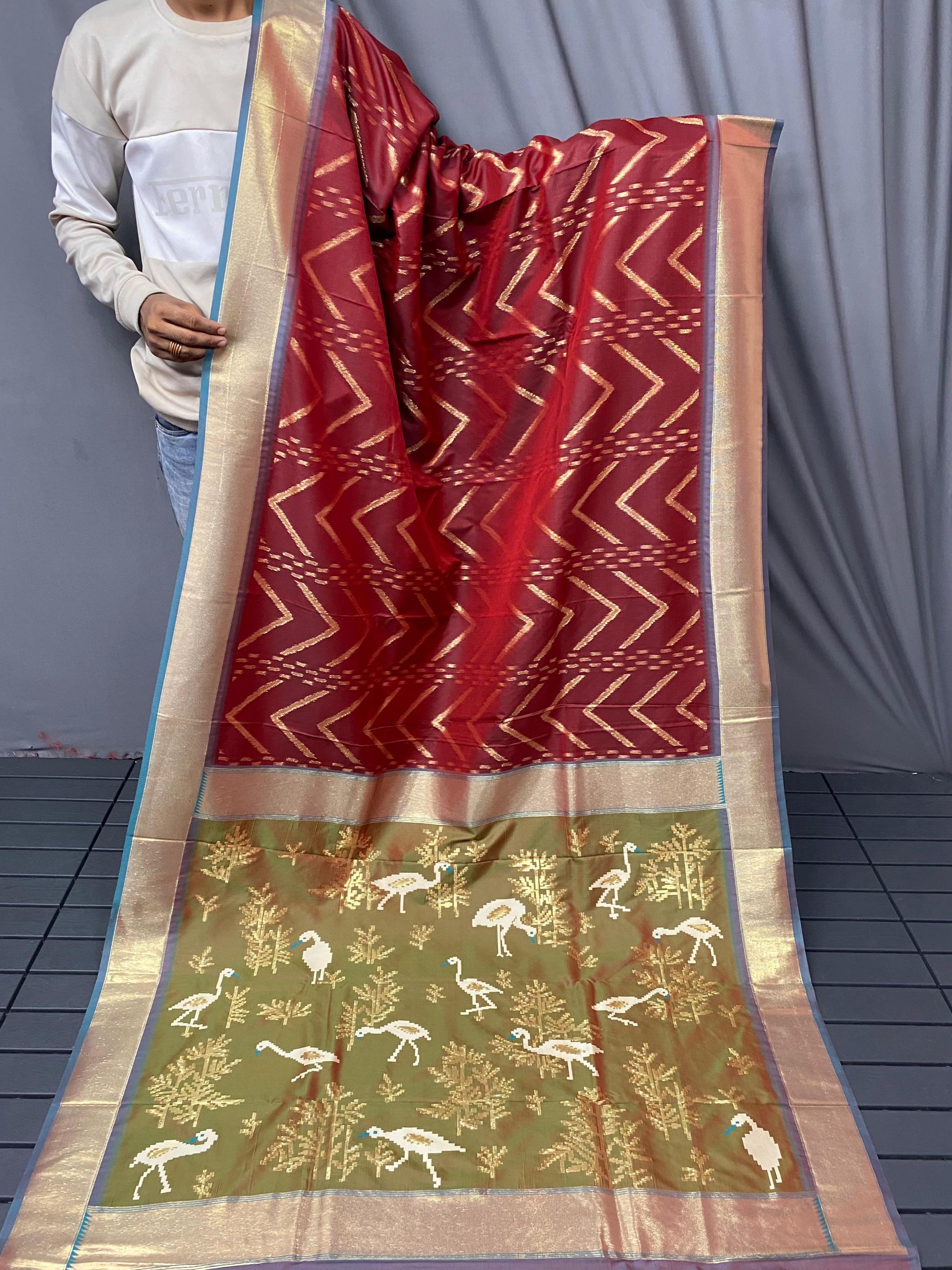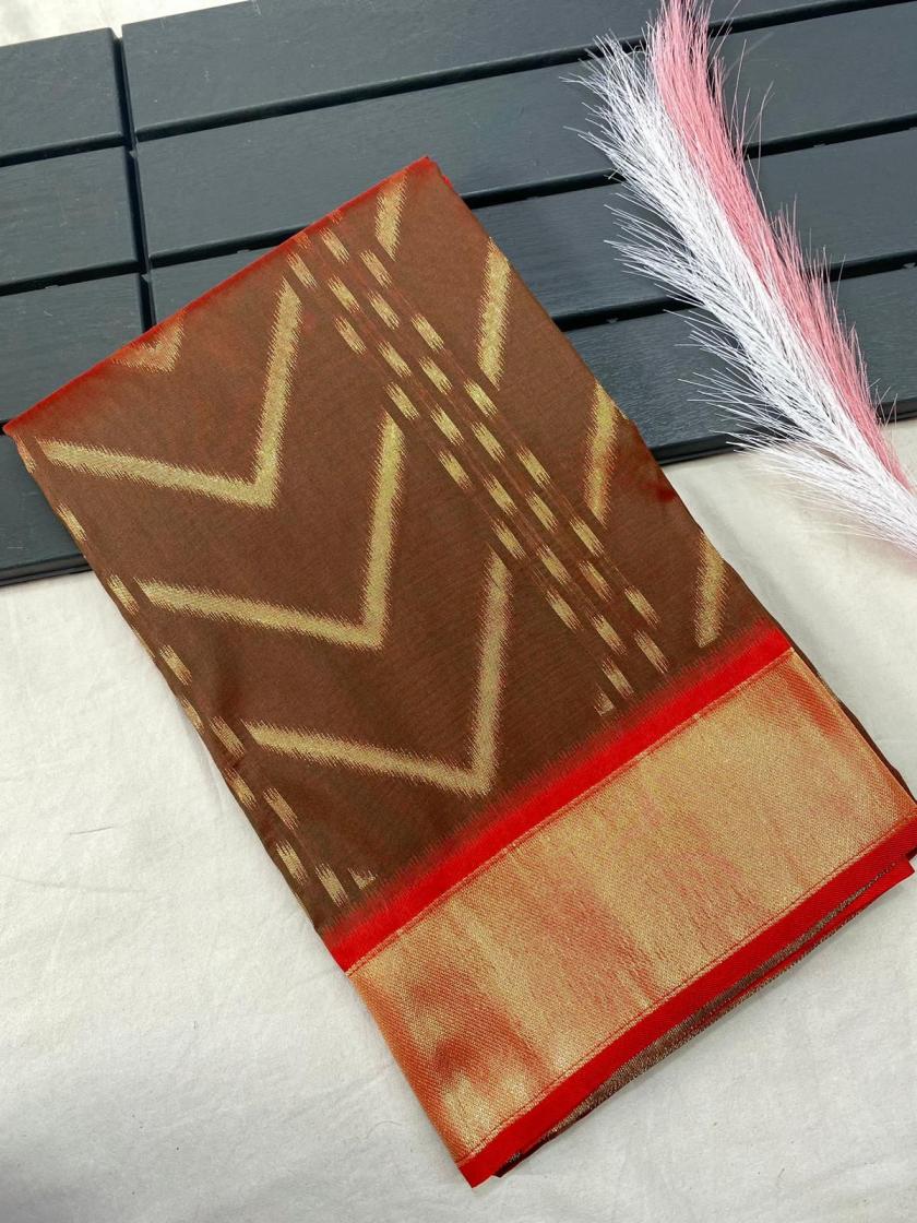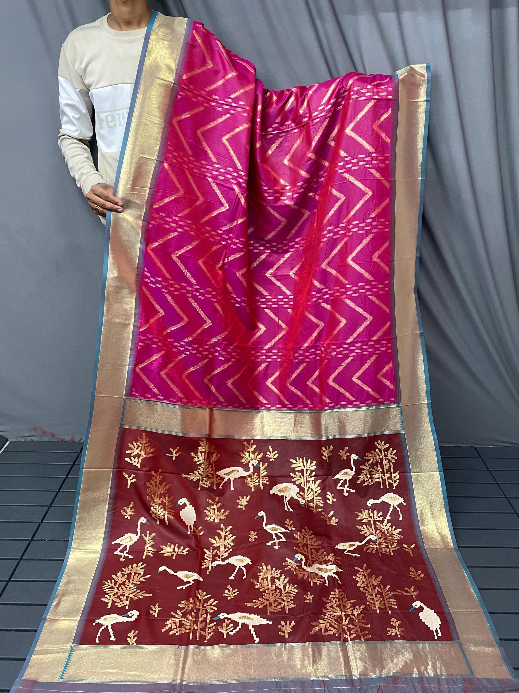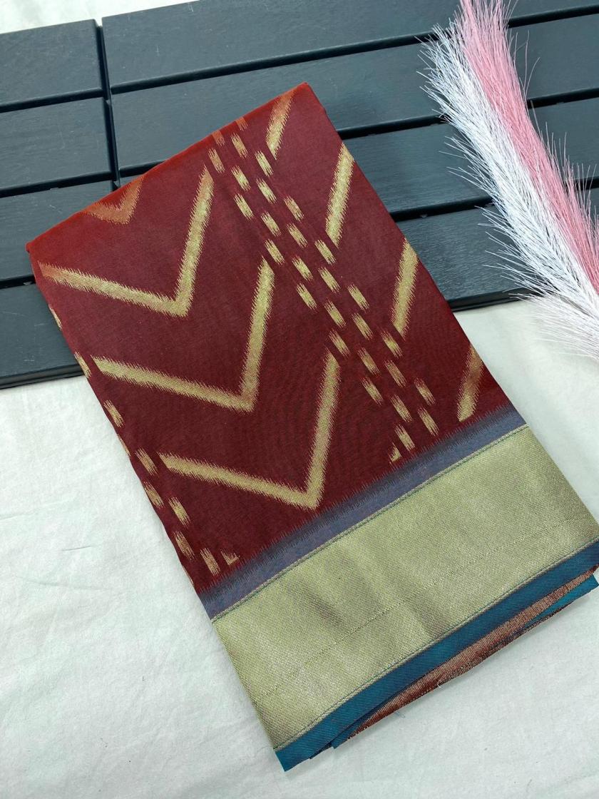 FRESH ARRIVAL❤️ Catalog : Bhanumati Pure soft silk saree with beautiful zig zag viscose zari design with zari patta and rich ikkat weaving pallu Price :- 1250/ - |