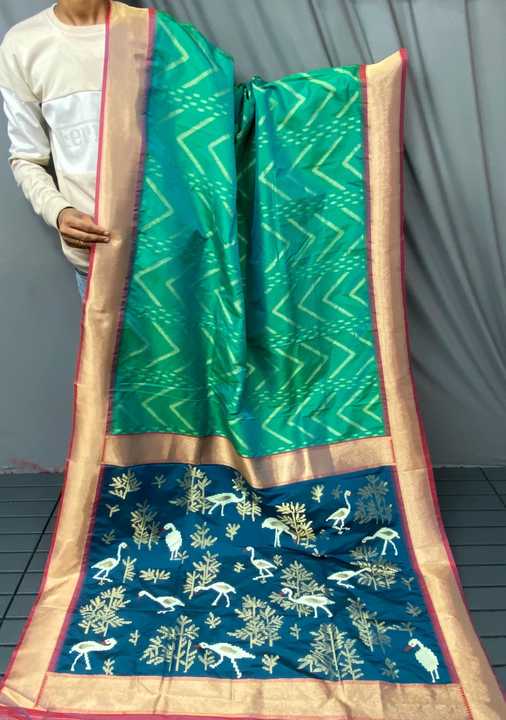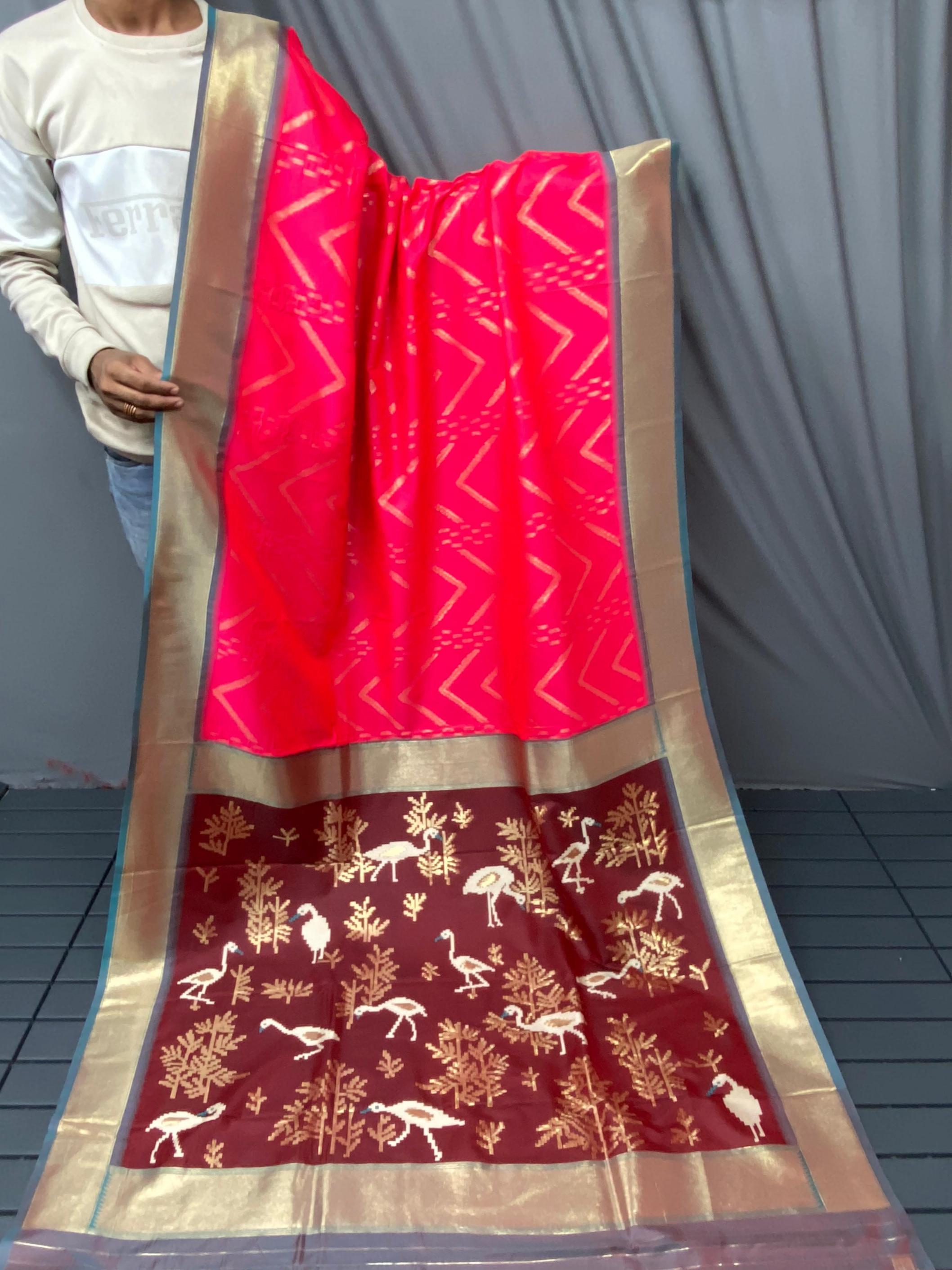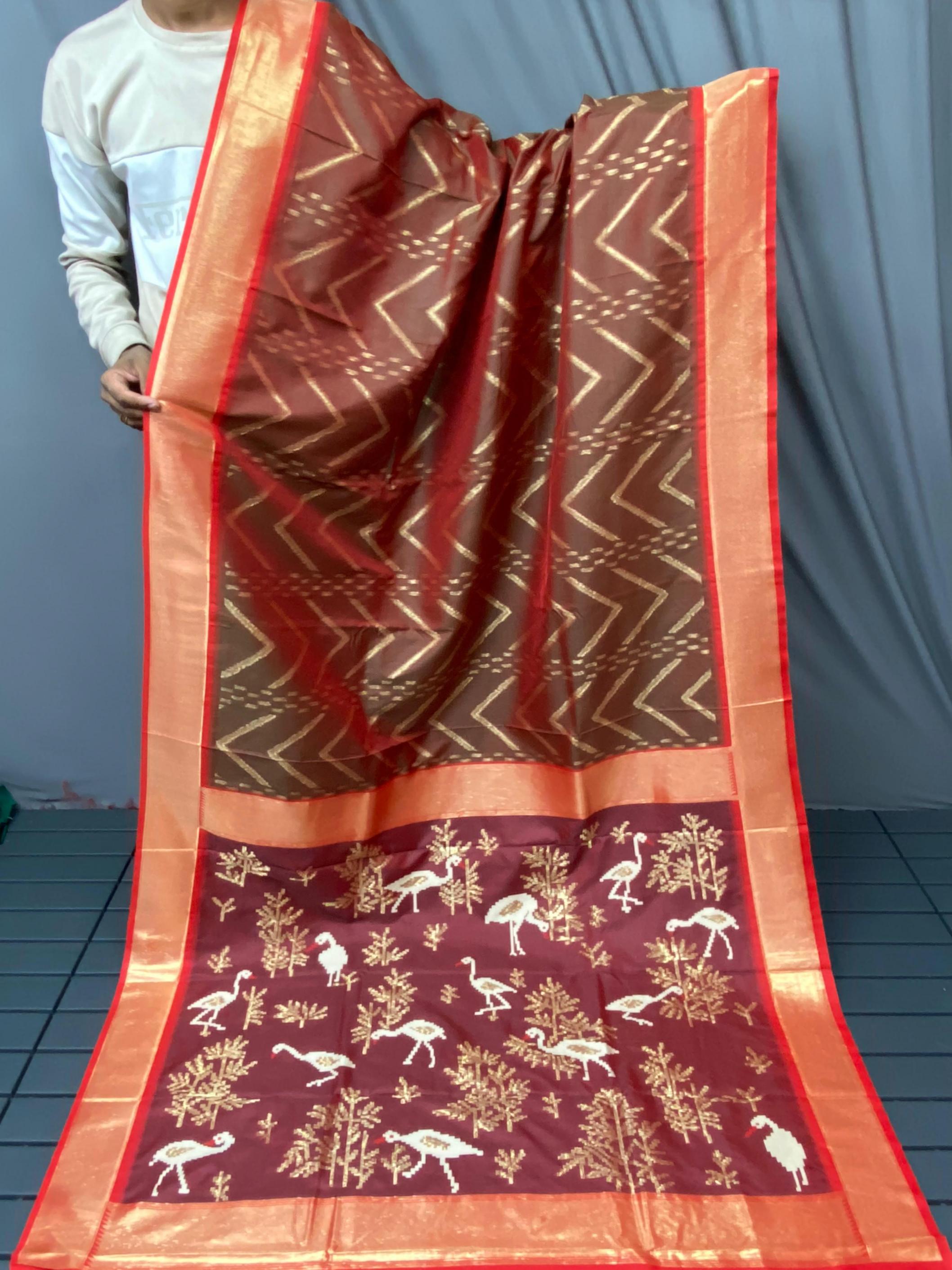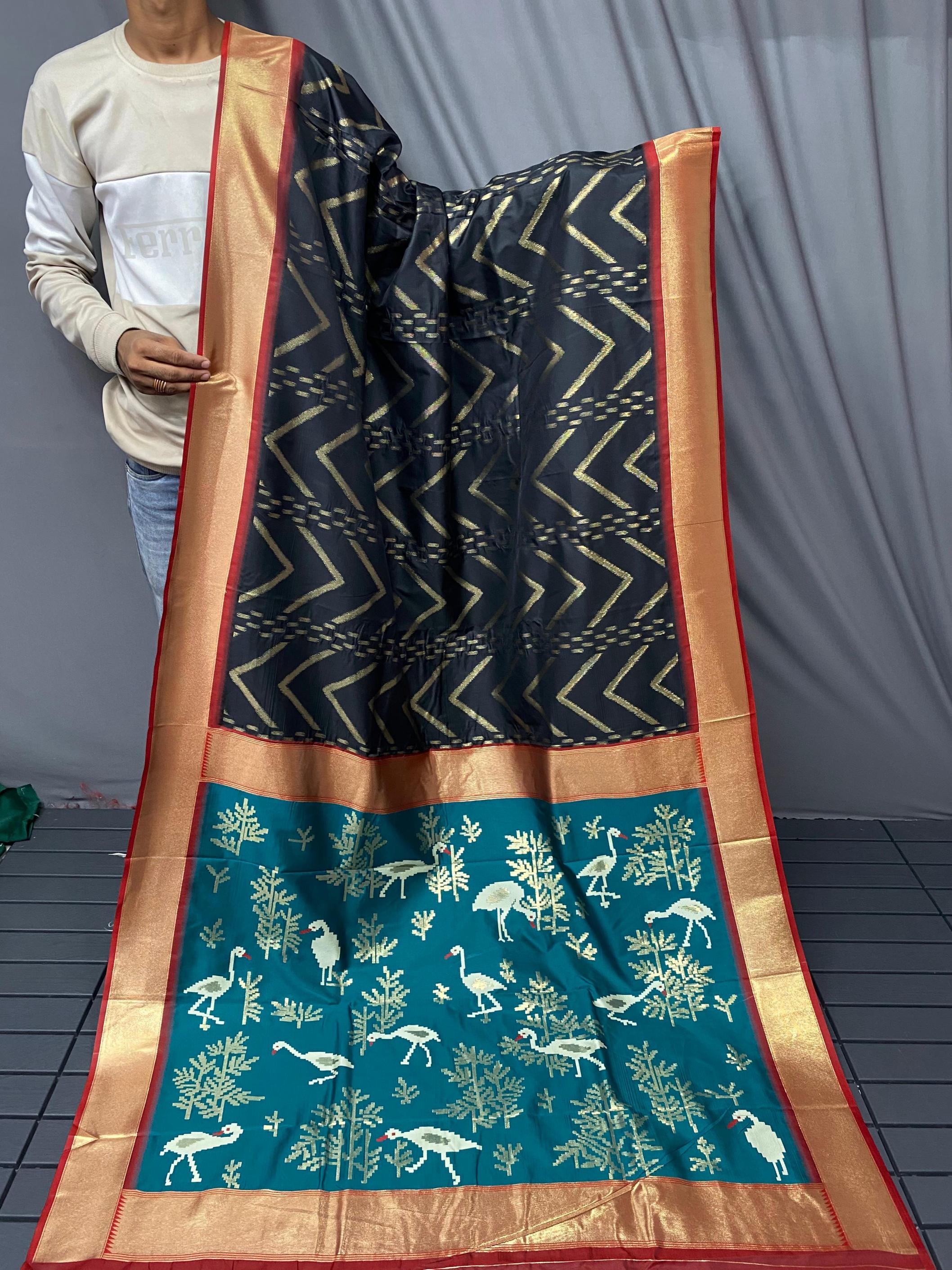 FRESH ARRIVAL❤️ Catalog : Bhanumati Pure soft silk saree with beautiful zig zag viscose zari design with zari patta and rich ikkat weaving pallu Price :- 1250/ - |