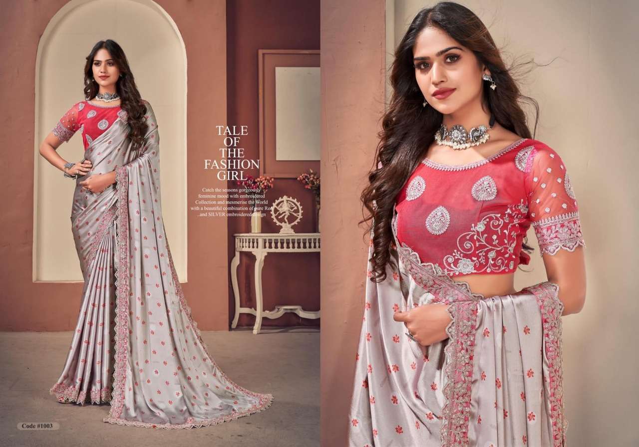 bhumi sanskrit satin embroidery fancy saree wholesale store