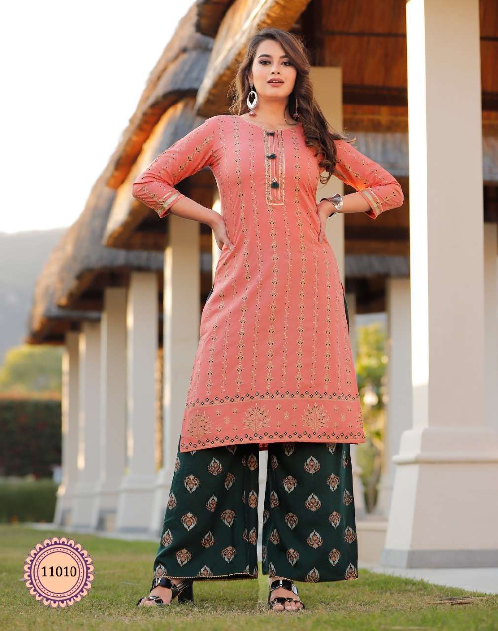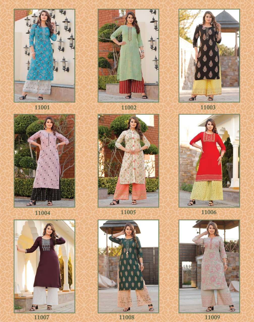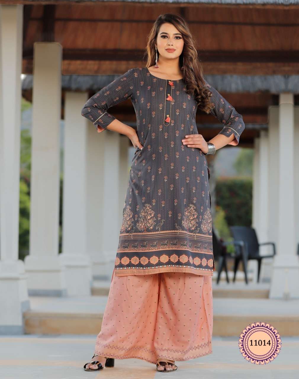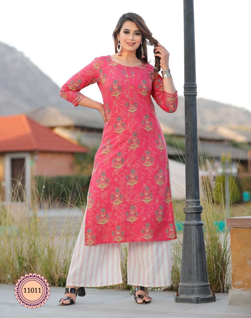 bibas vol 11 by diya trendz rayon kurti with plazzo pair