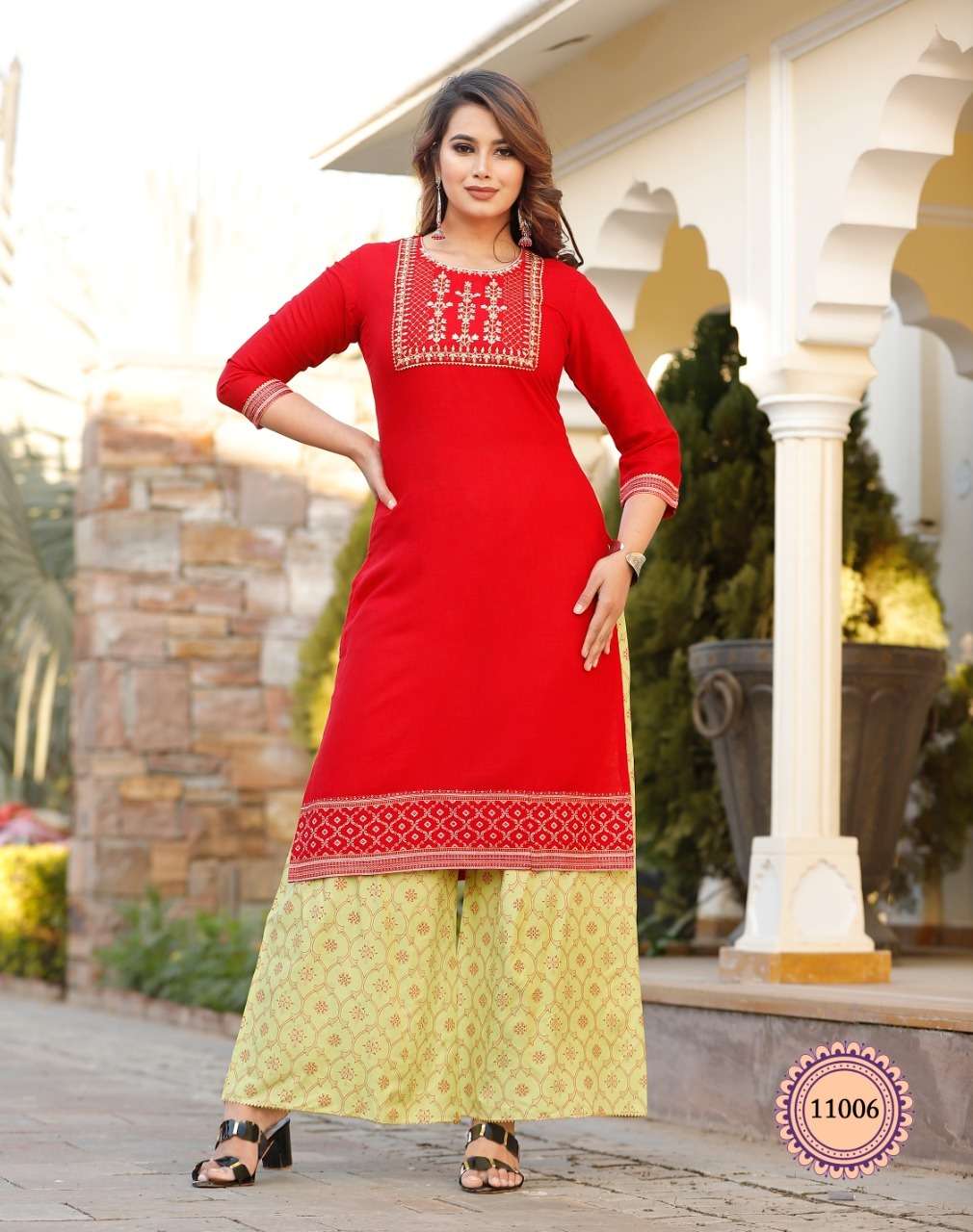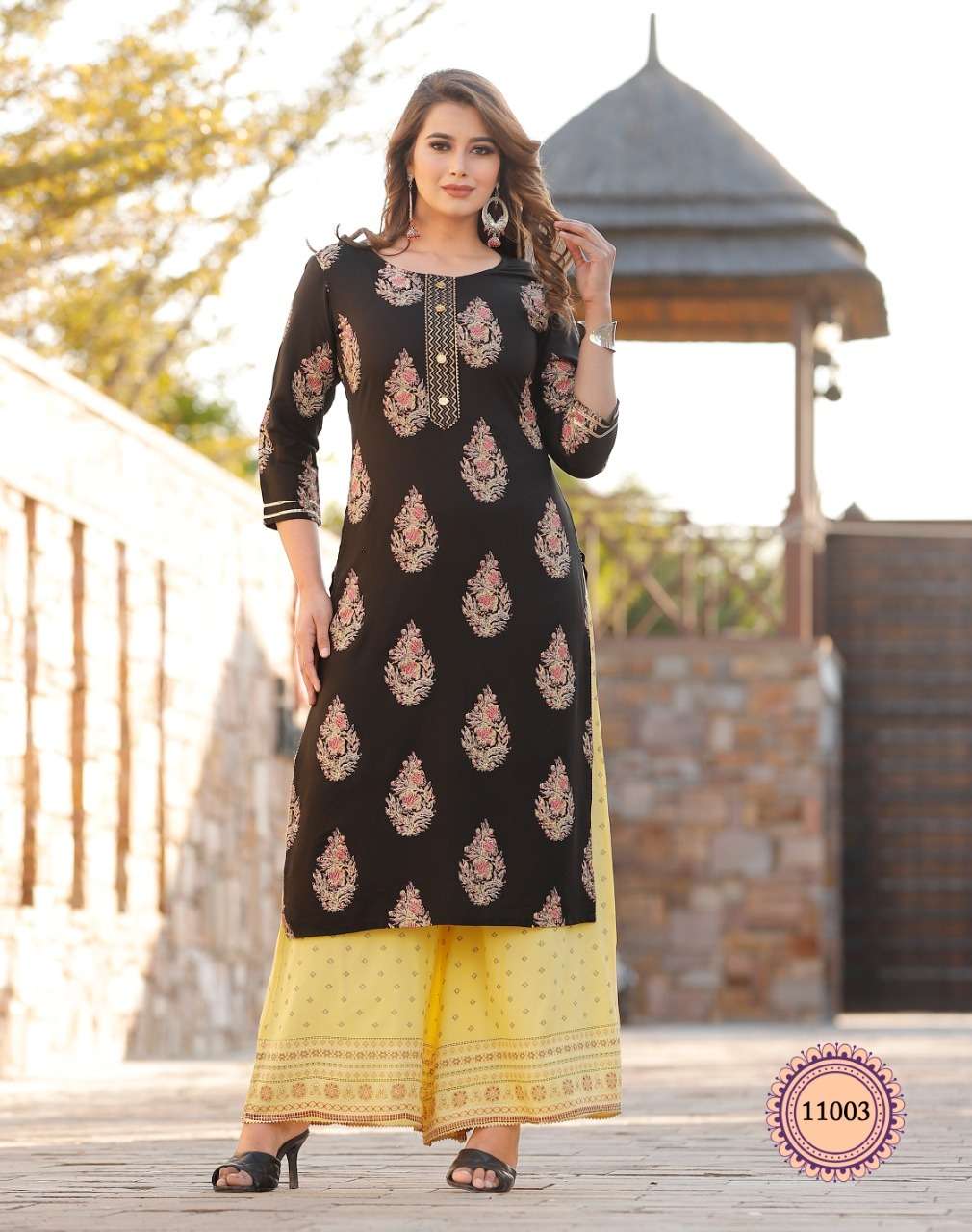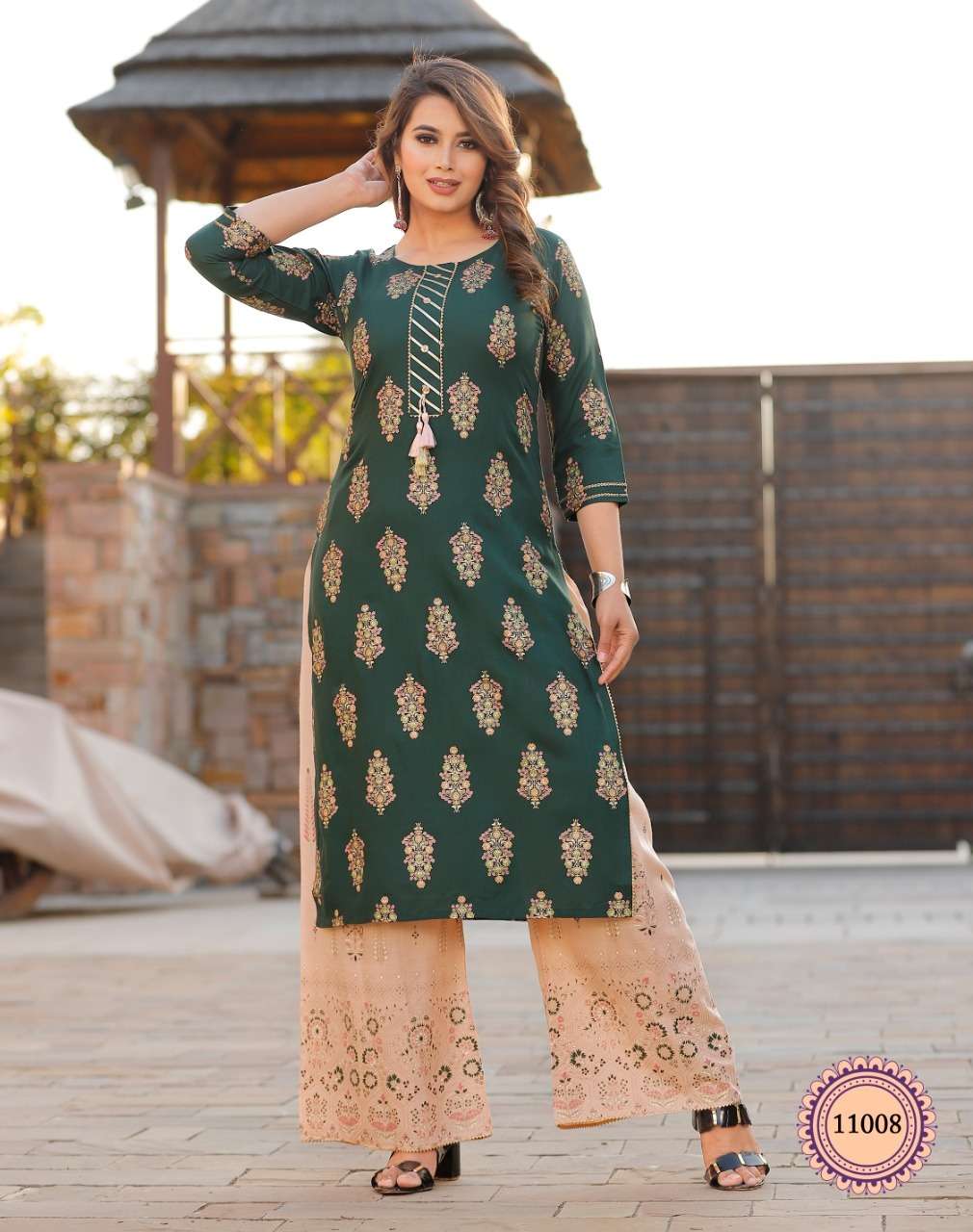 bibas vol 11 by diya trendz rayon kurti with plazzo pair