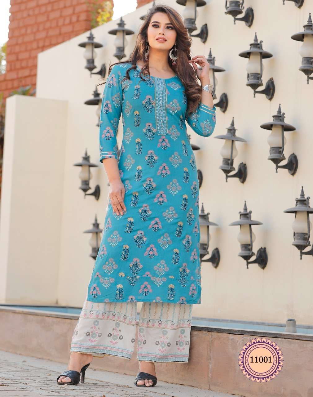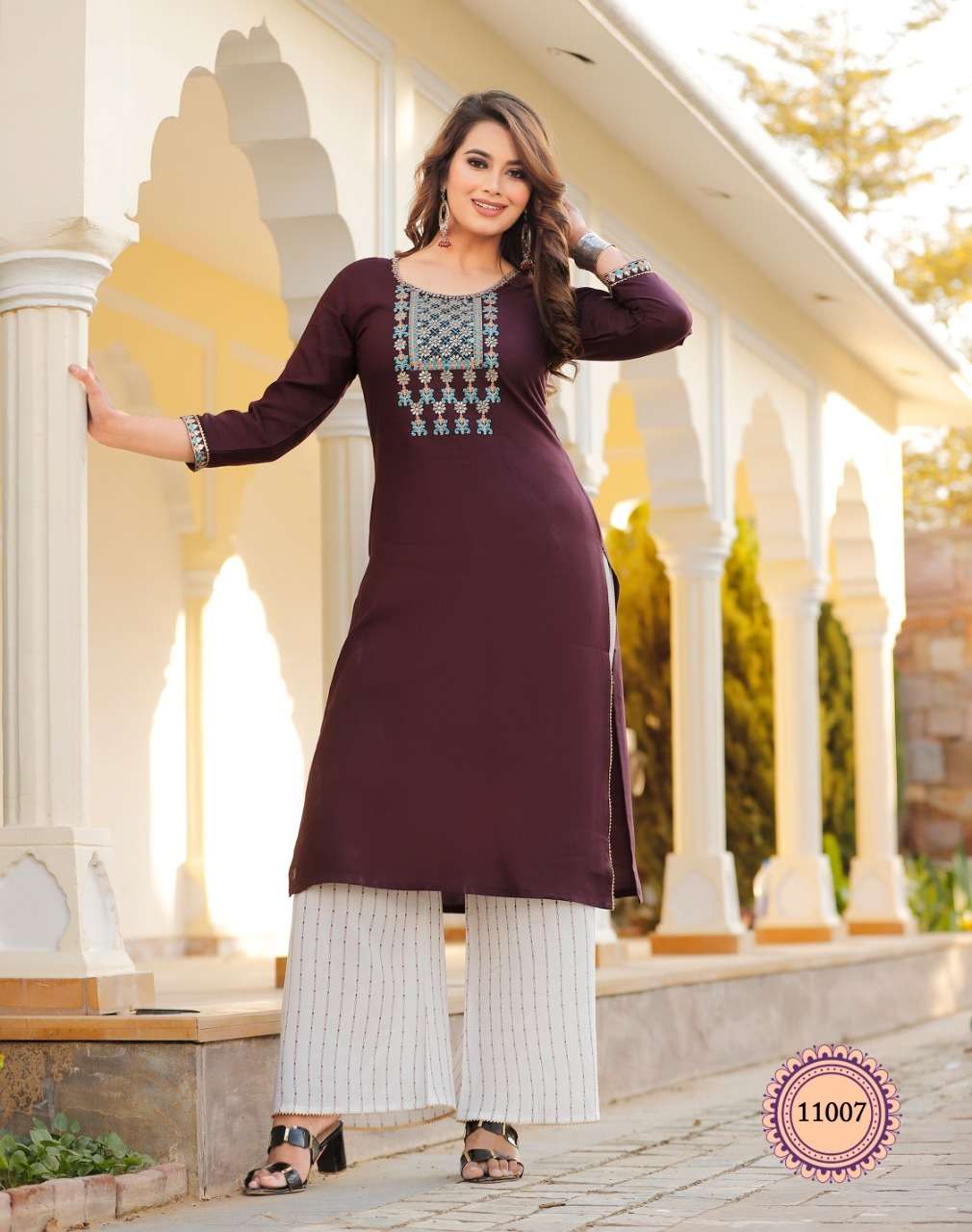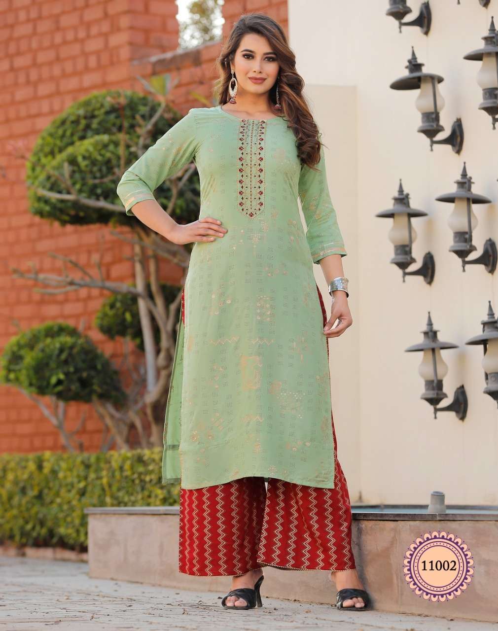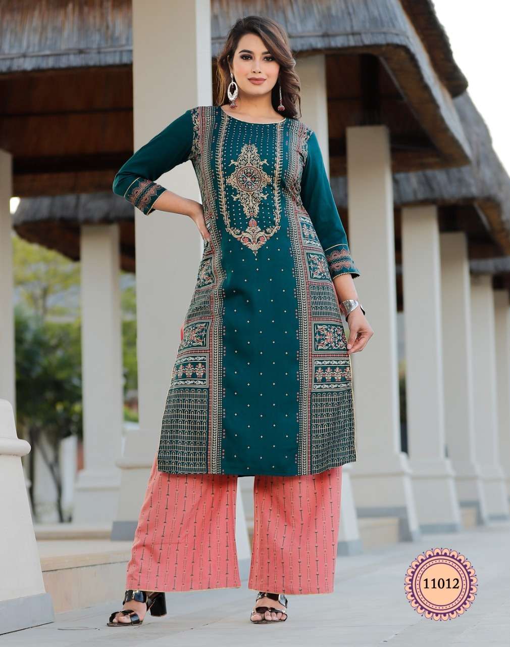 bibas vol 11 by diya trendz rayon kurti with plazzo pair
