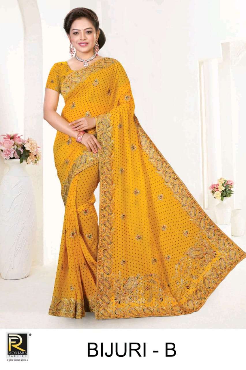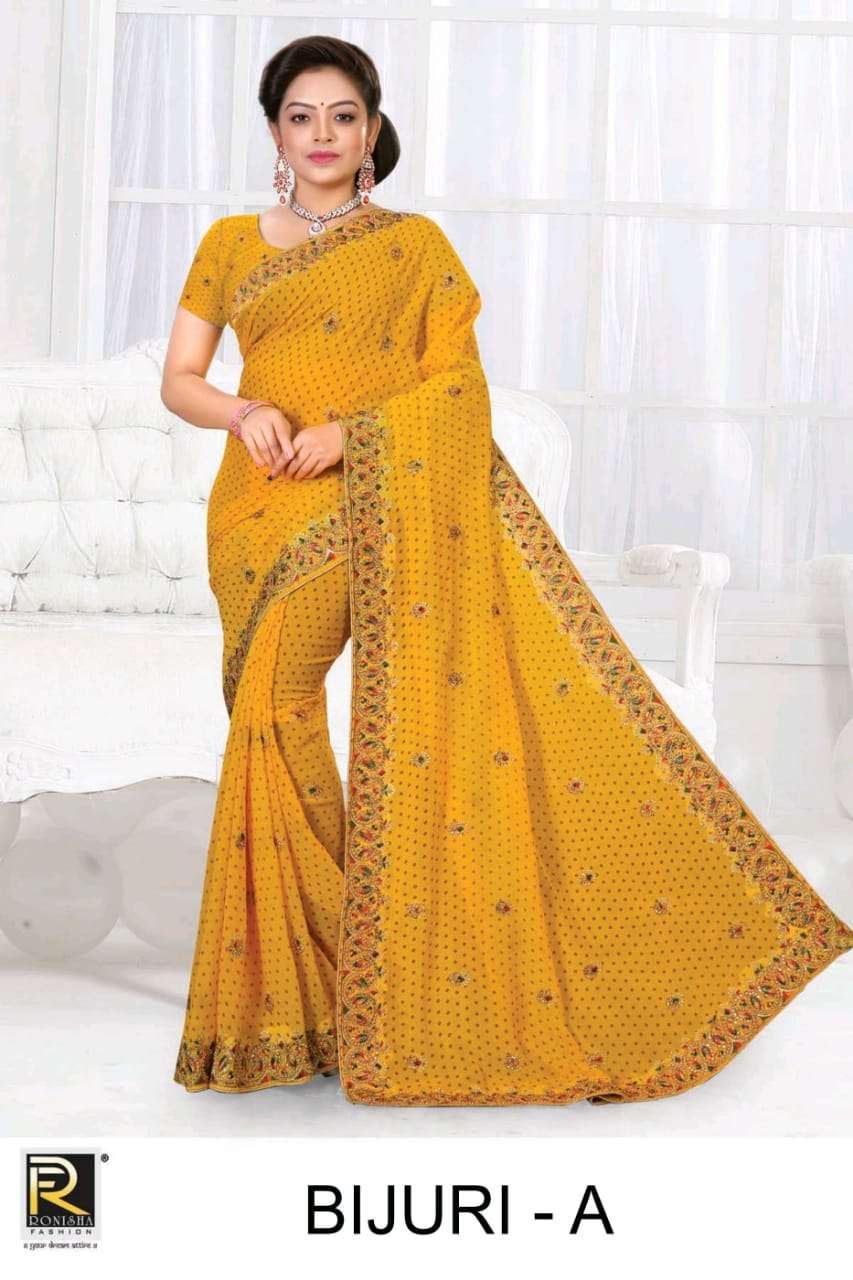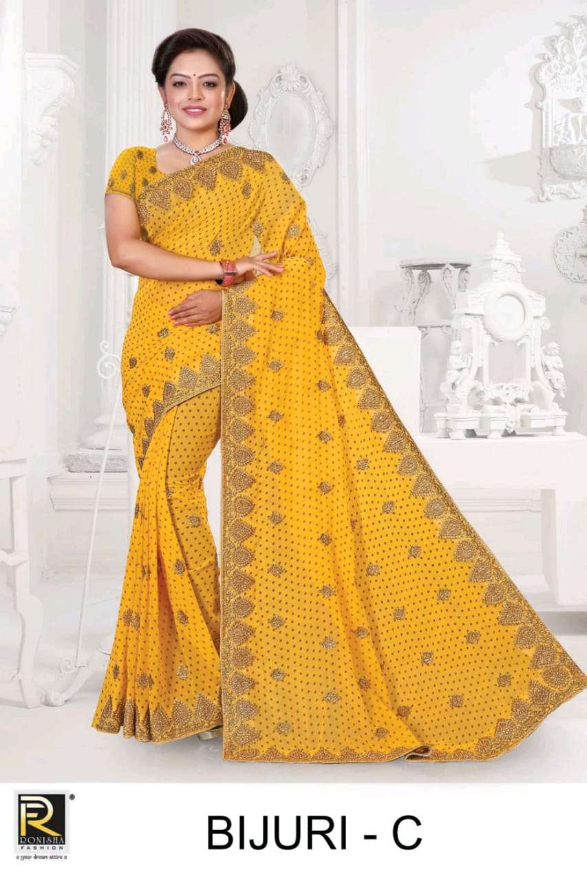 Bijuri by Ranjna sarees Georgette bandhani embroidery worked heavy Diamond wedding saree collecton