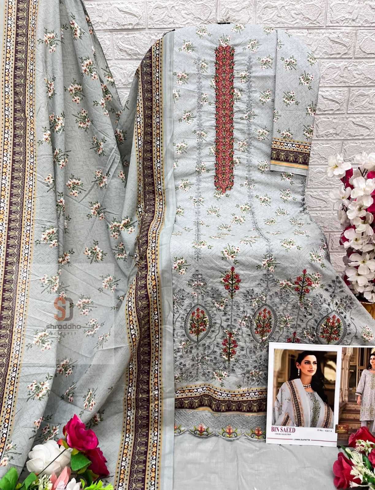 SHARADDHA DESIGNER is happy to announce the launch of NEW LAWN COLLECTION BIN SAEED COLOUR COLLECTION SHARDDHA DESIGNER_ 🔹Top: Pure Cotton with boring SELF EMBROIDERY with petch work 🔹Bottom- Cotton Solid PRICE Set to set Pcs-4 Please note _ Dupatta wise rate Regarding |