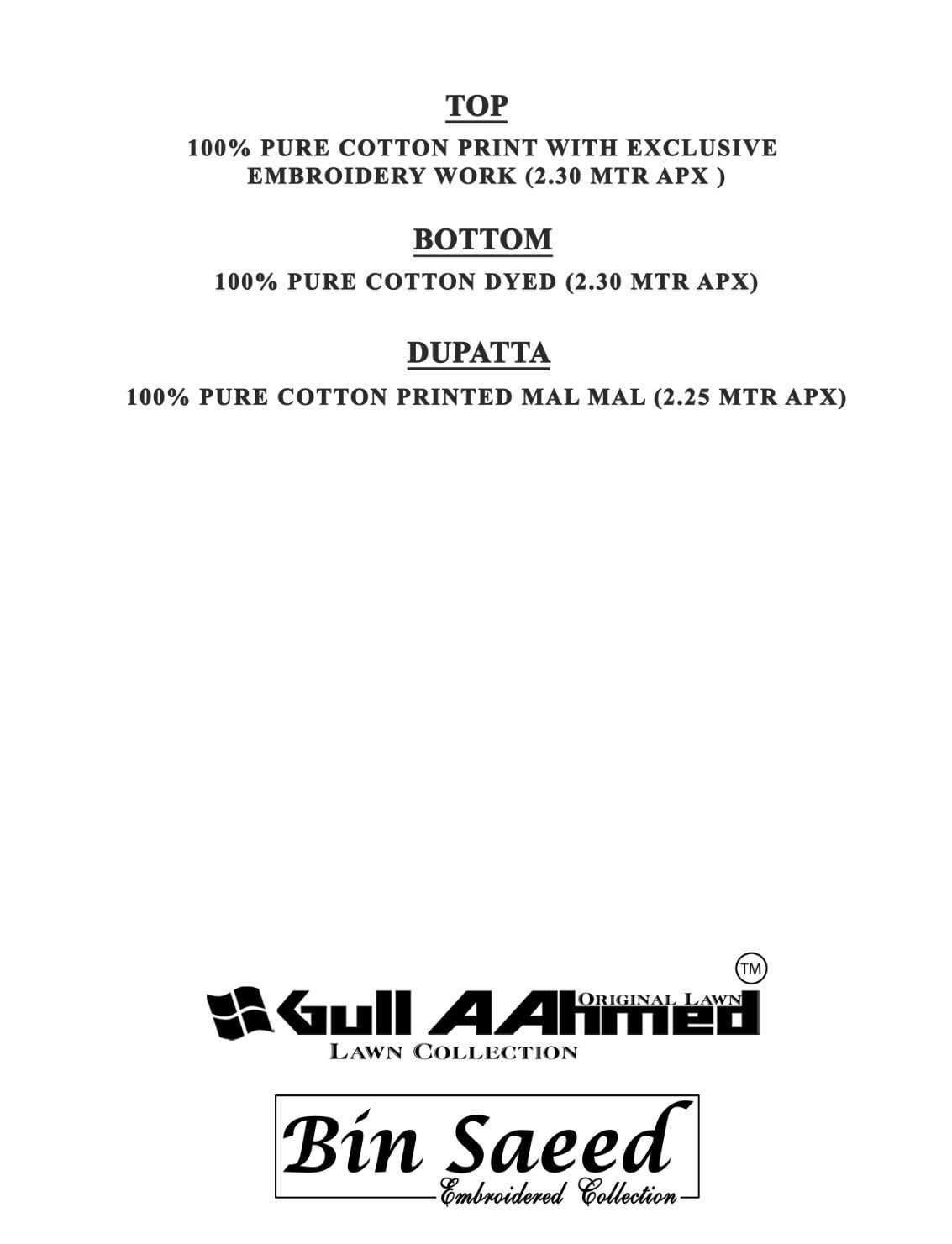 💐💐HERE IT COMES💐💐 ♥️YOUR FAVOURITE BRAND♥️ 🌹GULLAAHMED LAWN COLLECTION🌹 BIN SAEED EMBRODARY COLLECTION VOL 02 👗Top : Pure LAWN (cut:2.40mtr) WITH Full TOP SELF EMBROIDERY WORK🧵 👖Bottom : COTTON (cut:2 .25 mtr ) 🧣Dupatta: Pure Cotton Mal Mal (cut 2.25 mtr) Designs :10 RATE 565 With attractive pouch and bag 💼 packing